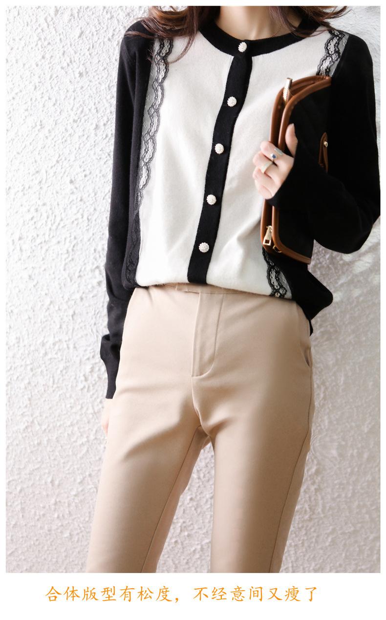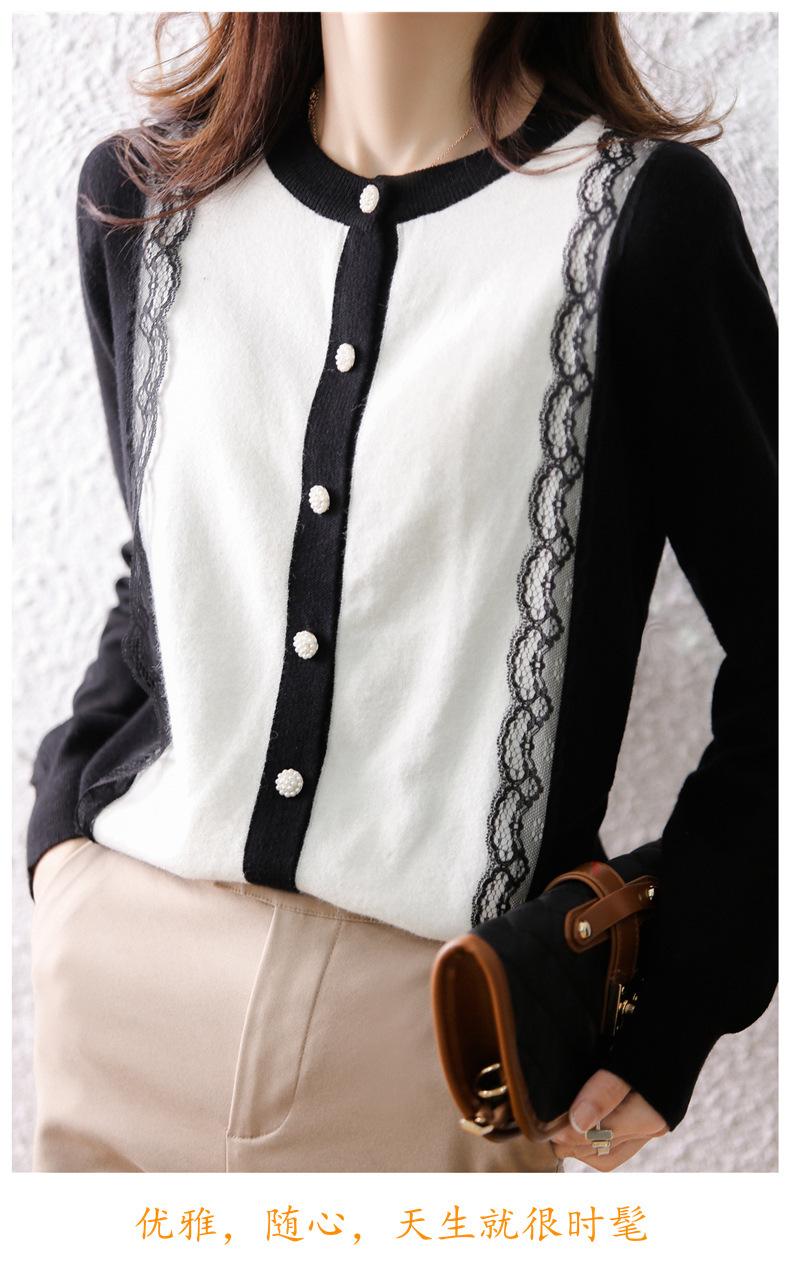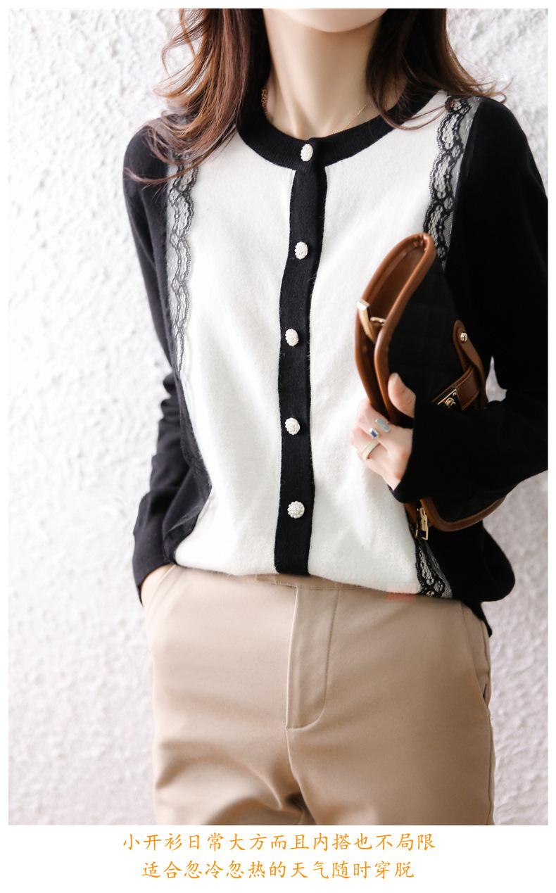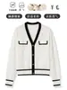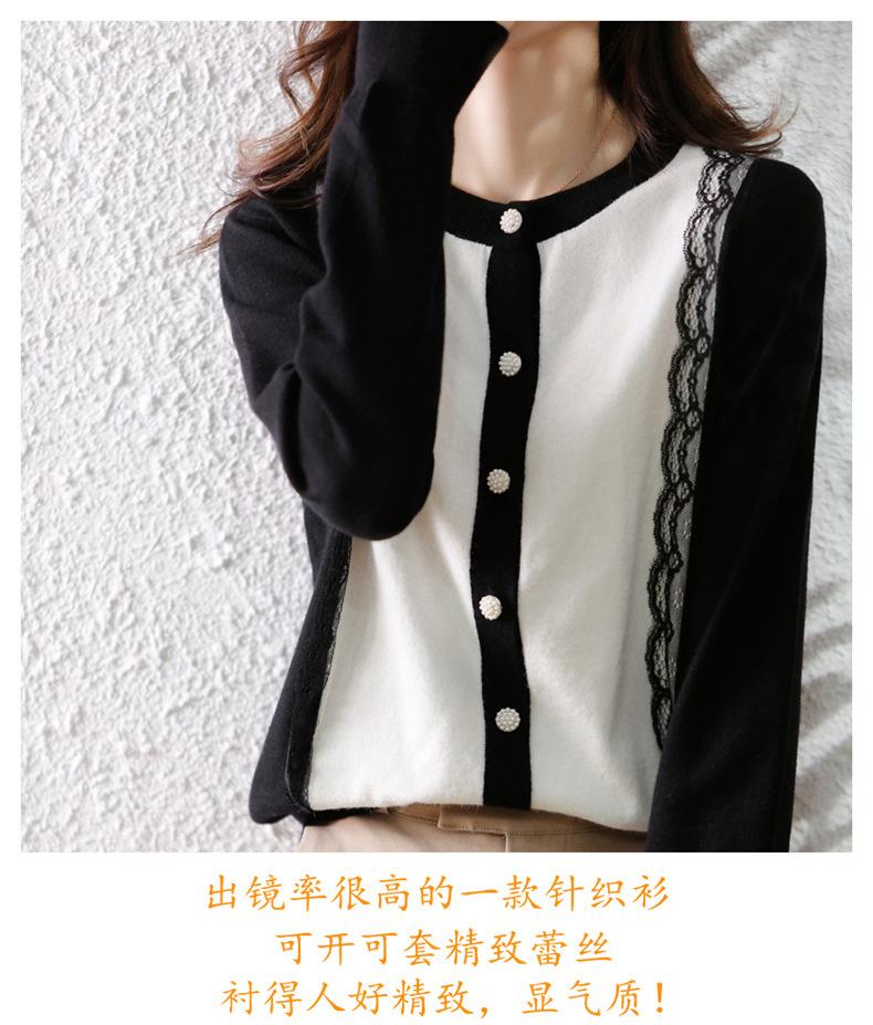 Blusa Chic Francesa para Mujer Primavera 2025 Cárdigan de Punto de Encaje a Color Contrastante Elegante Top de Manga Larga Chaqueta Estilo Pequeño Fragante