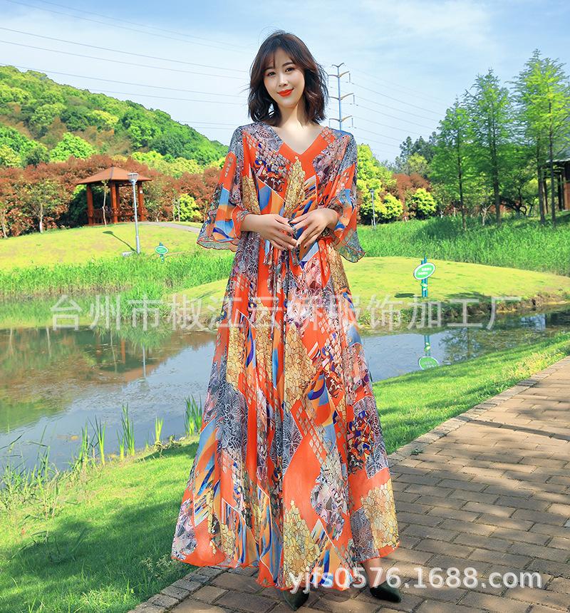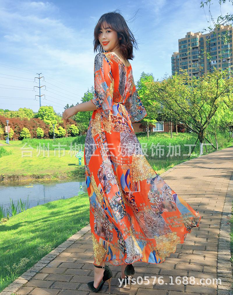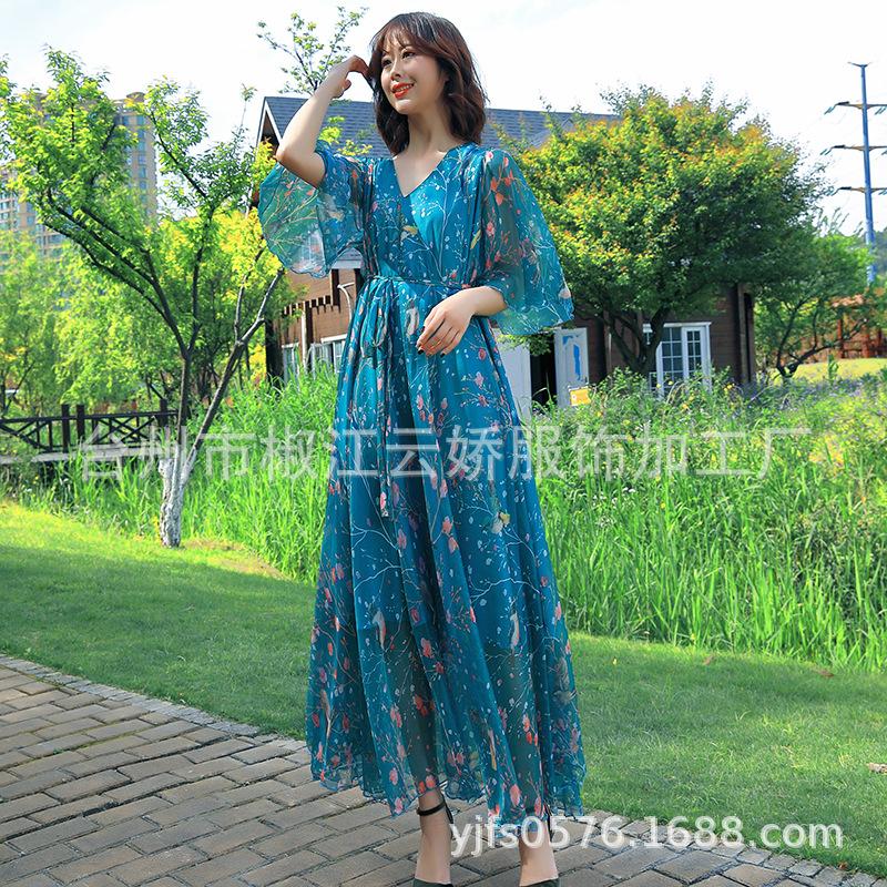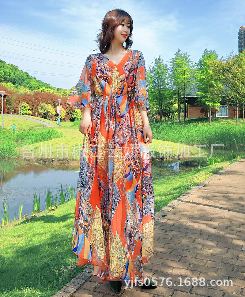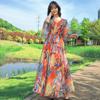 Vestido largo de gasa con cuello en V para mujer, falda de playa estampada, estilo bohemio, para vacaciones, primavera y verano, 2023