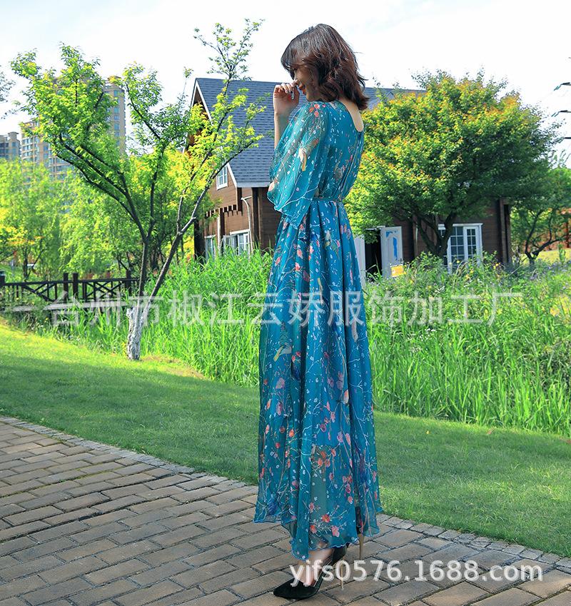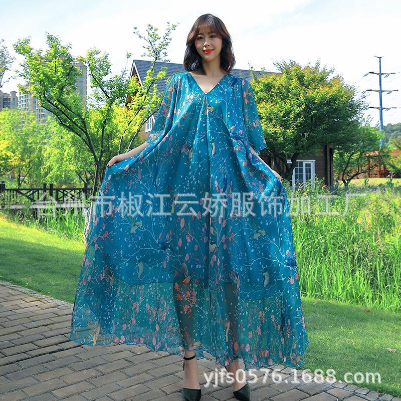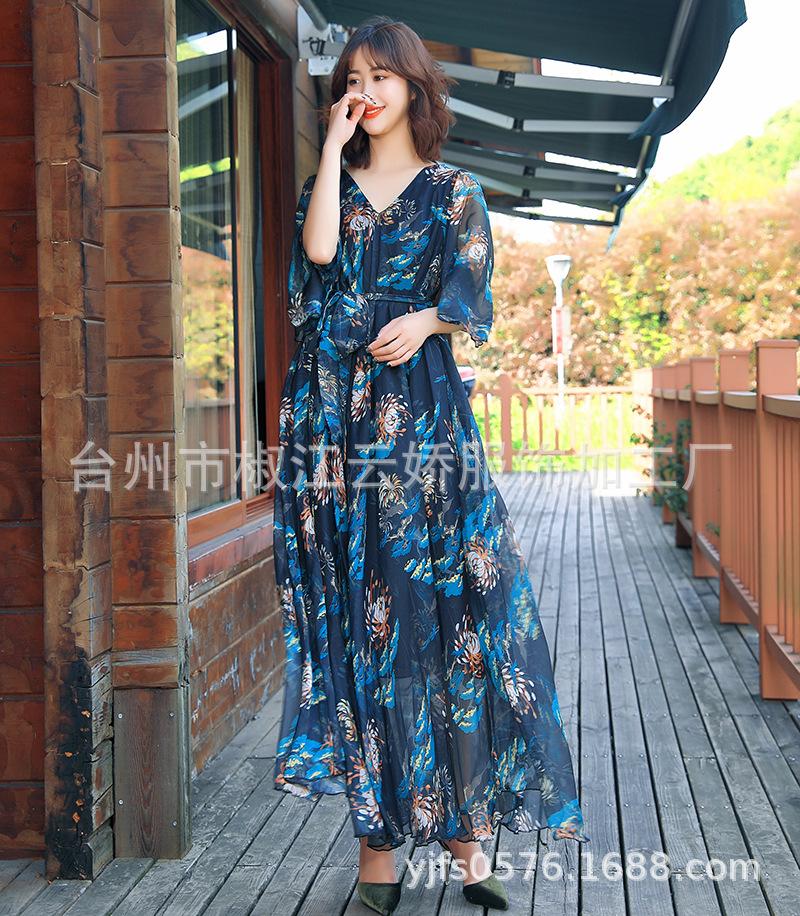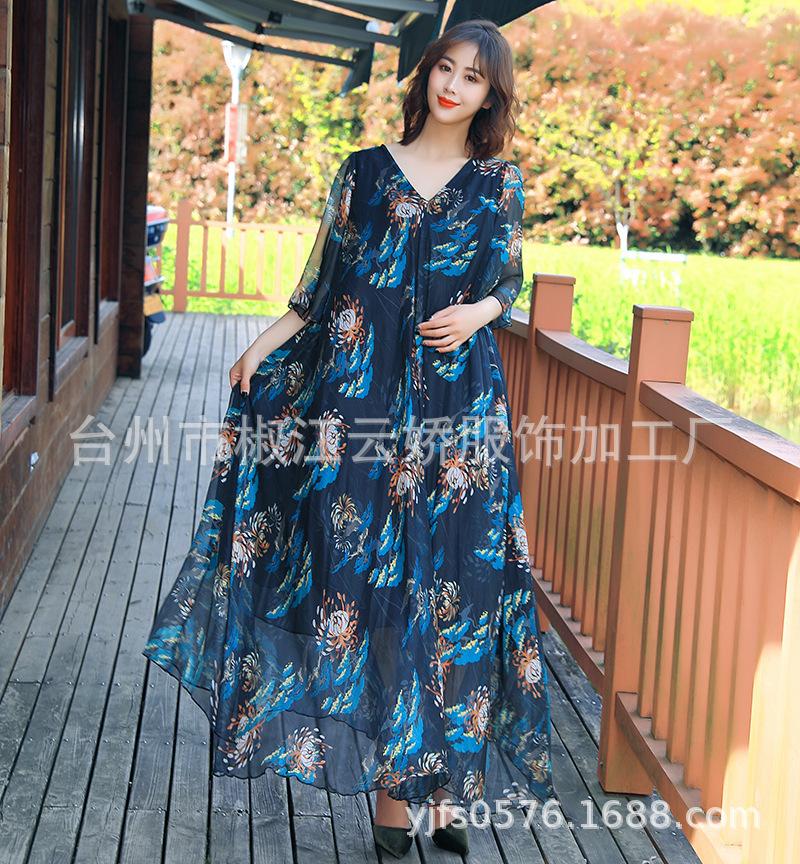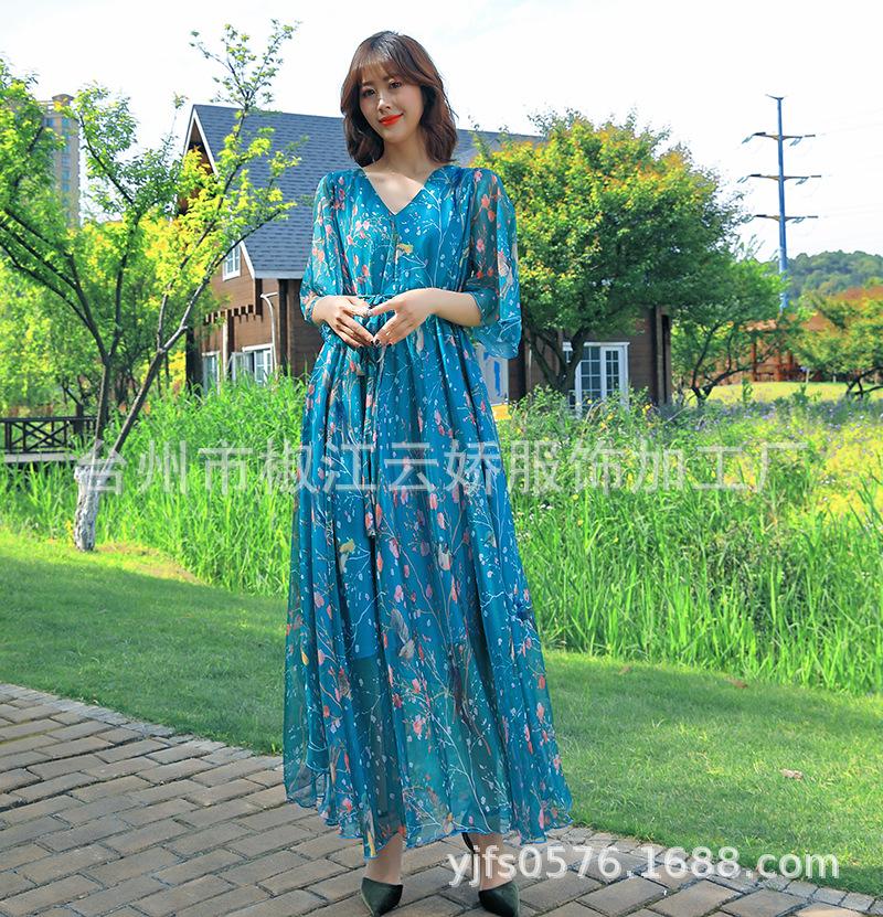 Vestido largo de gasa con cuello en V para mujer, falda de playa estampada, estilo bohemio, para vacaciones, primavera y verano, 2023