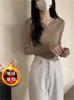 Suéter de Punto de Otoño e Invierno Cuello en V Color Puro Fondo Manga Larga con Mangas Largas y Cuello Corazón Estilo Coreano Holgado Interior Tejido de Punto