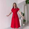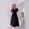 Vestido multibotonadura con cintura con cordones, color sólido, lanzamiento transfronterizo de Amazon, nuevo otoño 2024, Europa y América