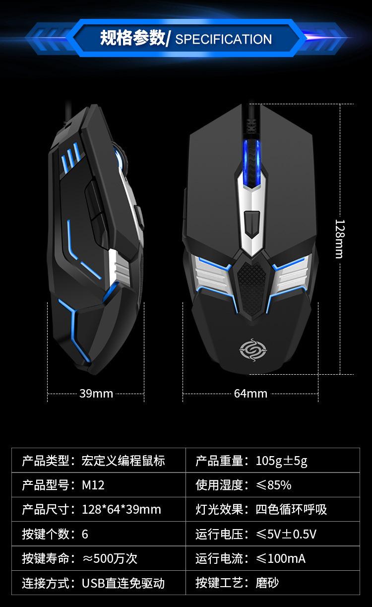 Ratón mecánico luminoso para juegos Viper M12, para ordenador portátil, oficina, deportes electrónicos, con cable USB, venta al por mayor transfronteriza