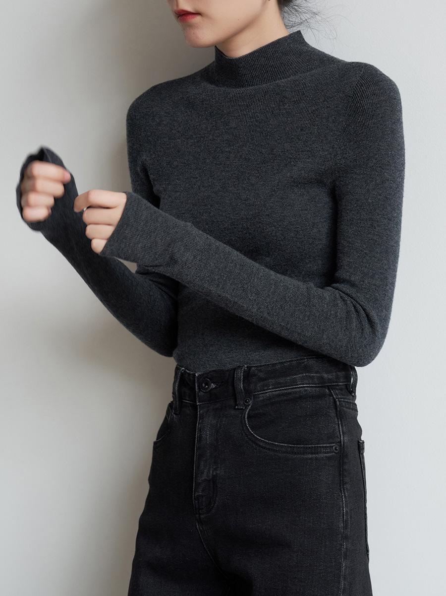 Suéter de Lana de Manga Larga con Cuello Medio Alto para Mujer para Otoño e Invierno Look Adelgazante Básico Color Puro Suéter Camiseta Base