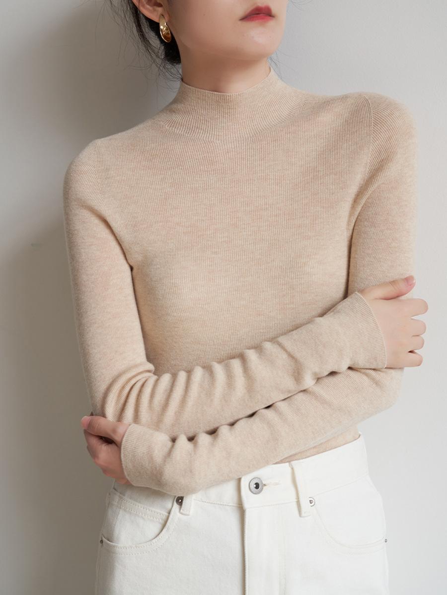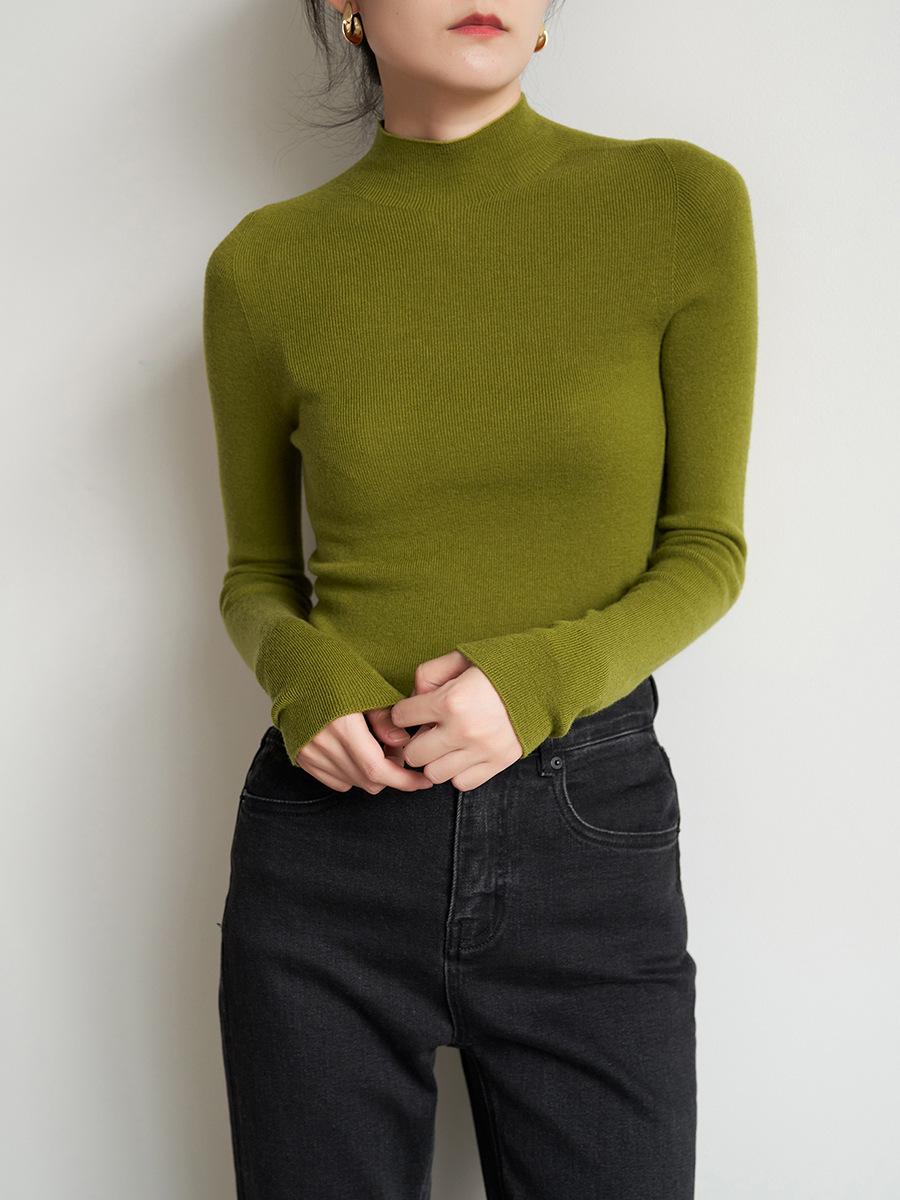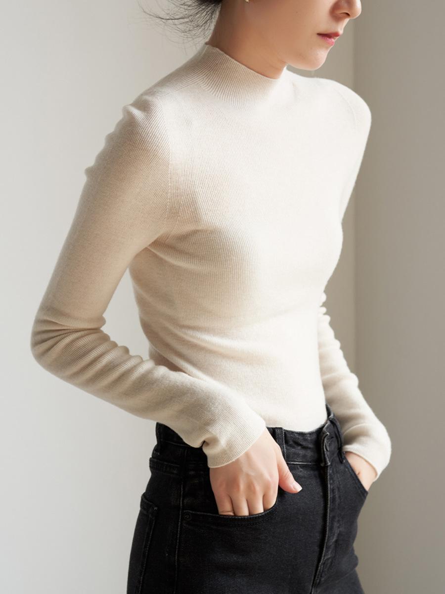 Suéter de lana de una pieza sin costuras con temperamento para ir al trabajo, cuello medio alto, para mujer, otoño, top básico