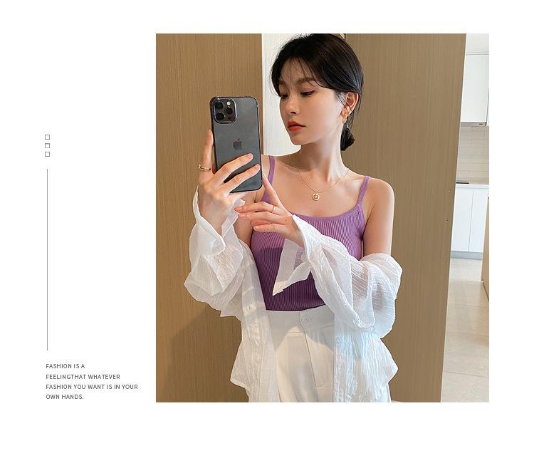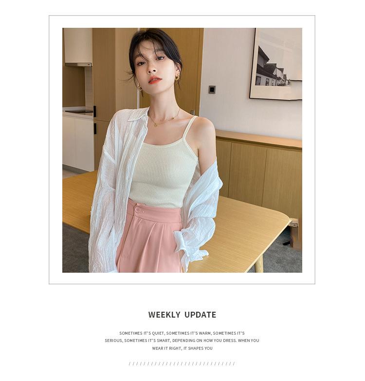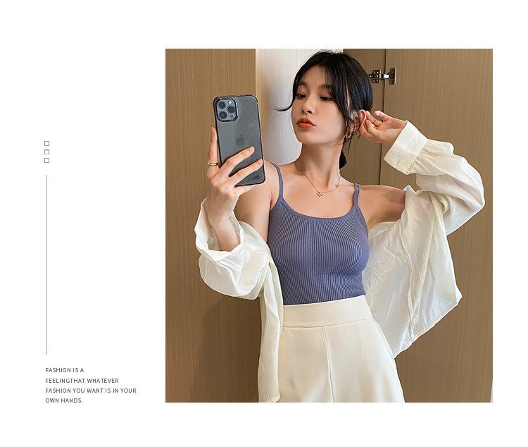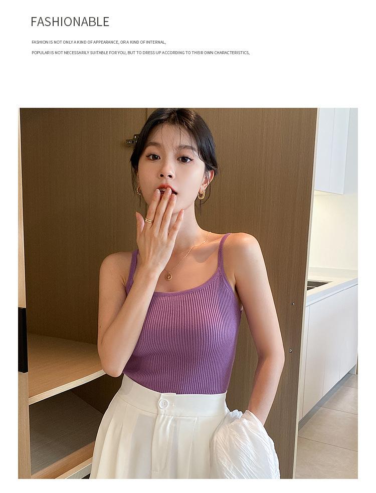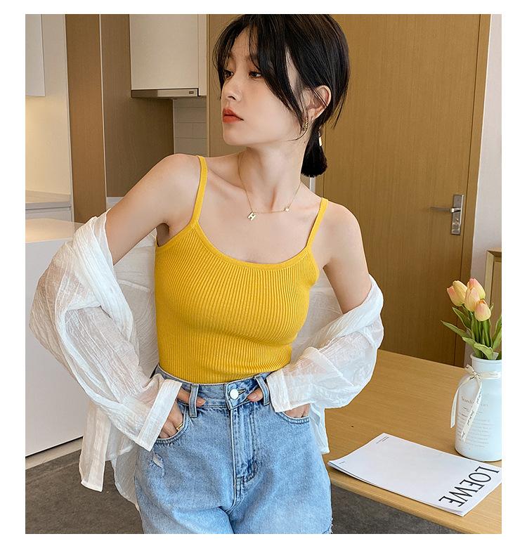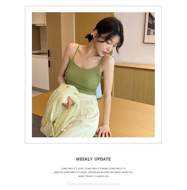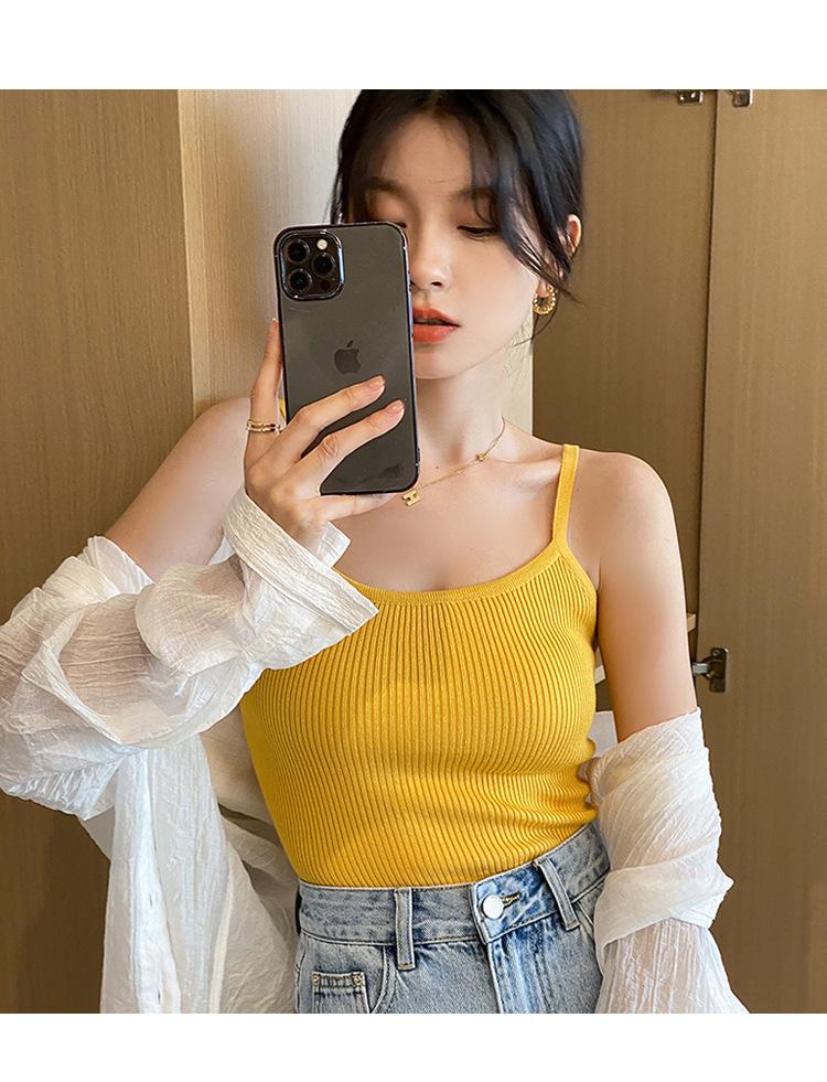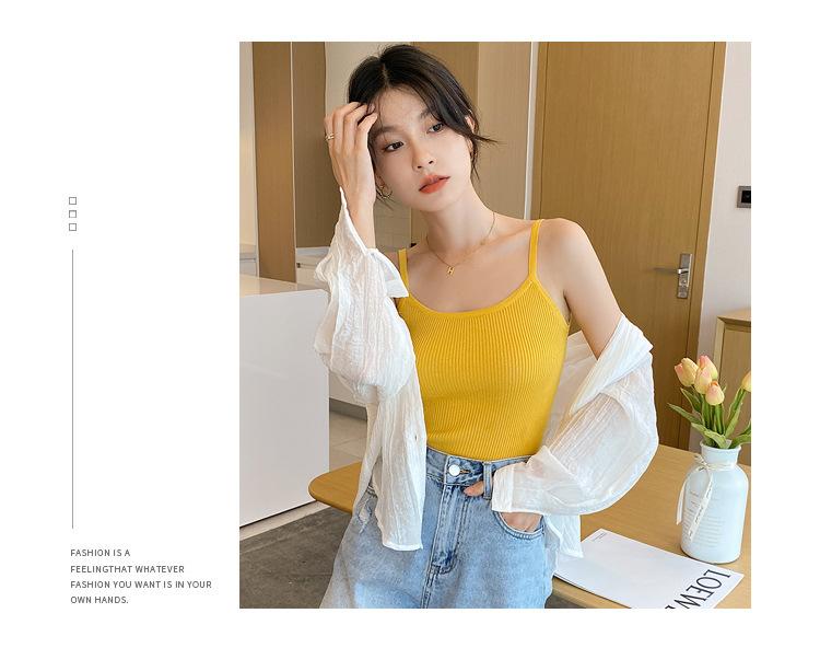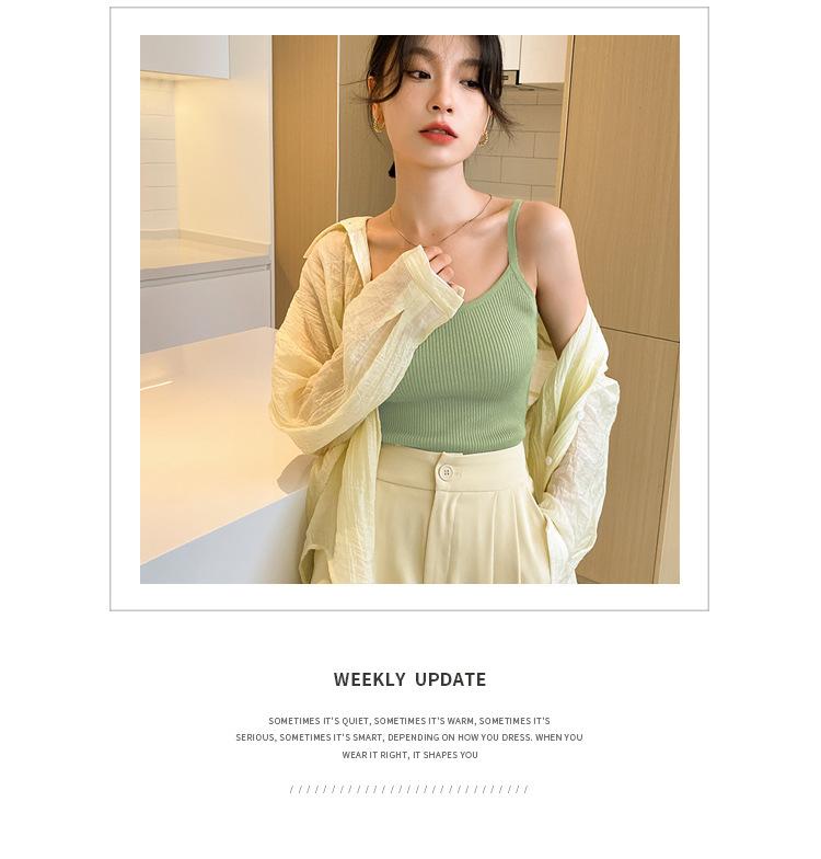 Camisola de verano para mujer, nueva llegada, para uso interior y exterior, estilo coreano, base ajustada, adelgazante, color sólido, suéter sin mangas.