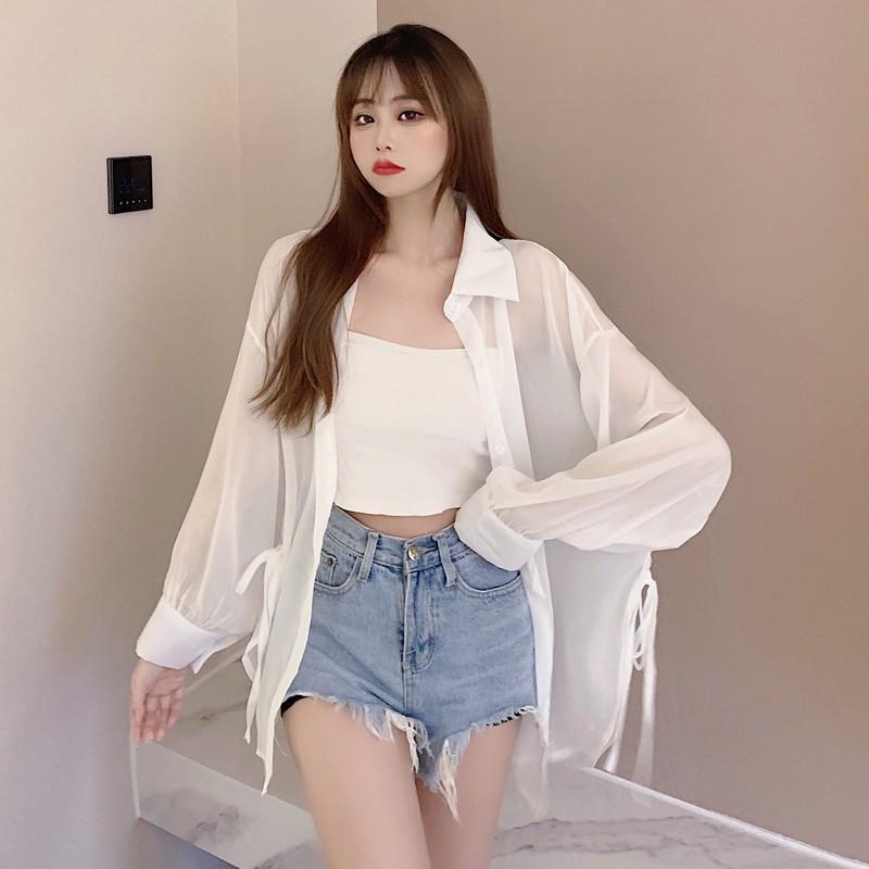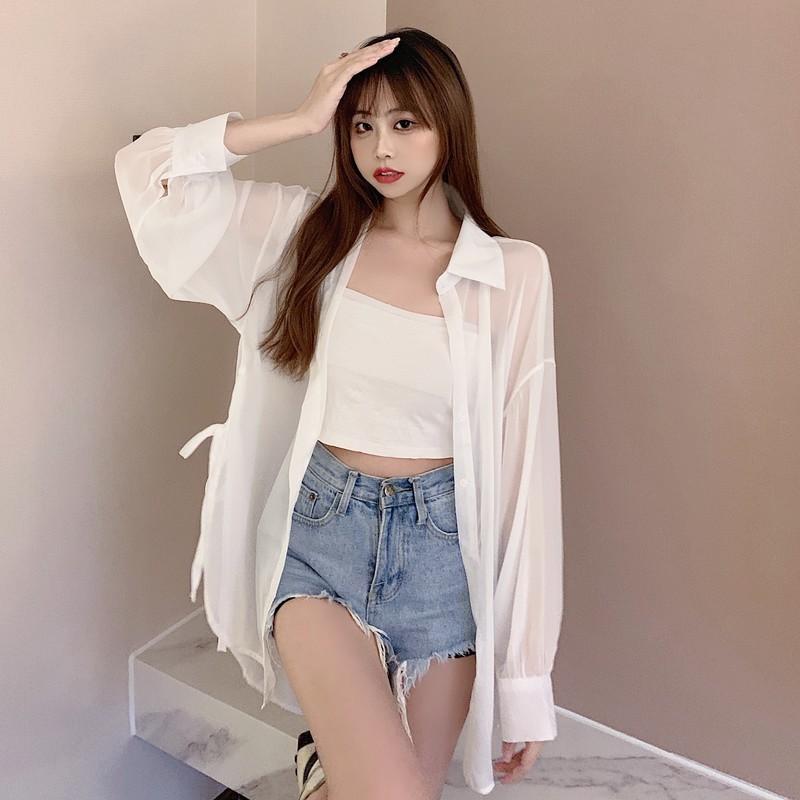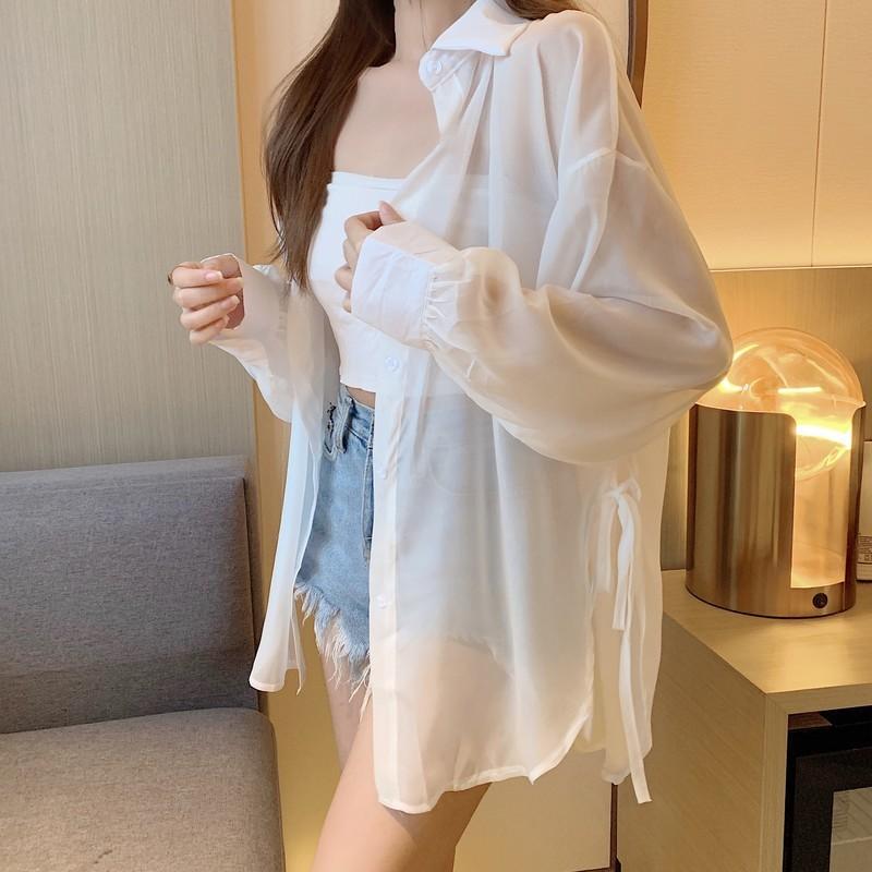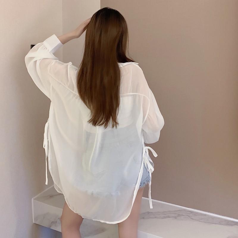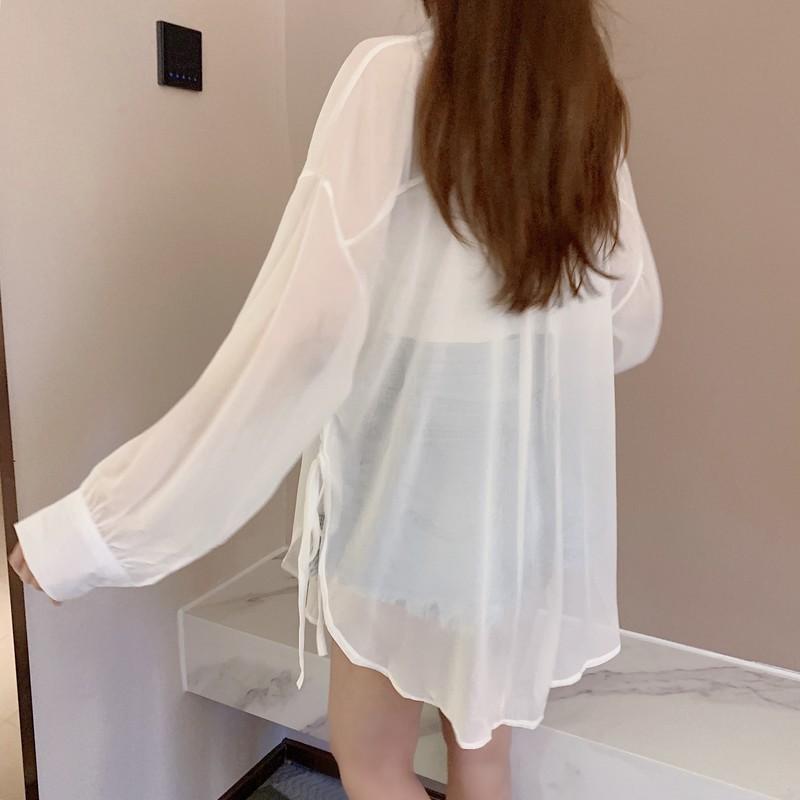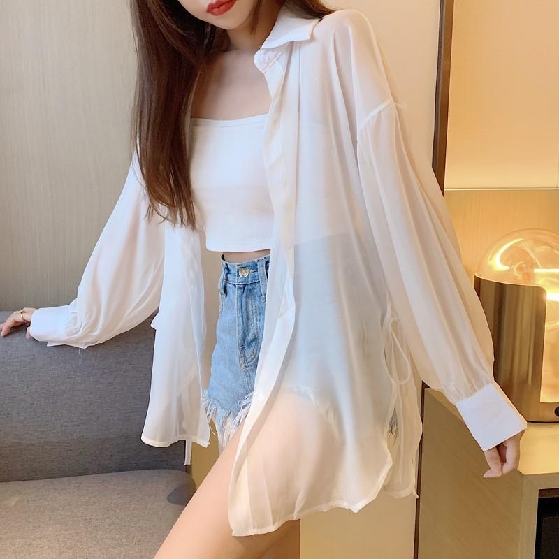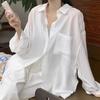 Camisa blanca de gasa con protector solar, prenda exterior de verano de manga larga, chaqueta ultrafina, ropa con protector solar, cárdigan de moda para mujer, ropa con protector solar estilo occidental.