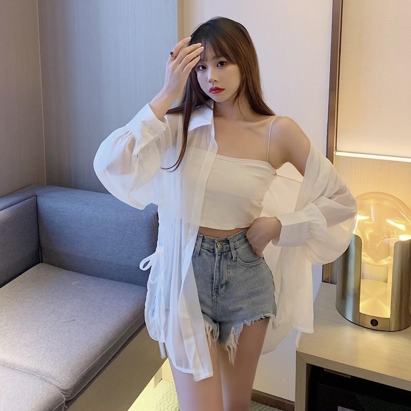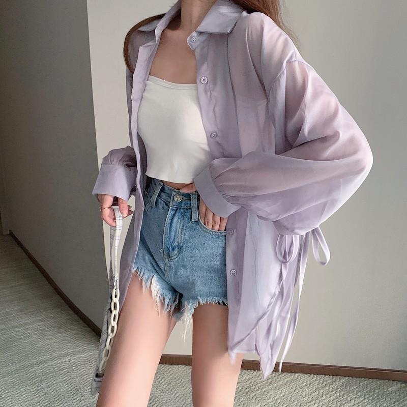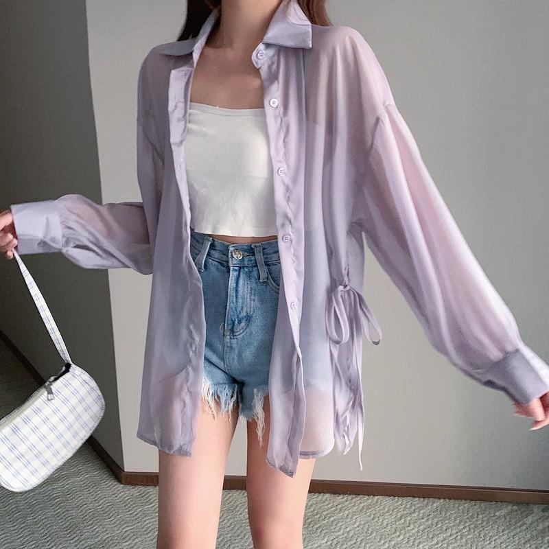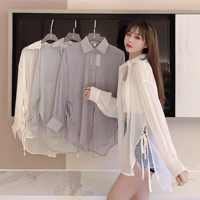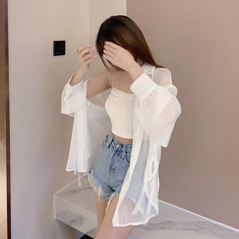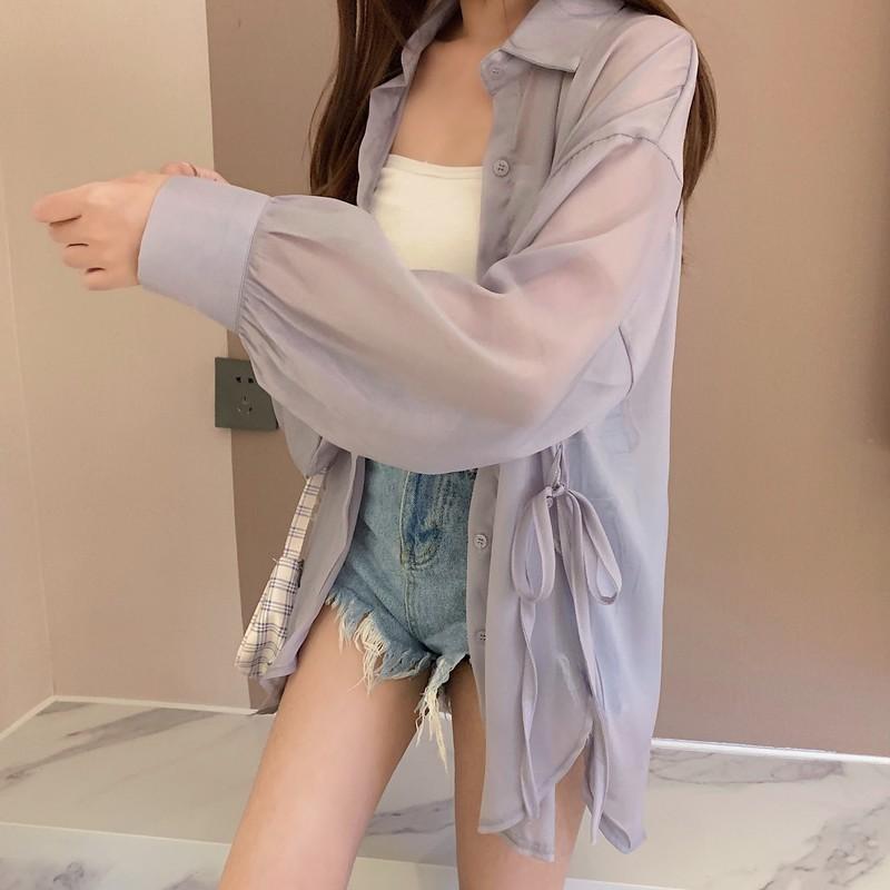 Camisa blanca de gasa con protector solar, prenda exterior de verano de manga larga, chaqueta ultrafina, ropa con protector solar, cárdigan de moda para mujer, ropa con protector solar estilo occidental.