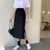 Falda BM negra con cintura elástica para mujer, novedad de verano 2024, estilo americano, cintura alta, abertura en la cadera, falda ajustada de longitud media