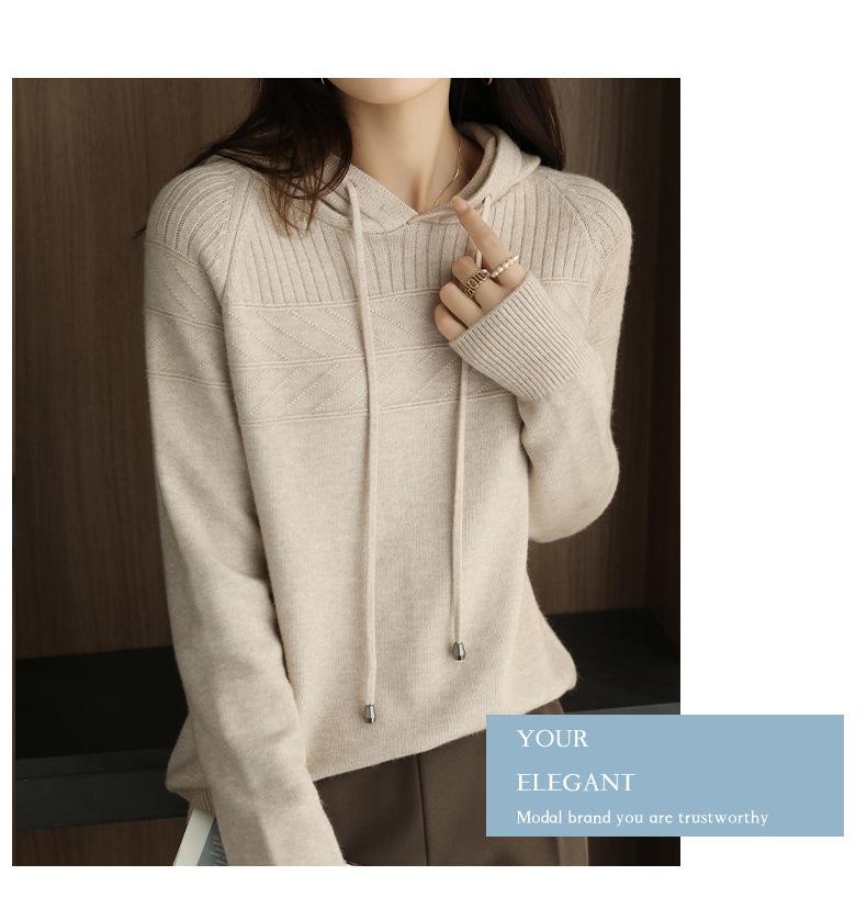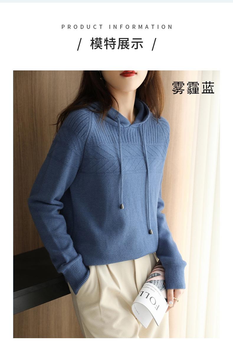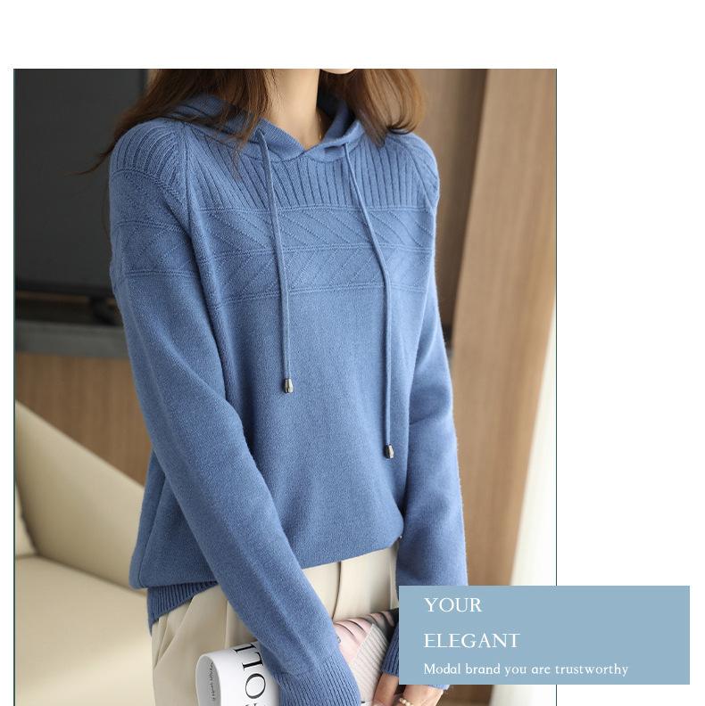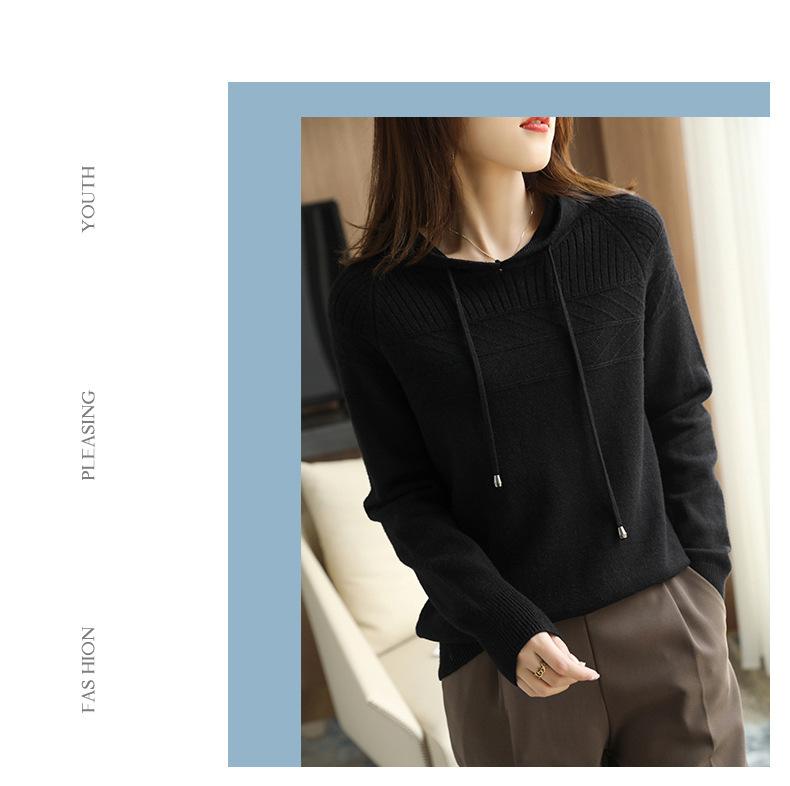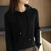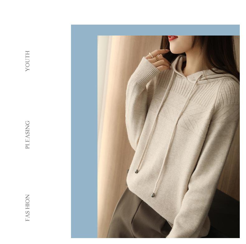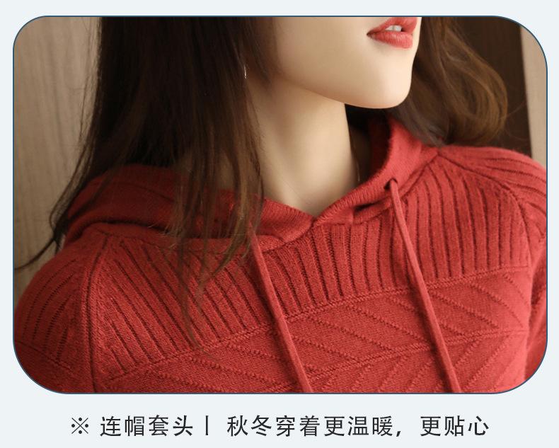 Otoño e invierno Nuevo suéter de punto con capucha para mujer, top holgado de manga larga, suéter con capucha versátil, camisa de fondo corta