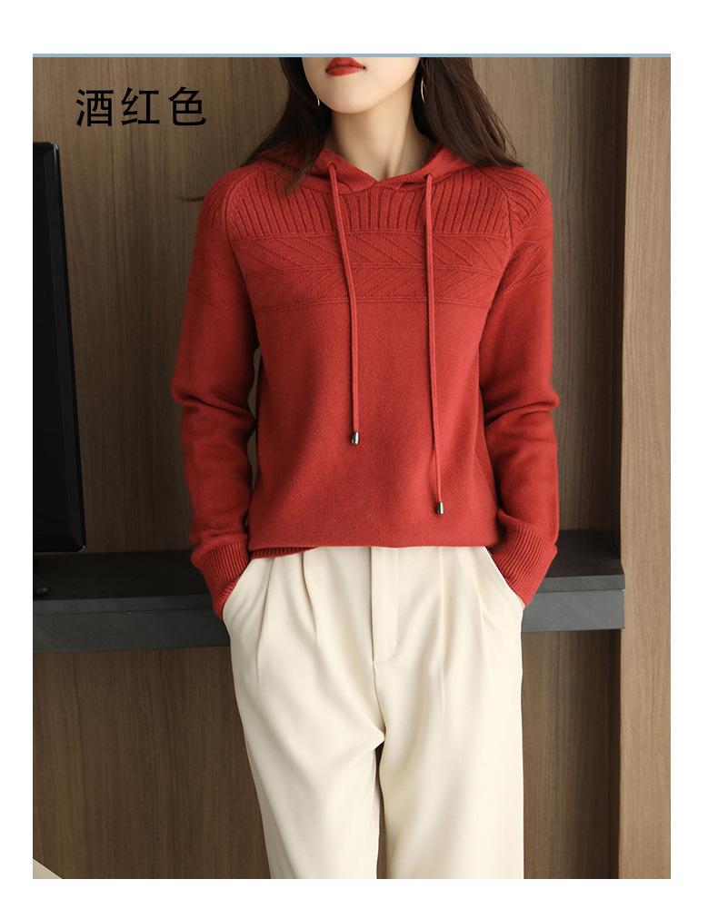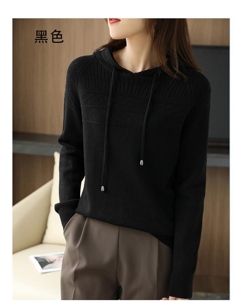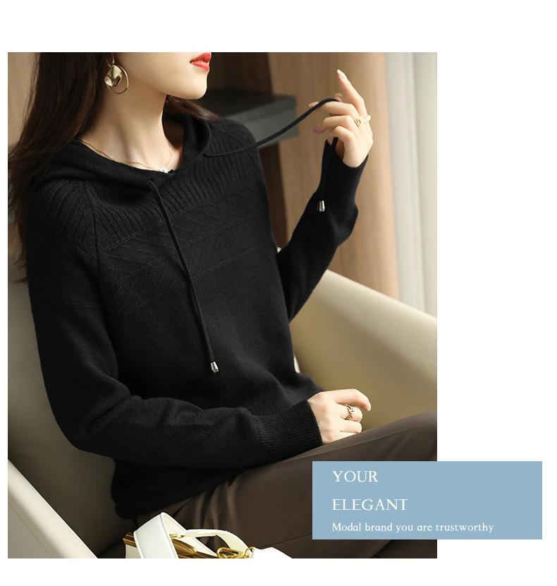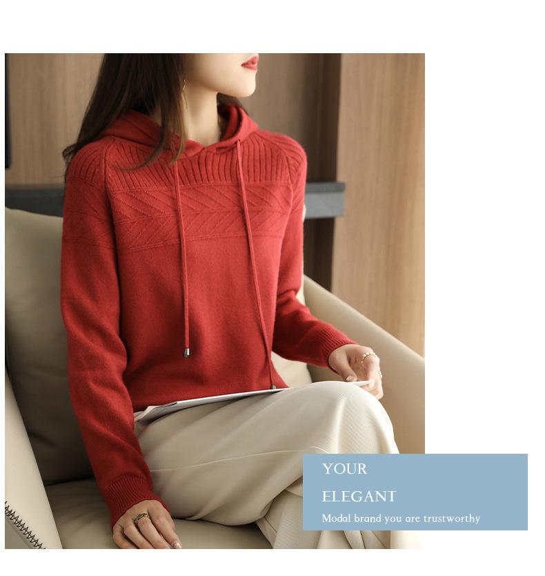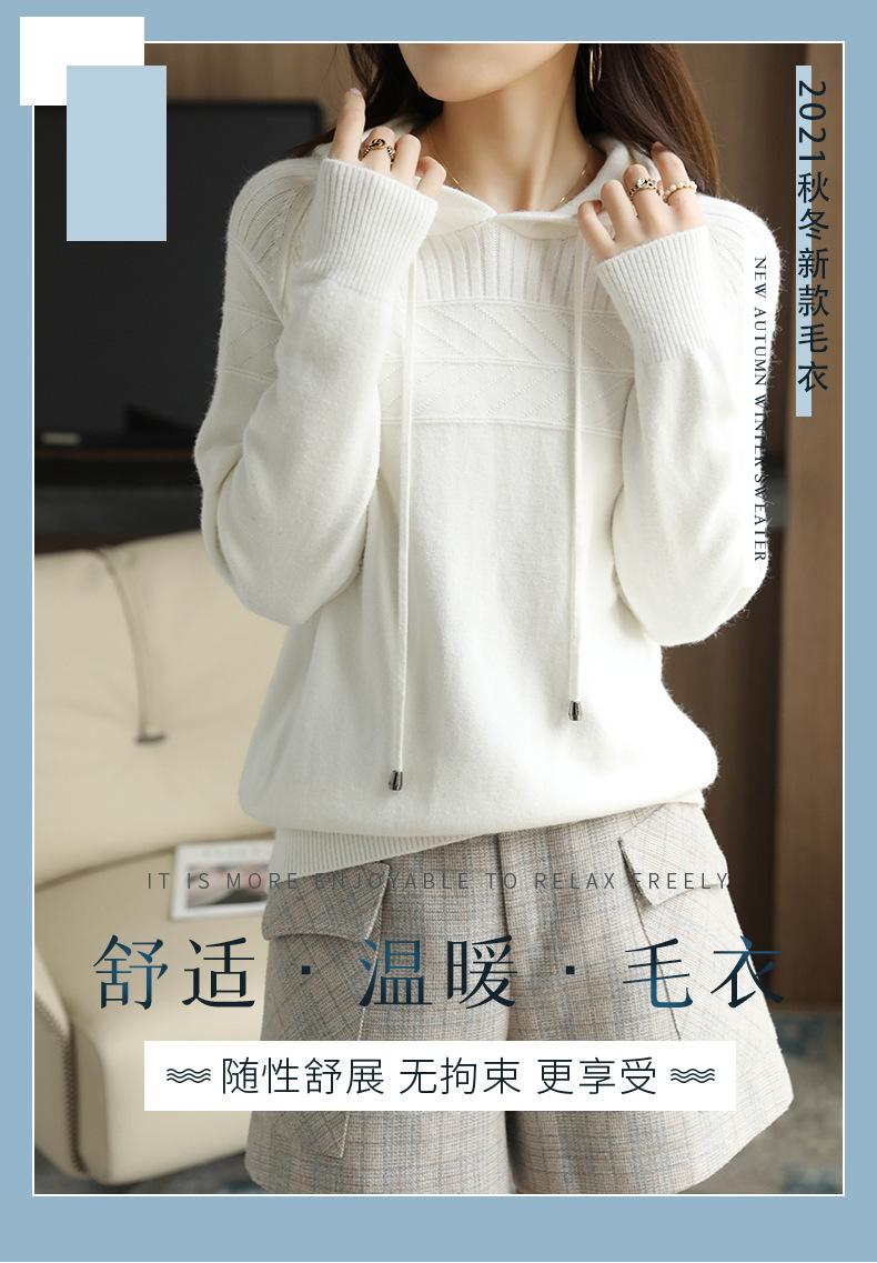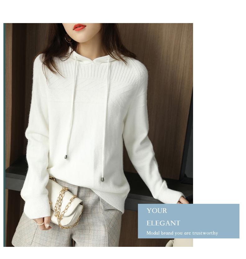 Otoño e invierno Nuevo suéter de punto con capucha para mujer, top holgado de manga larga, suéter con capucha versátil, camisa de fondo corta