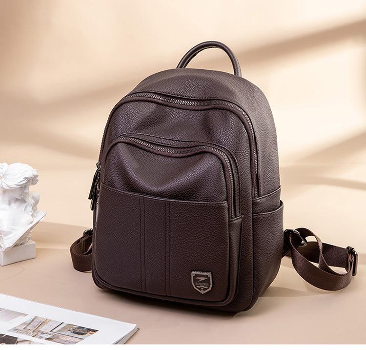 Mochila de Cuero Suave para Mujer 2025 Nueva Tendencia de Moda Mochila Simple de Gran Capacidad para Mujer Mochila de Viaje Popular Bolso Escolar