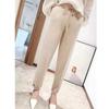 Pantalones Ajustados de Lana Pura Otoño e Invierno Nuevo Estilo Pantalones de Punto de Pierna Ancha para Mujer Medianos-Gruesos Casual Elásticos de Cintura Alta Pantalones Cónicos