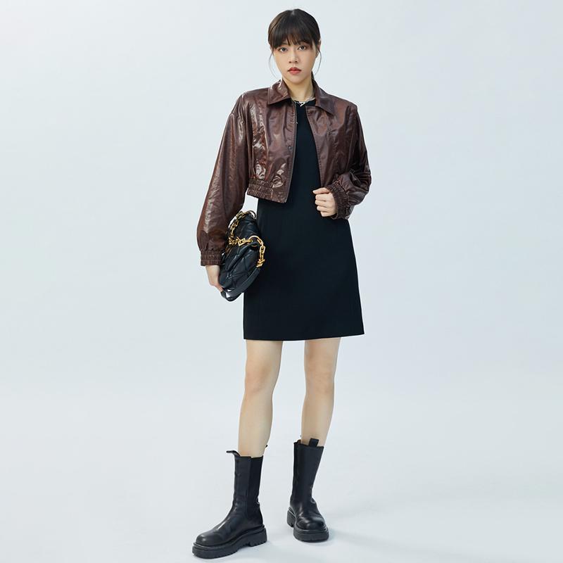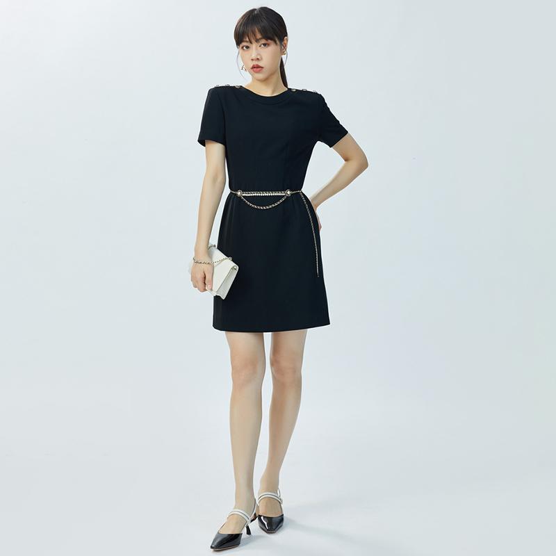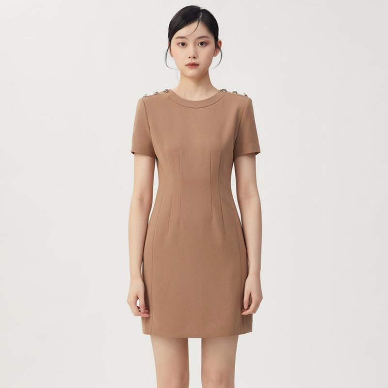 Vestido de mujer con falda ajustada de cintura corta y manga corta con temperamento simple, nuevo centro comercial de primavera y otoño de 2024