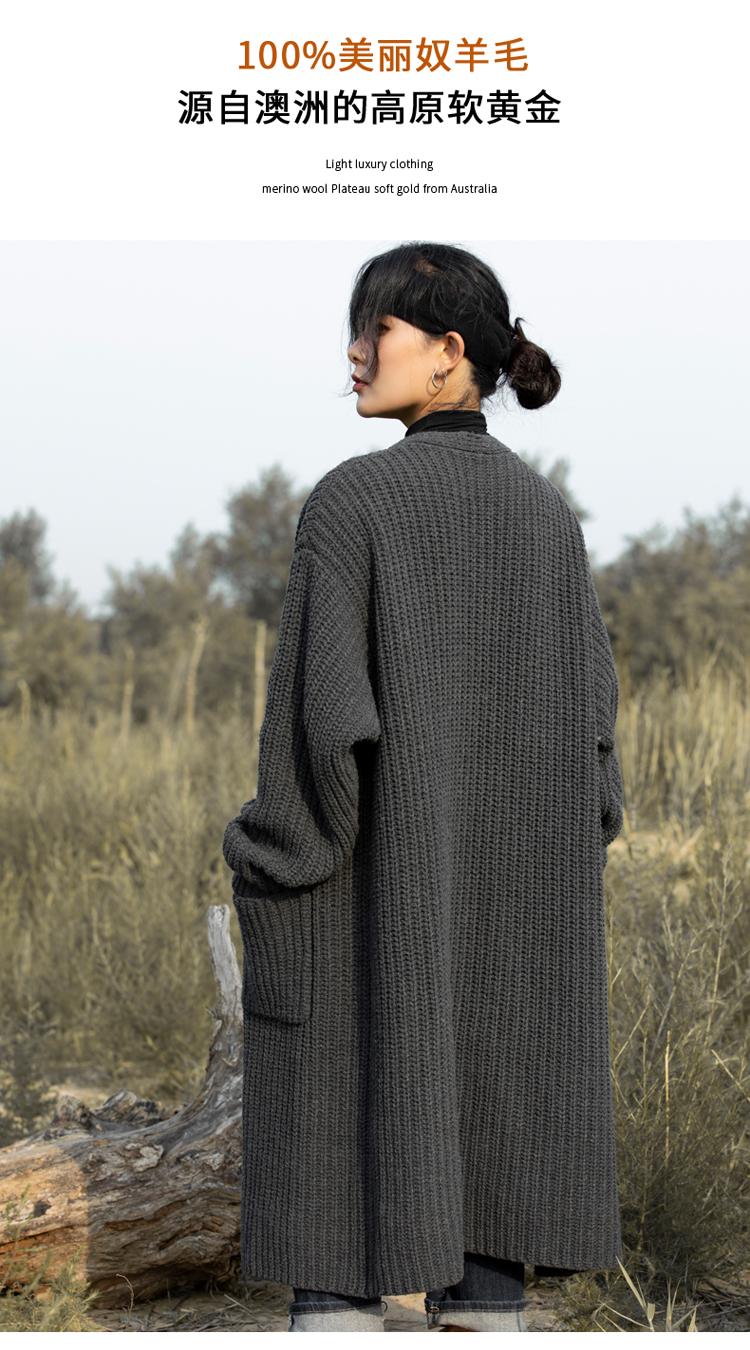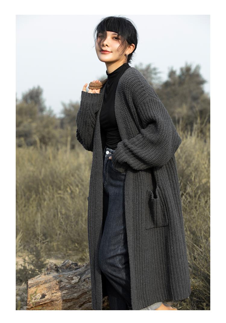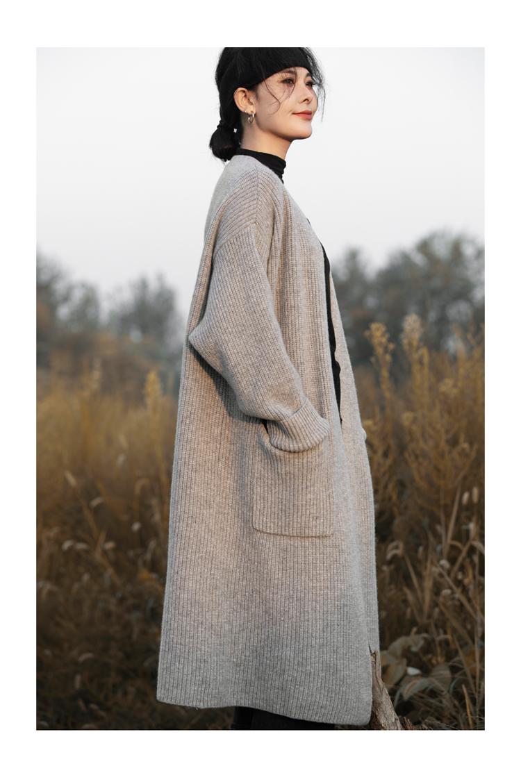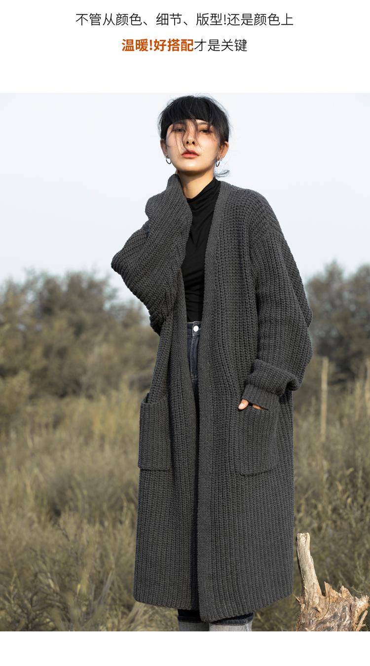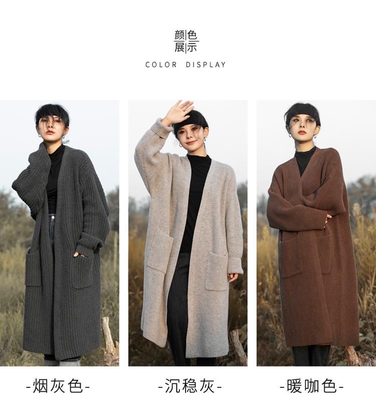 Cárdigan de punto de cachemira gruesa para mujer, otoño e invierno, estilo europeo, abrigo de lana pura largo hasta la rodilla, holgado, talla grande