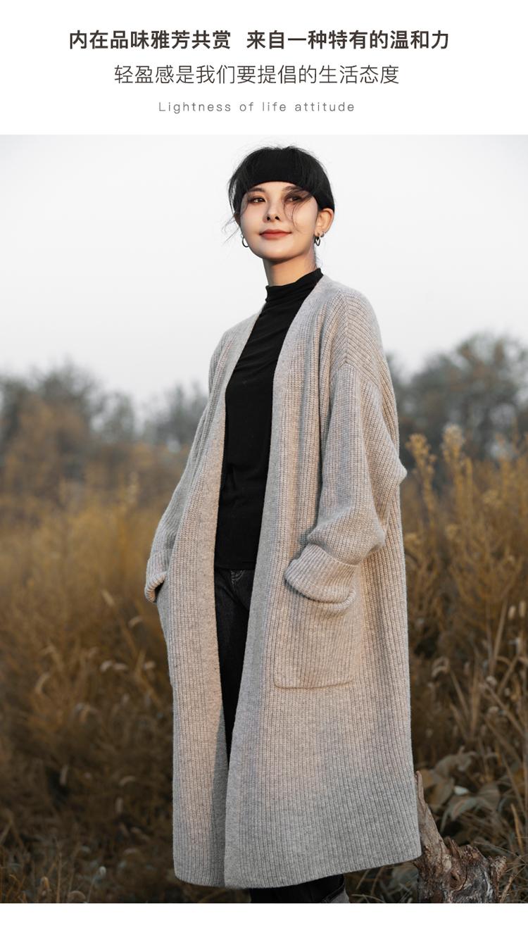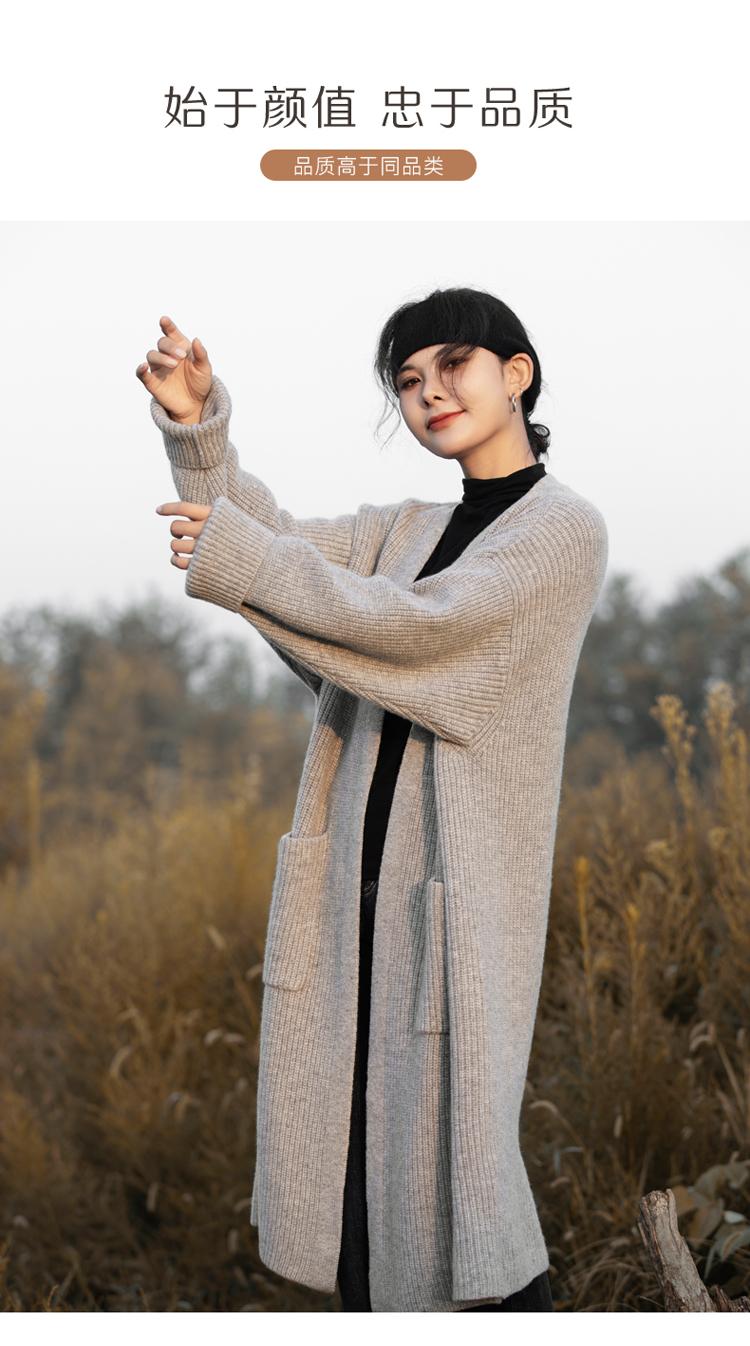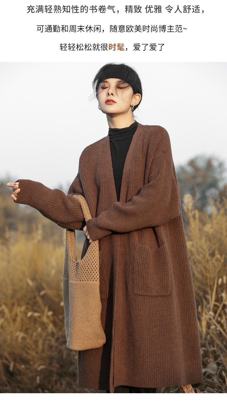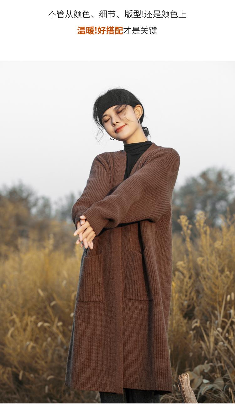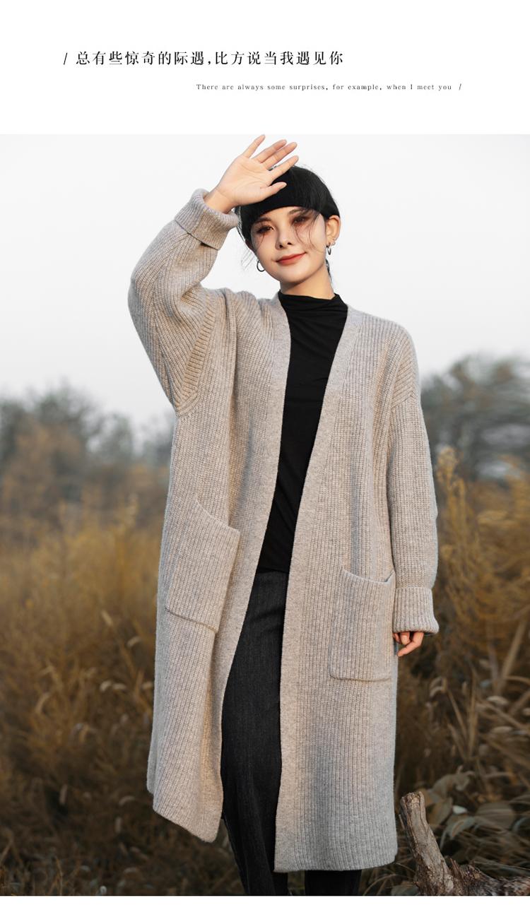Cárdigan de punto de cachemira gruesa para mujer, otoño e invierno, estilo europeo, abrigo de lana pura largo hasta la rodilla, holgado, talla grande
