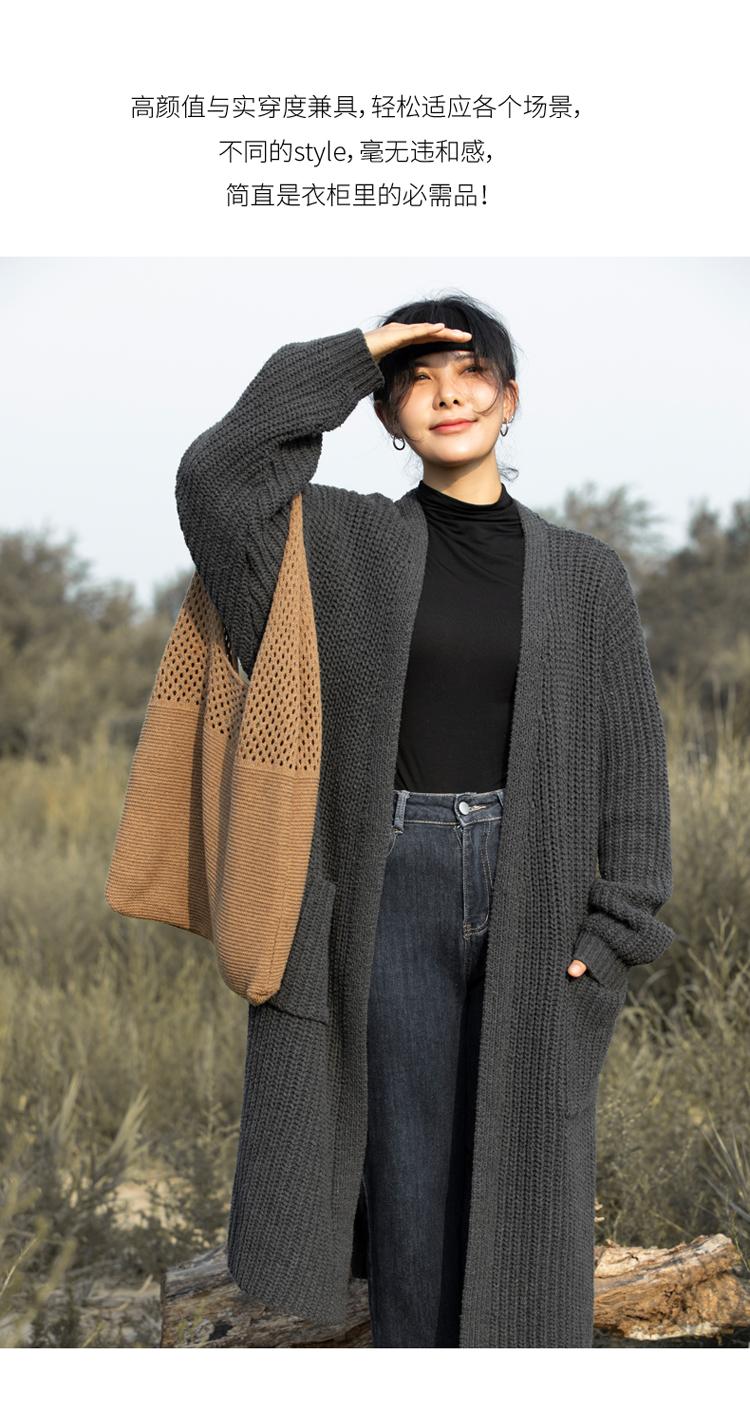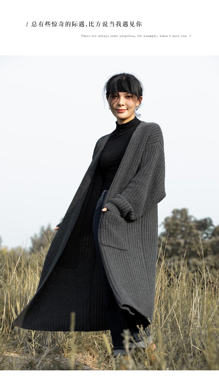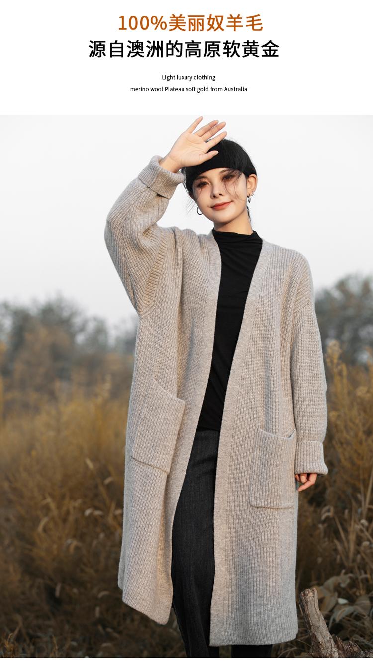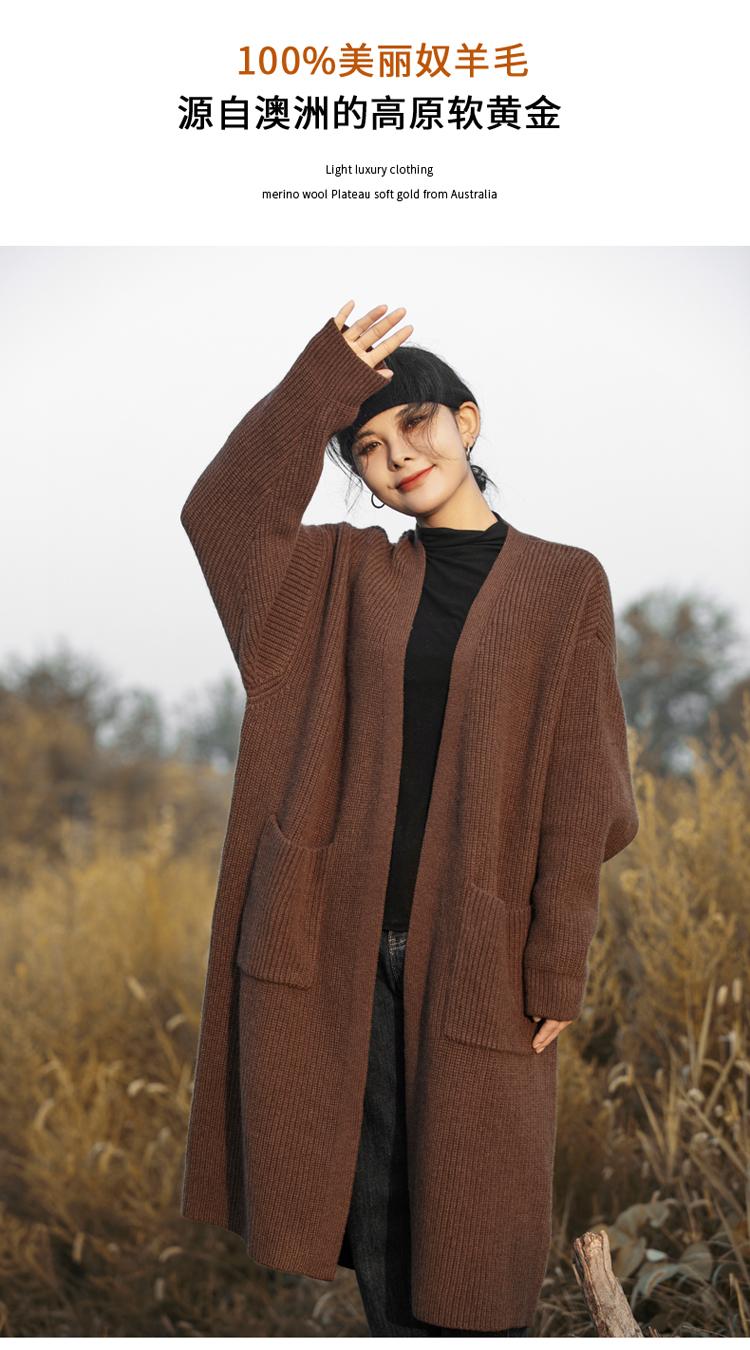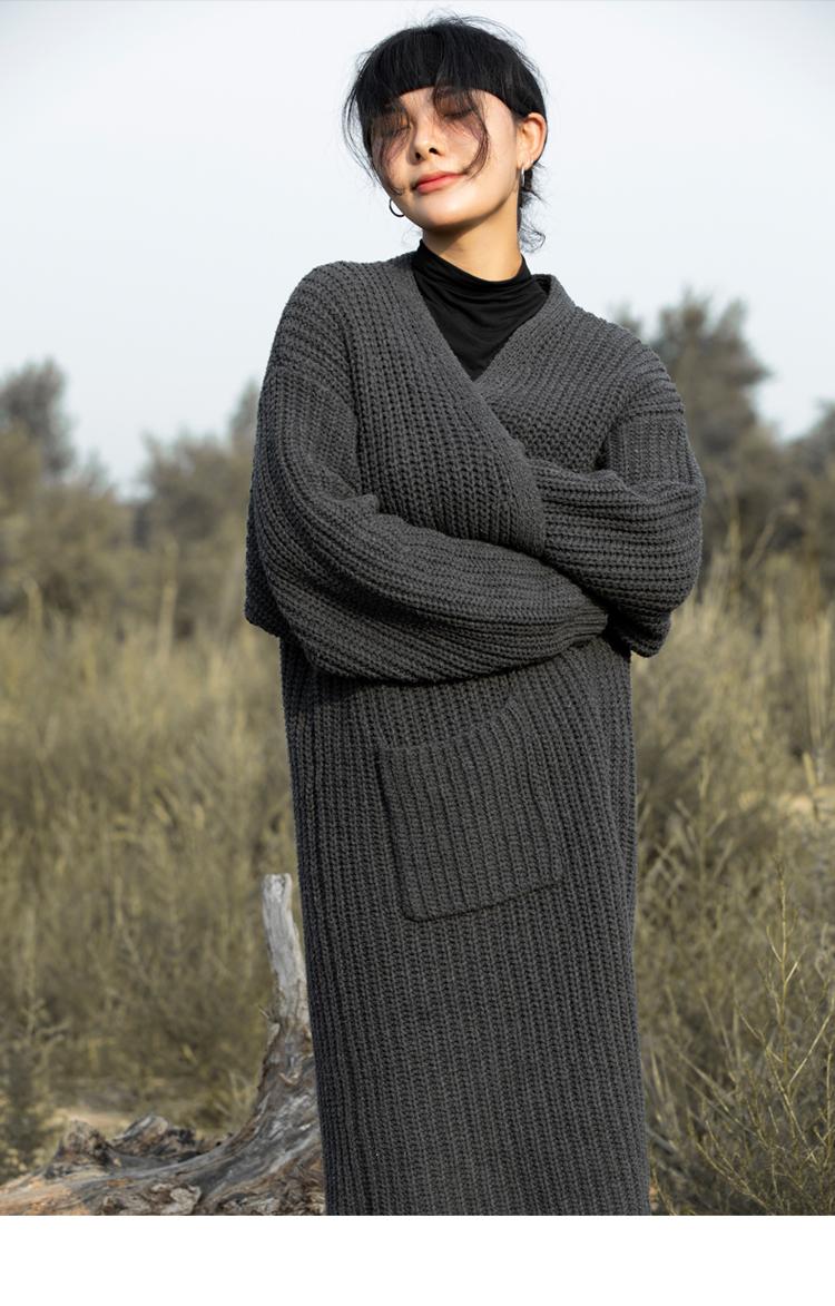 Cárdigan de punto de cachemira gruesa para mujer, otoño e invierno, estilo europeo, abrigo de lana pura largo hasta la rodilla, holgado, talla grande