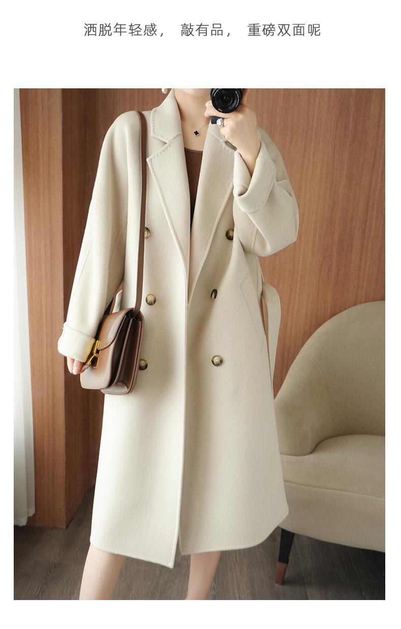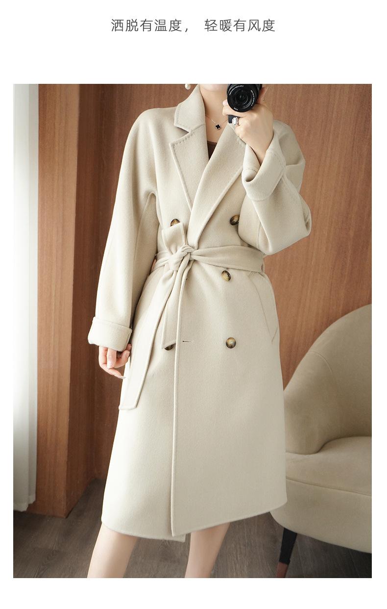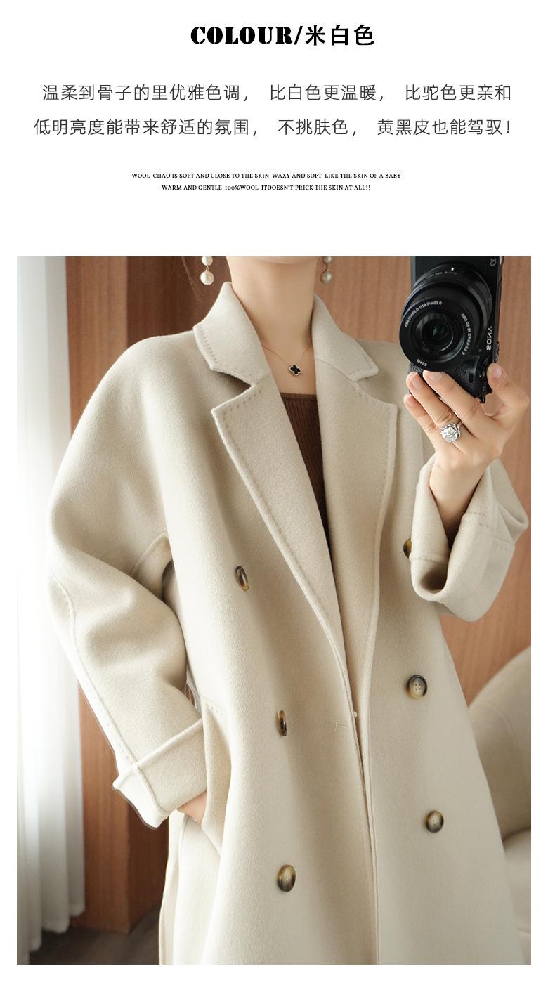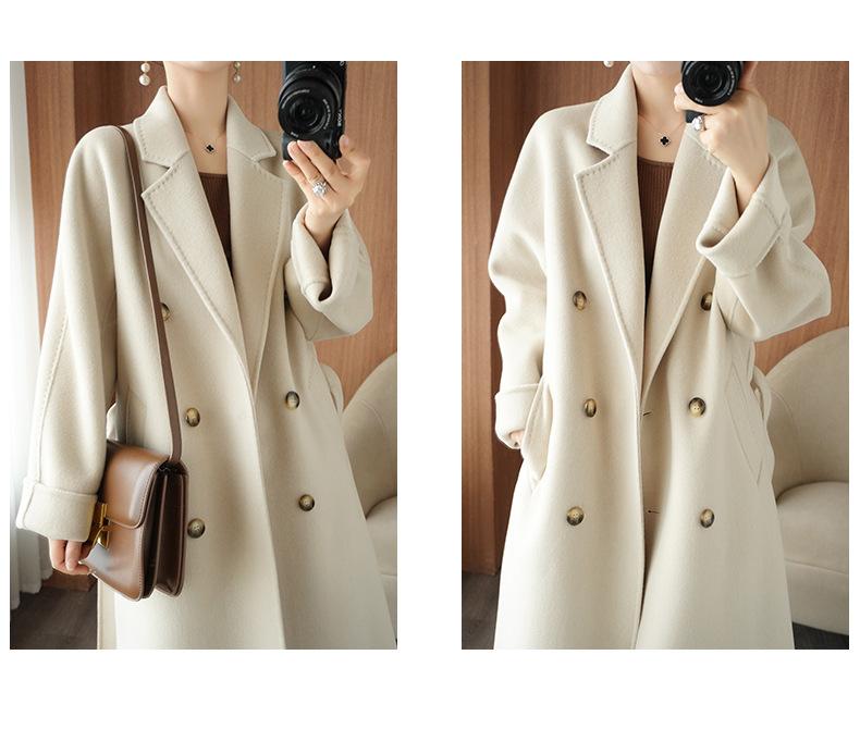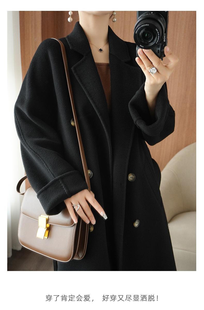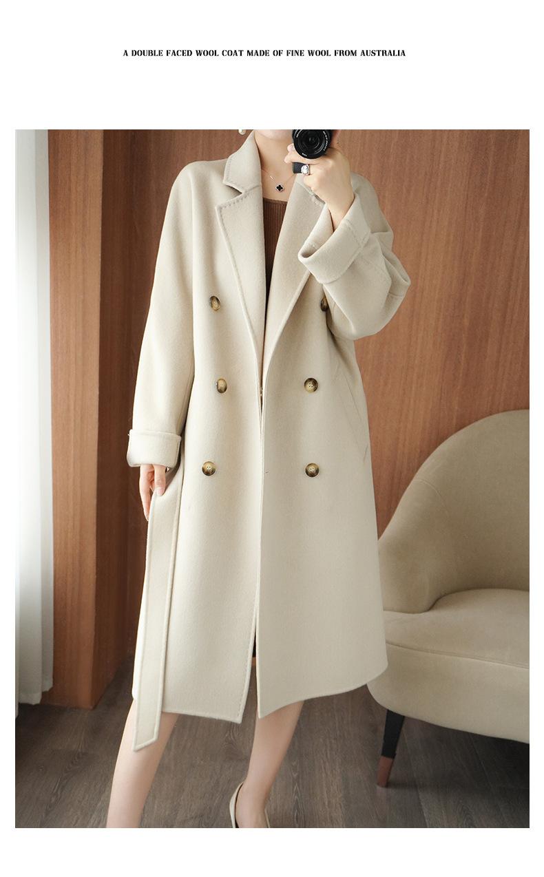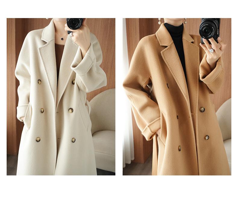 Abrigo de lana de doble cara para mujer, nuevo abrigo de lana de otoño e invierno, largo medio, cruzado, holgado, informal, ajustado, para mujer