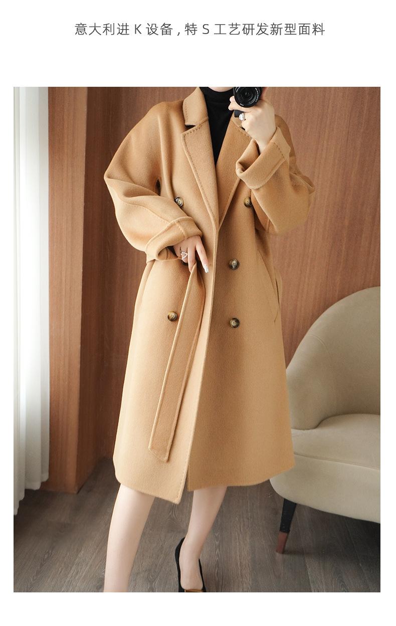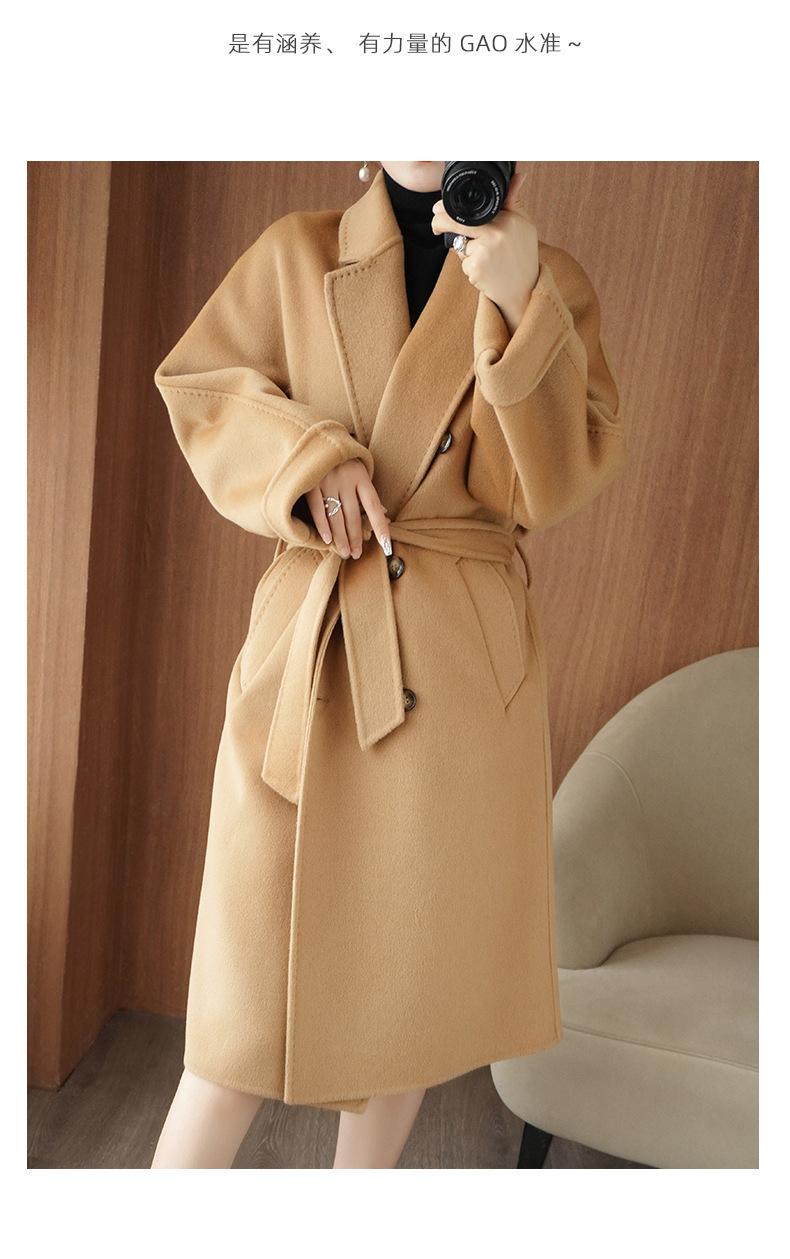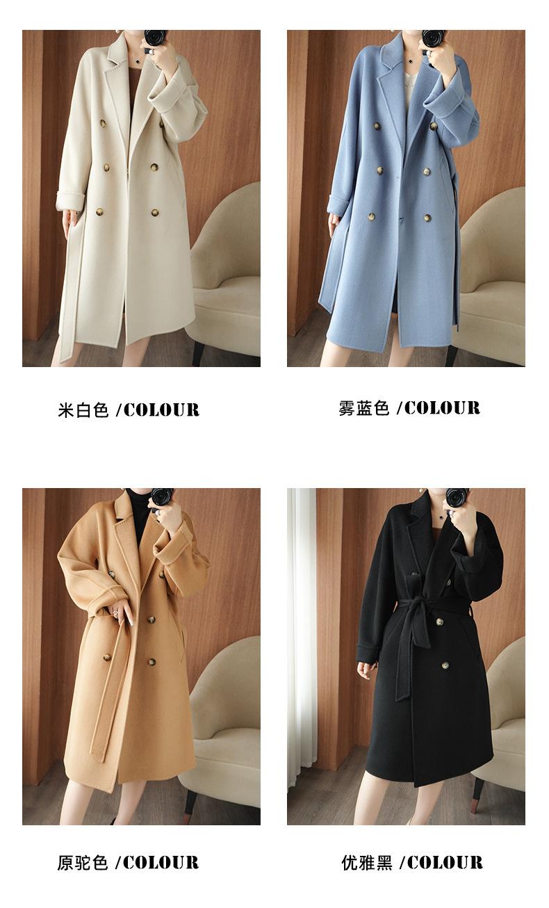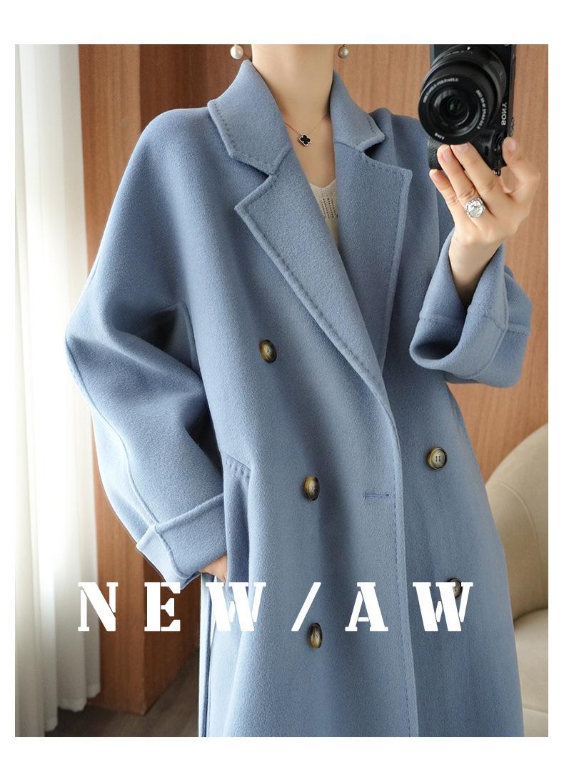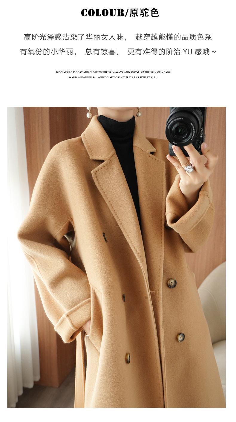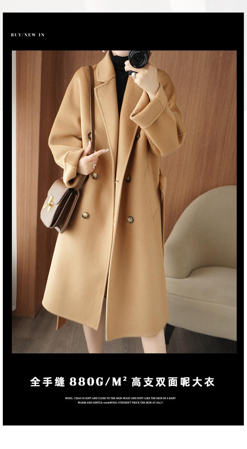 Abrigo de lana de doble cara para mujer, nuevo abrigo de lana de otoño e invierno, largo medio, cruzado, holgado, informal, ajustado, para mujer
