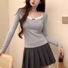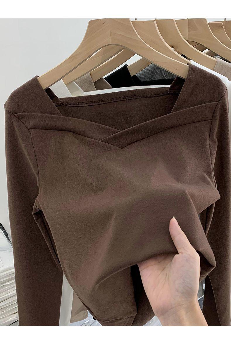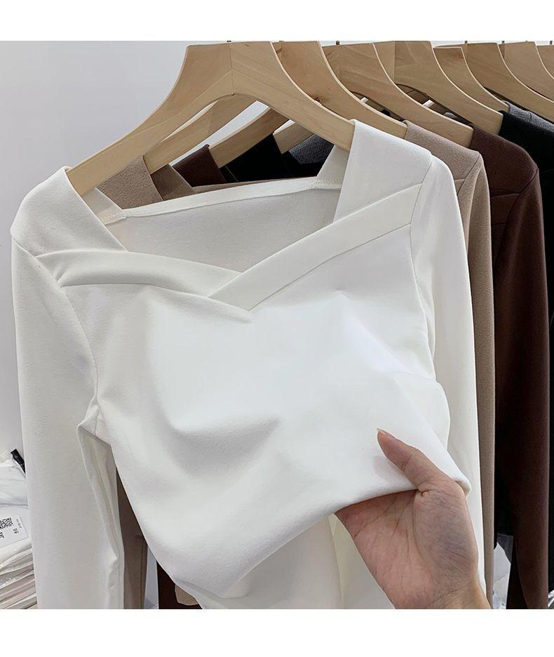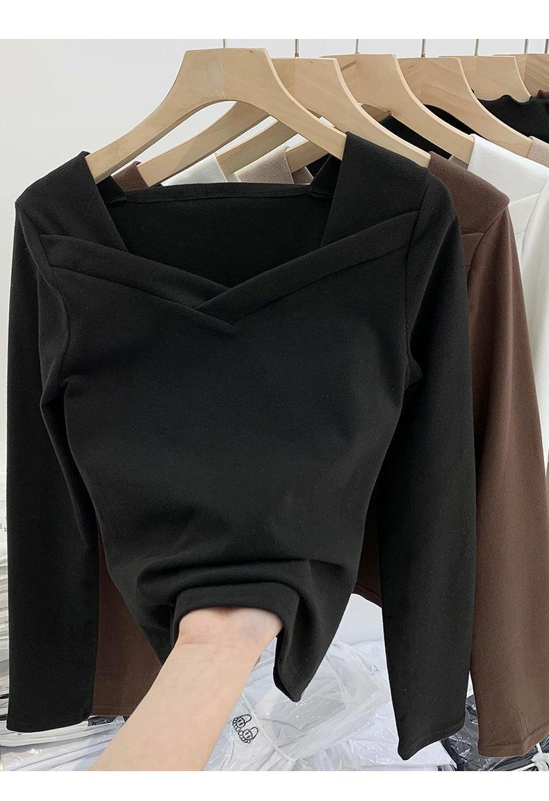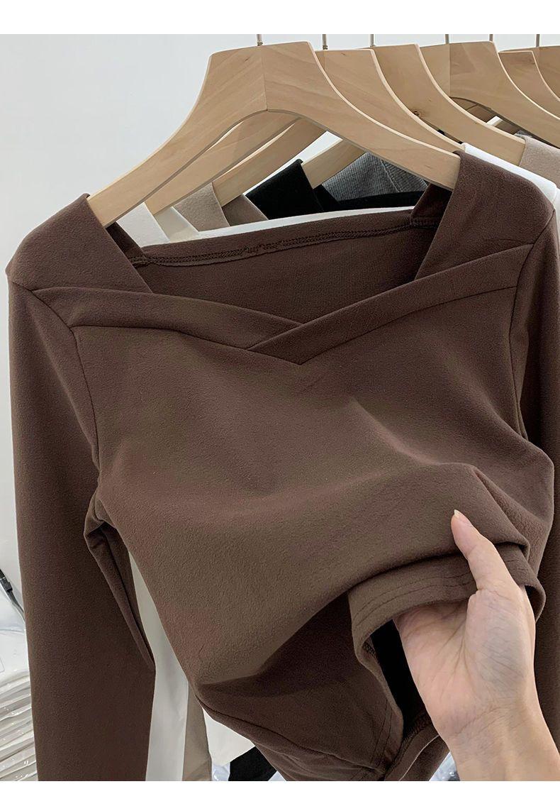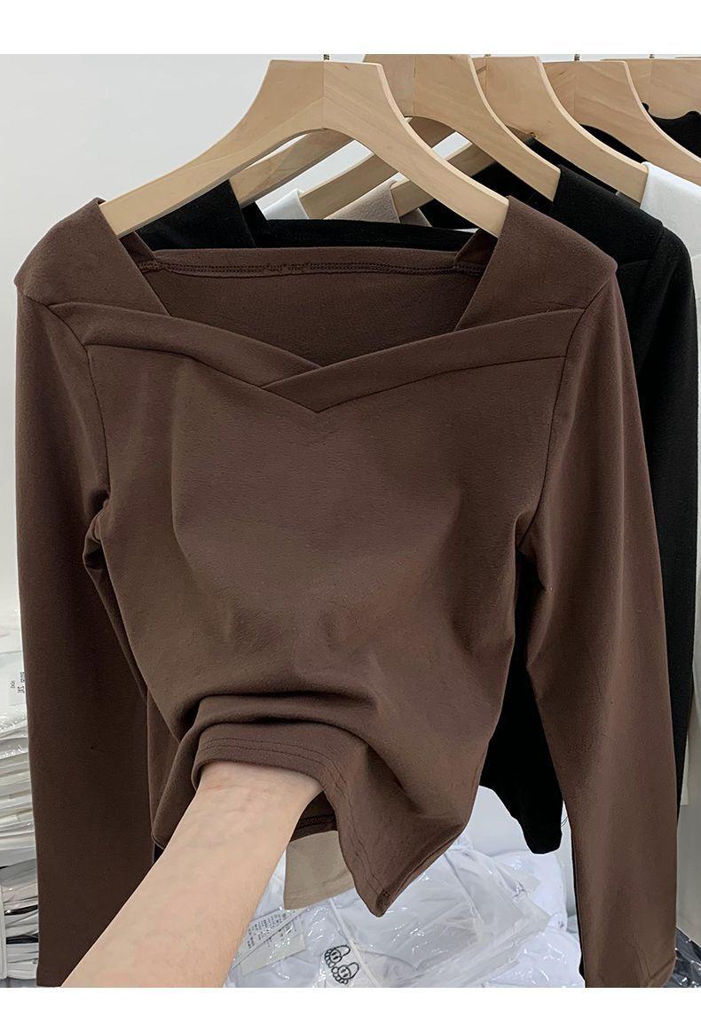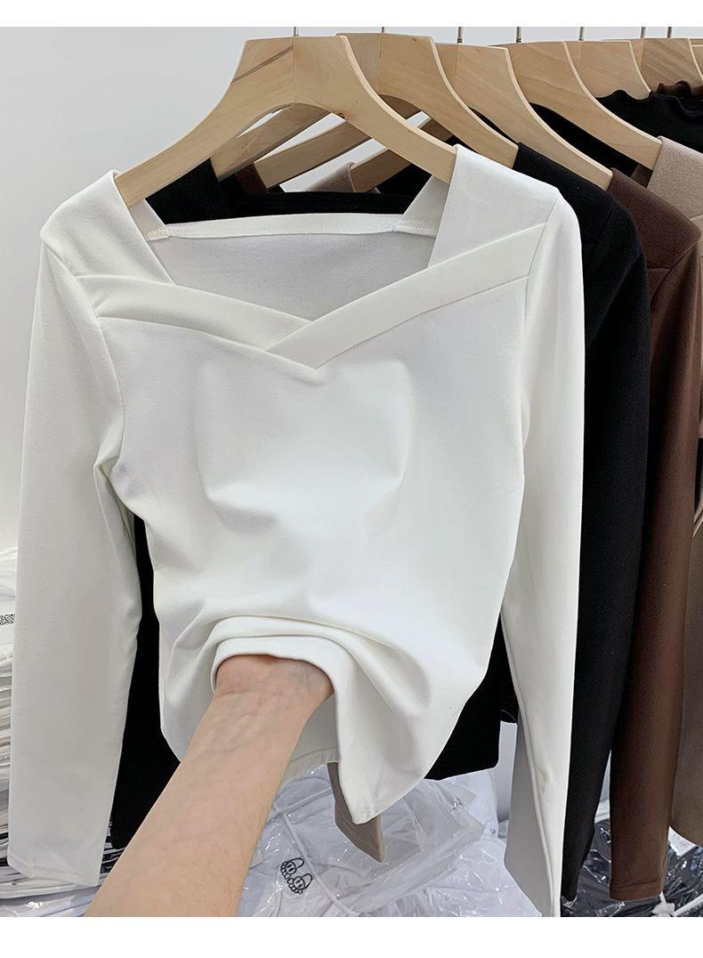 Camisa de terciopelo para mujer, otoño e invierno, nuevo diseño, cuello cuadrado nicho, estilo irregular, elegante, corte entallado, interior.