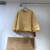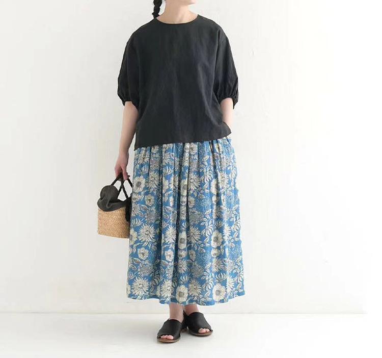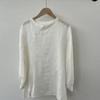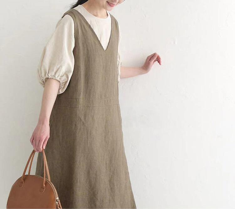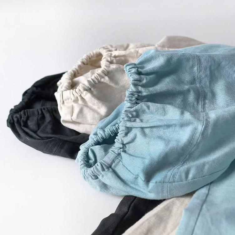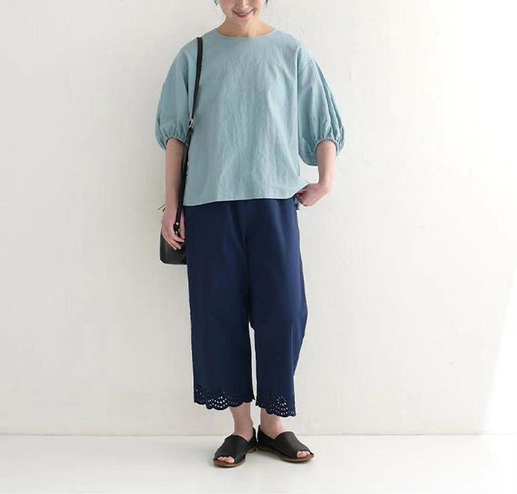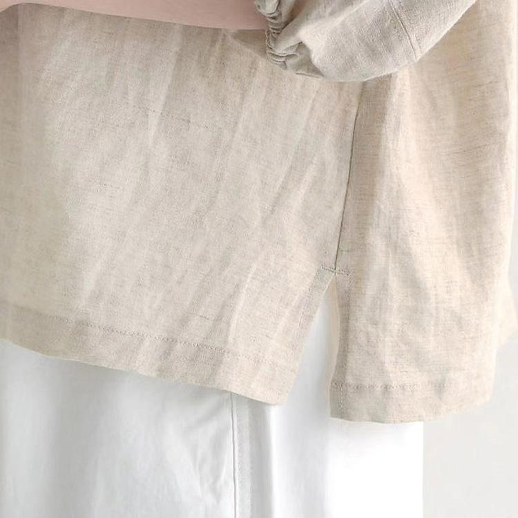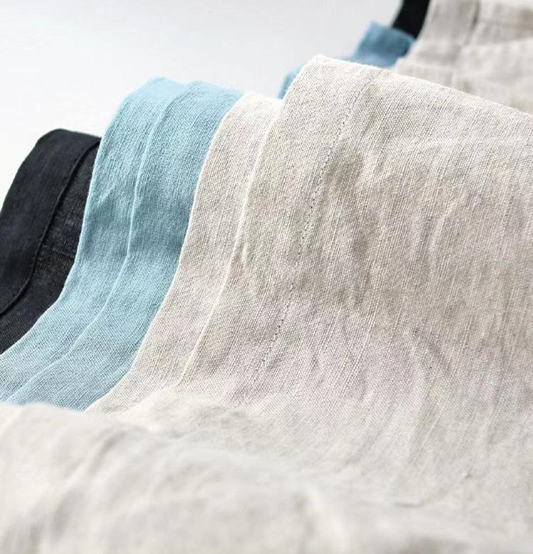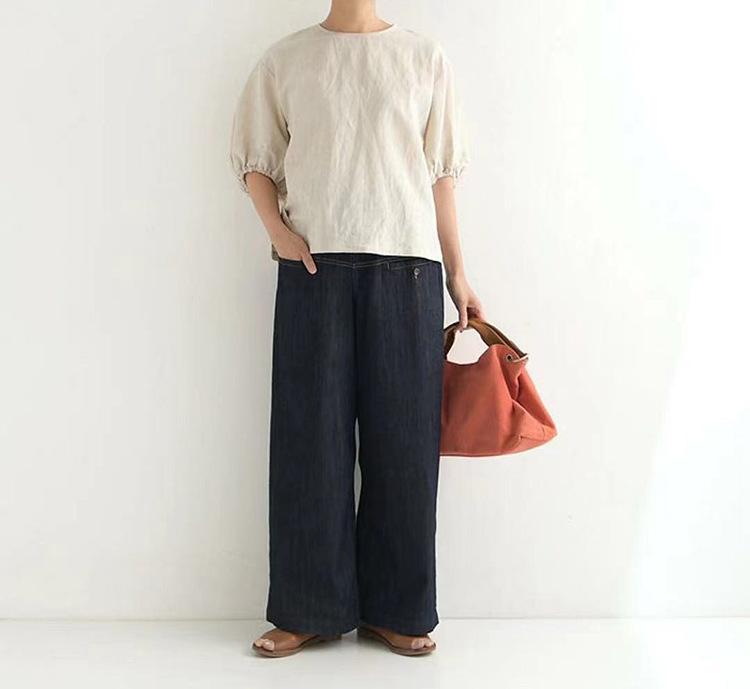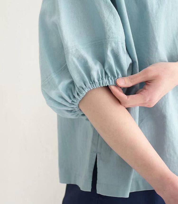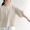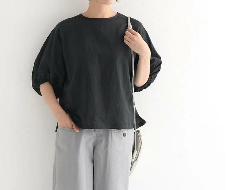 Camiseta de verano de algodón y lino de color liso para mujer, holgada, fresca, transpirable, con mangas abullonadas