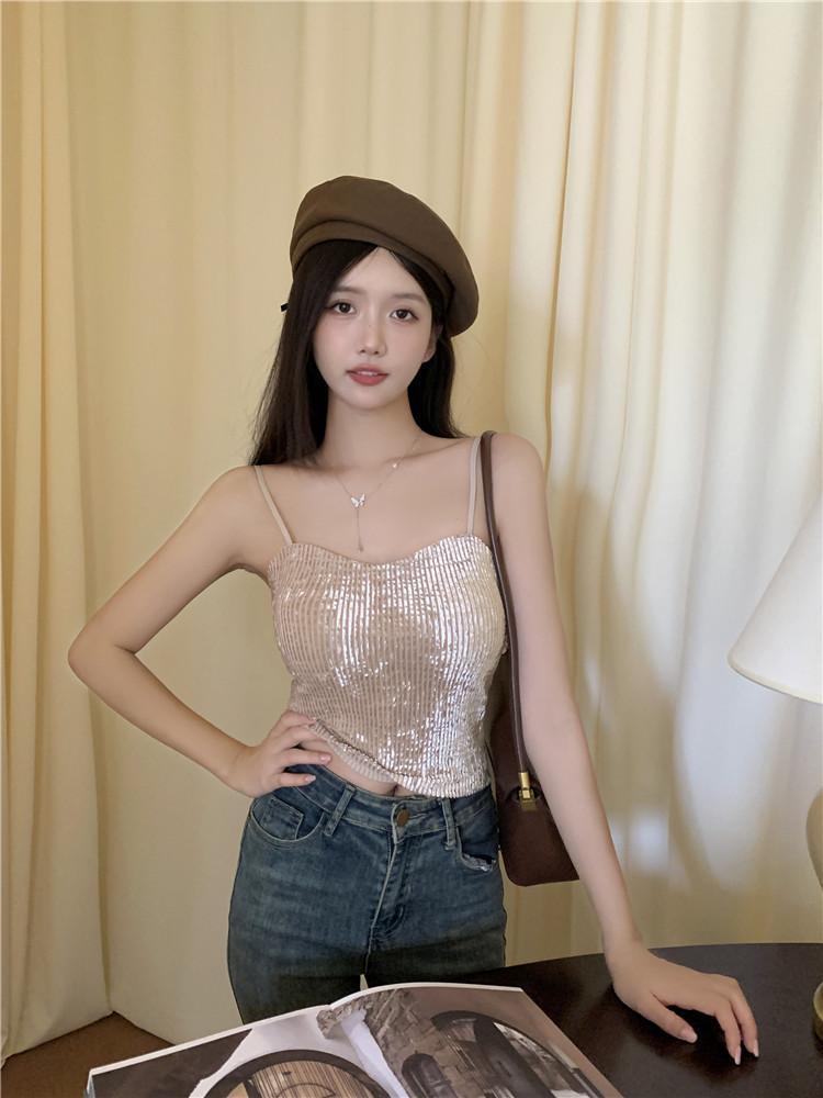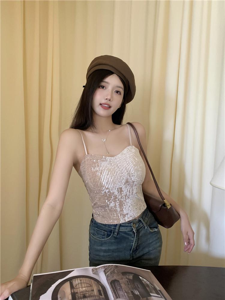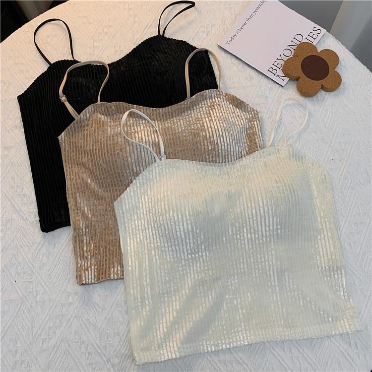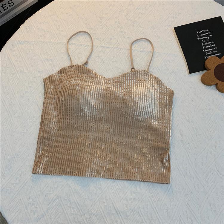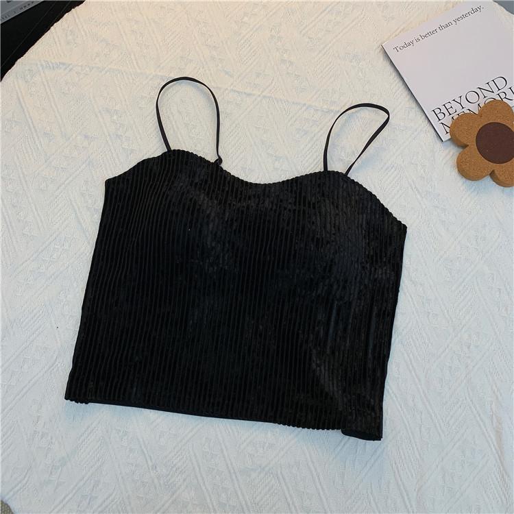Camisola pequeña de terciopelo dorado para mujer, de otoño, con almohadilla para el pecho, ropa exterior, sujetador de espalda de belleza, ropa interior de una pieza, base interior superior
