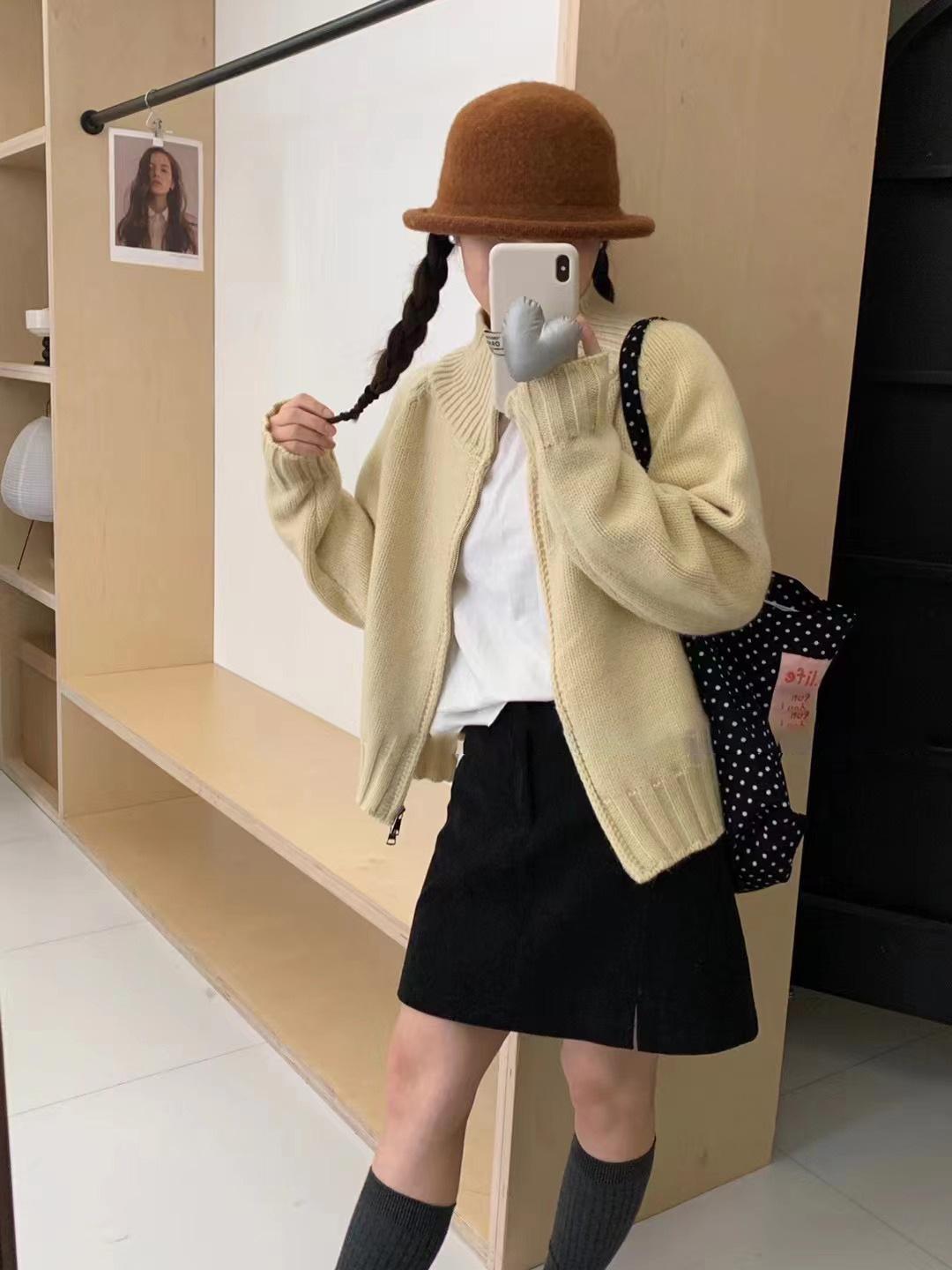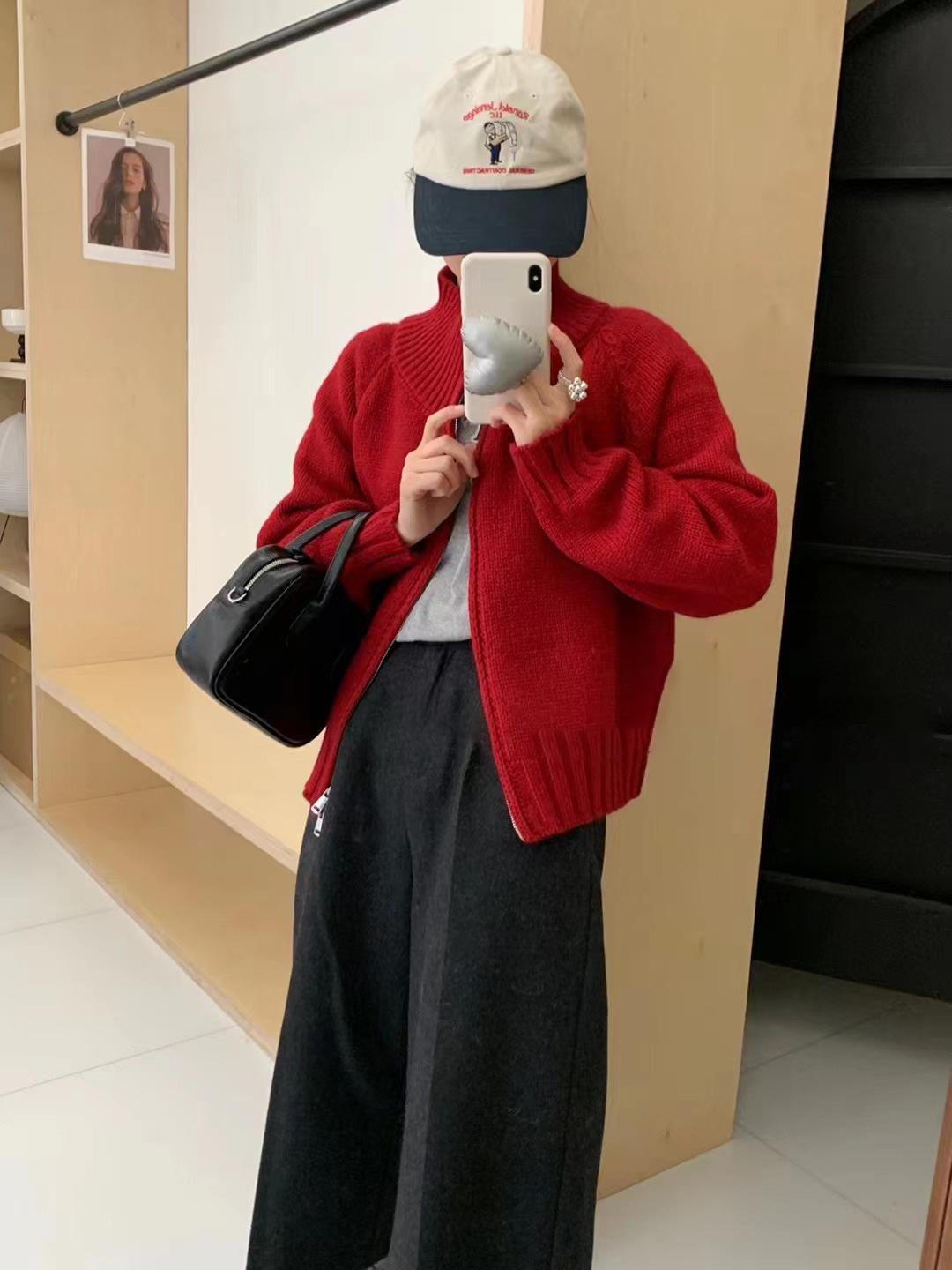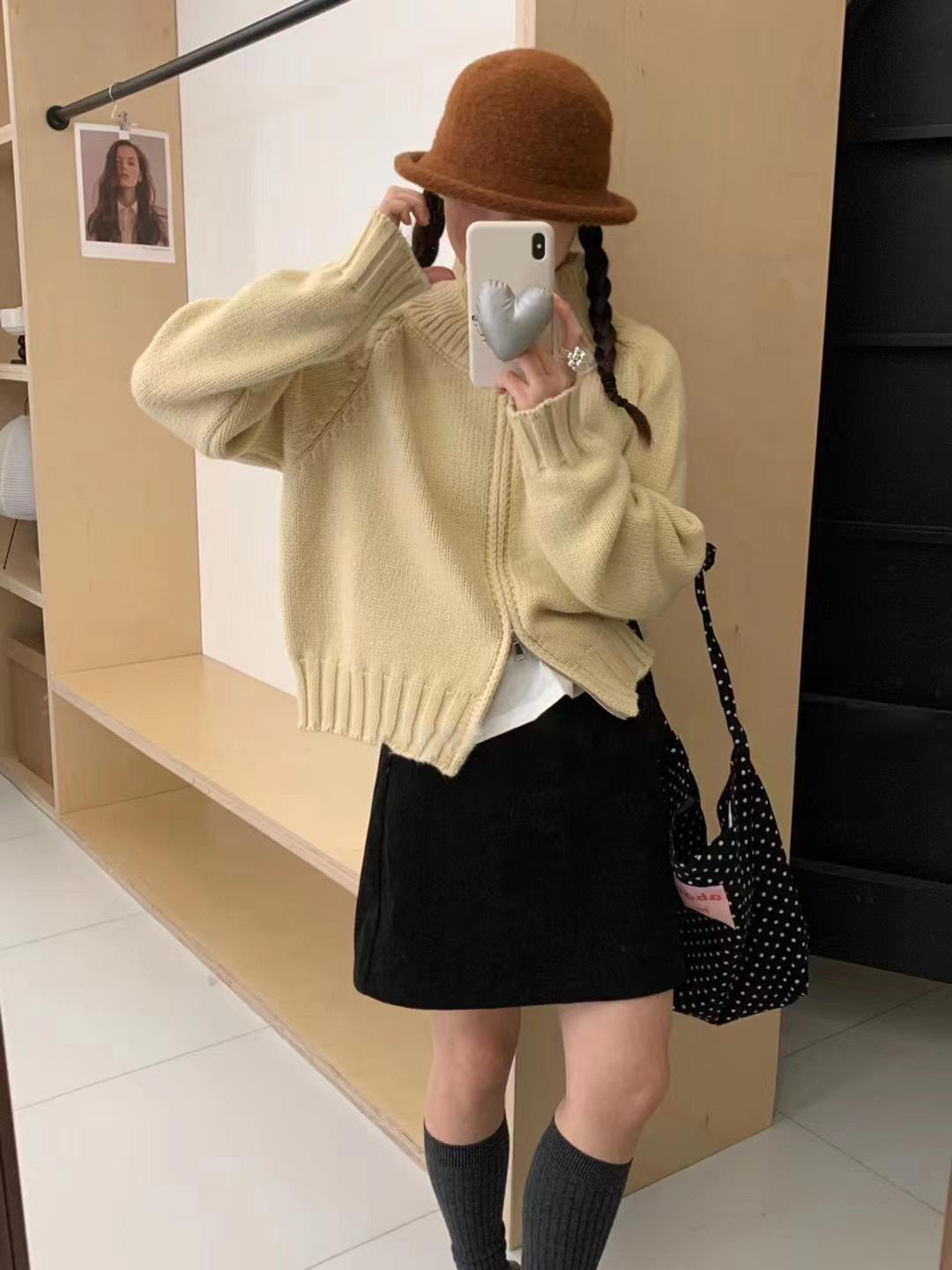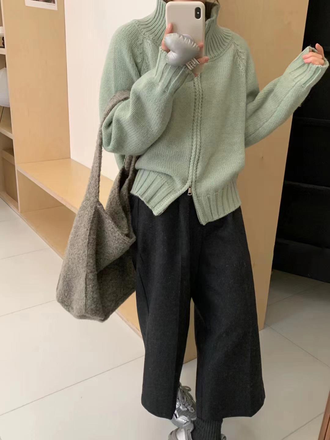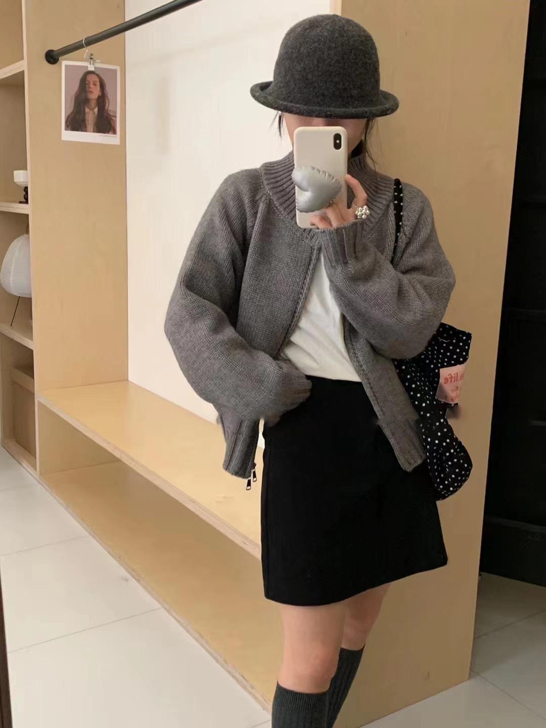 Primavera 2024 Nuevo estilo coreano, cárdigan de punto con cuello alto y cremallera de color sólido, abrigo informal holgado y adelgazante para mujer