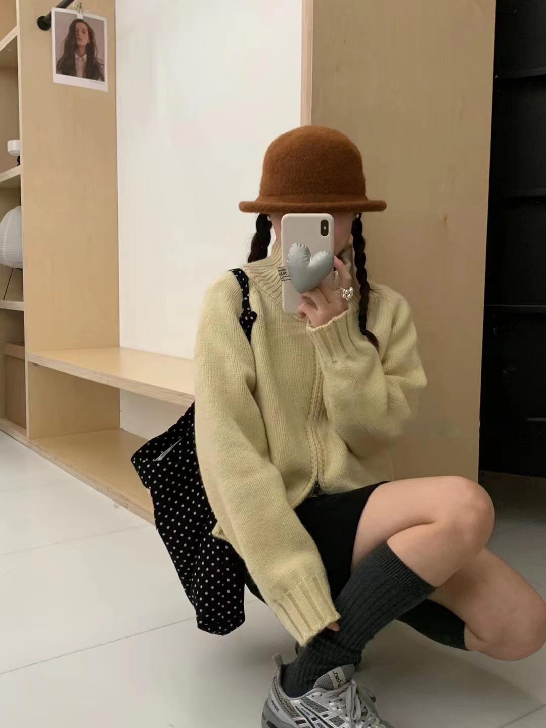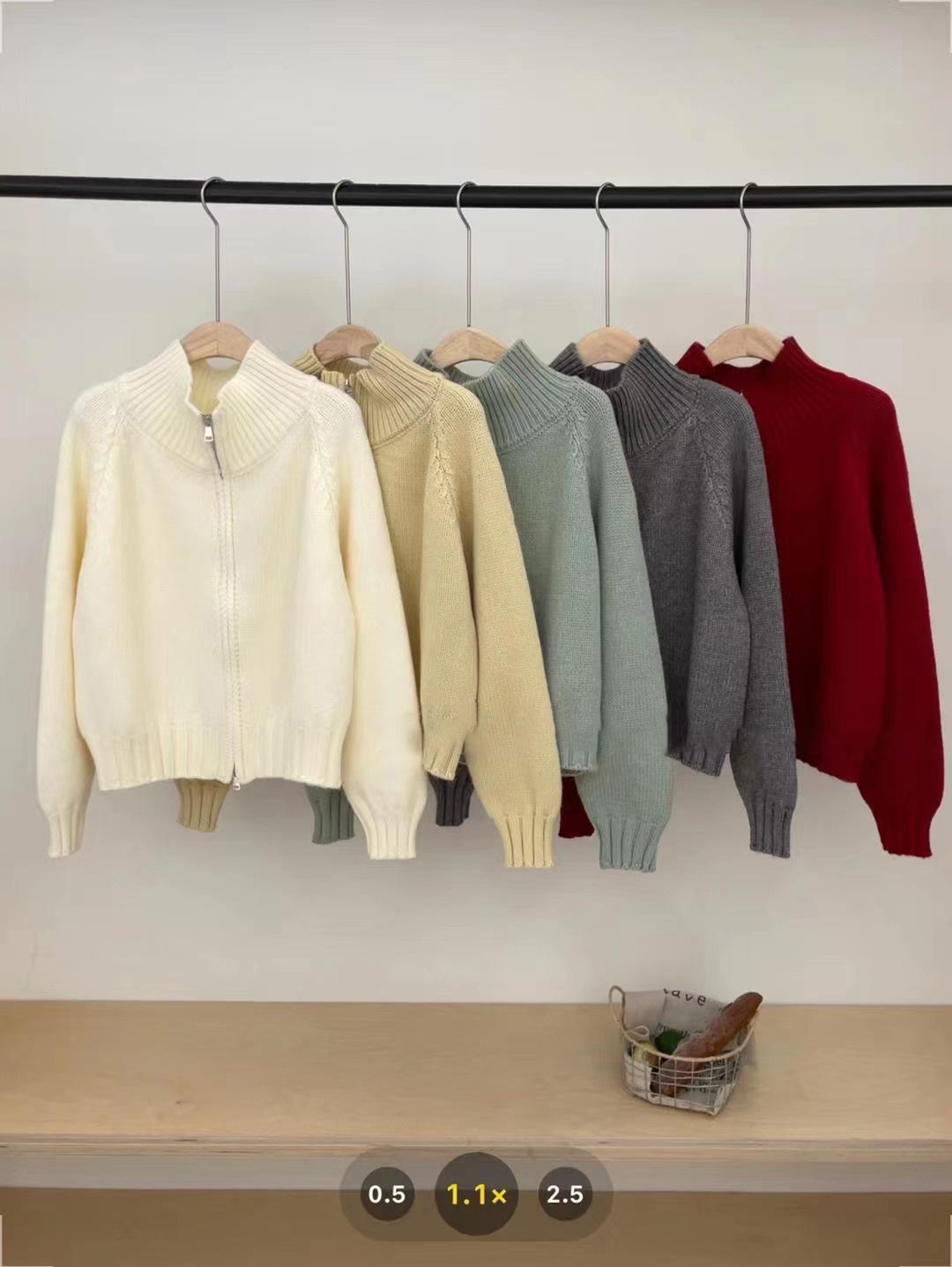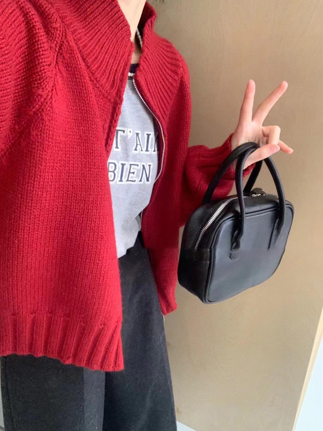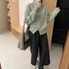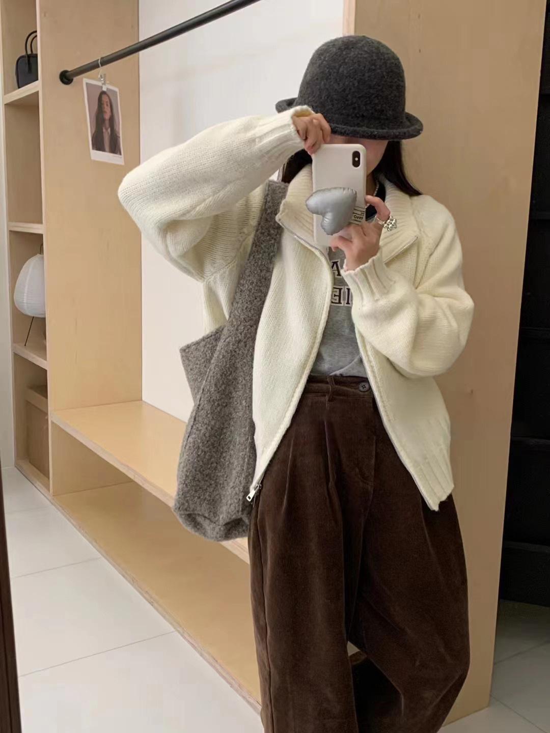 Primavera 2024 Nuevo estilo coreano, cárdigan de punto con cuello alto y cremallera de color sólido, abrigo informal holgado y adelgazante para mujer