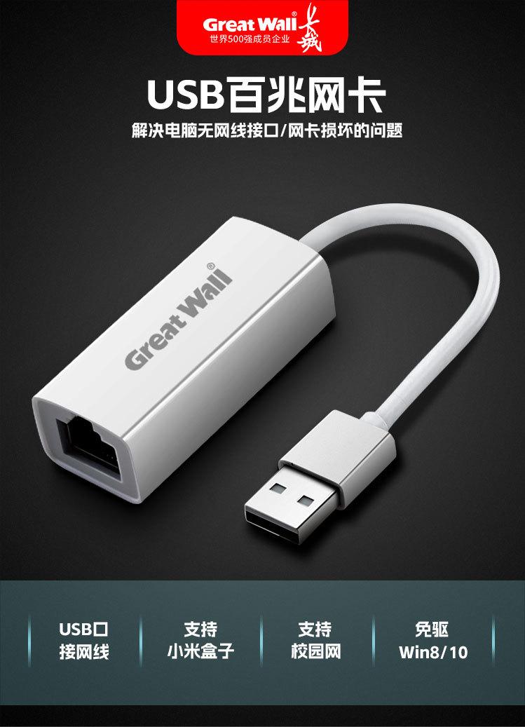 Tarjeta de red cableada USB 2.0 sin unidad a RJ45 Ethernet de 100 Gigabits Convertidor externo para computadora portátil