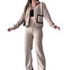 Otoño 2023 nuevo europeo y americano Amazon transfronterizo moda color contraste costura bolsillo botón invertido top traje de pantalón