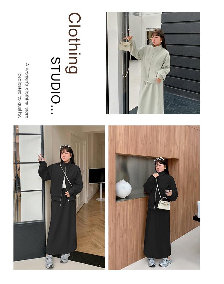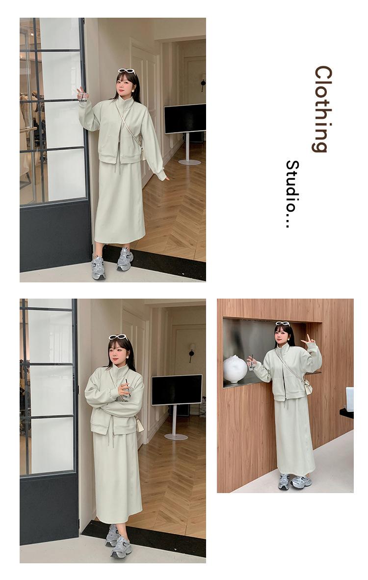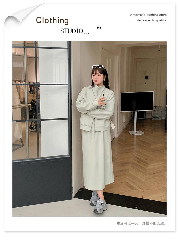 La parte superior es de gran tamaño y el cuello alto con cremallera modifica la línea del cuello.