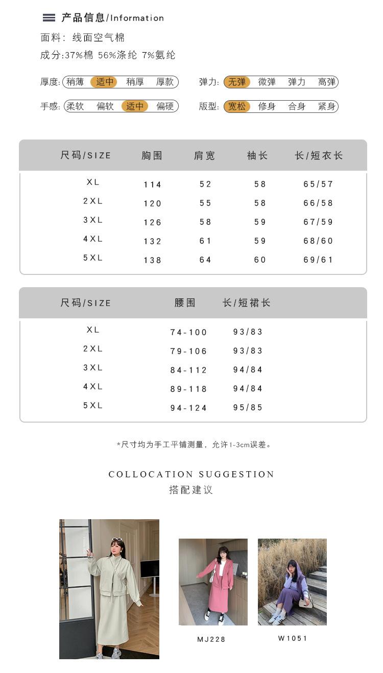 5XL: Busto 138 Largo de manga 60 Ancho de hombros 64 Largo largo 69 Largo corto 61 Cintura 94-124 Largo de falda larga 95 Largo de falda corta 85