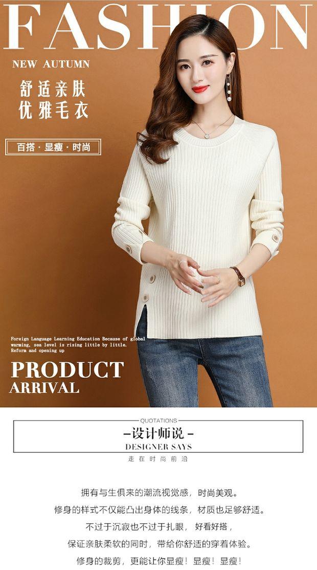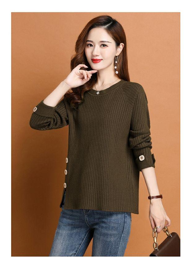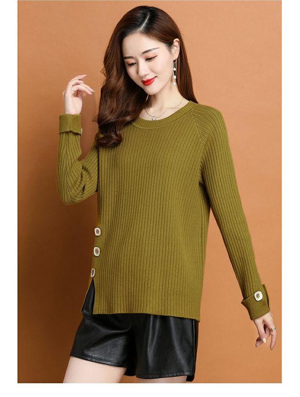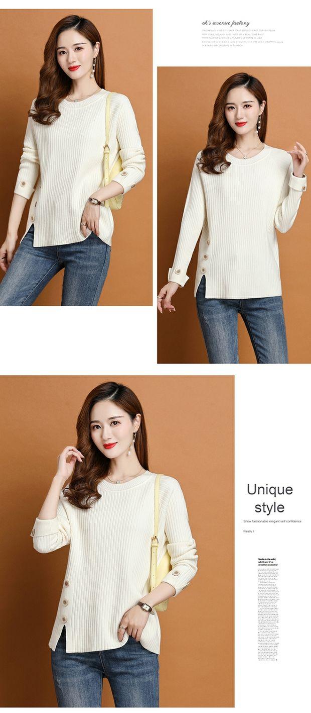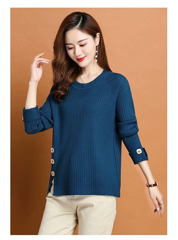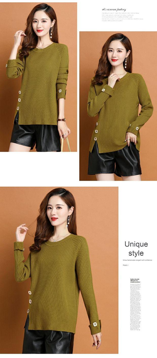 Suéter de cuello redondo para mujer, estilo coreano, otoño e invierno 2023, camiseta interior corta con abertura, suéter adelgazante suelto.