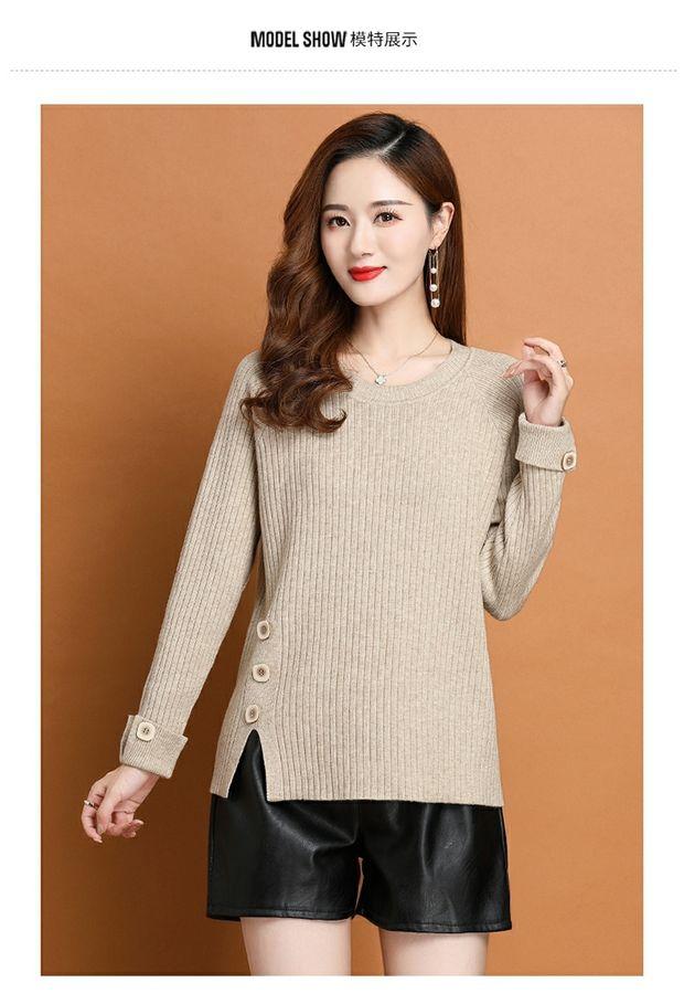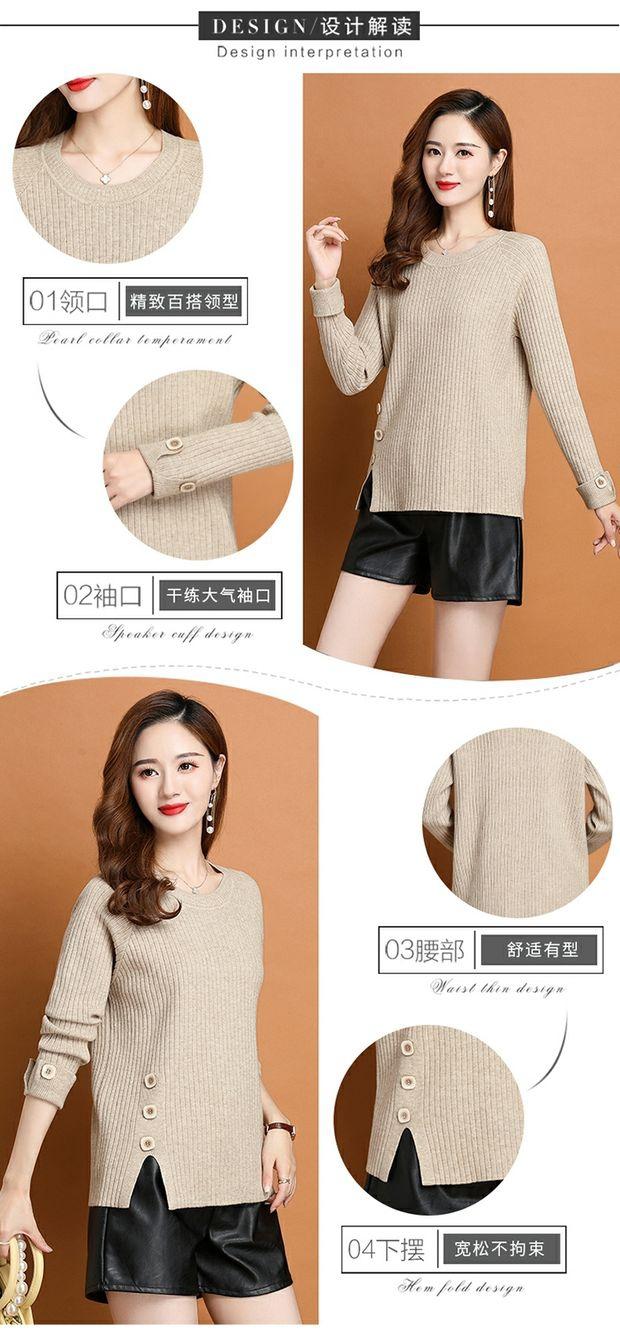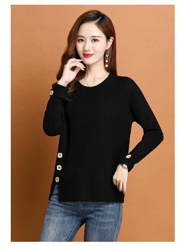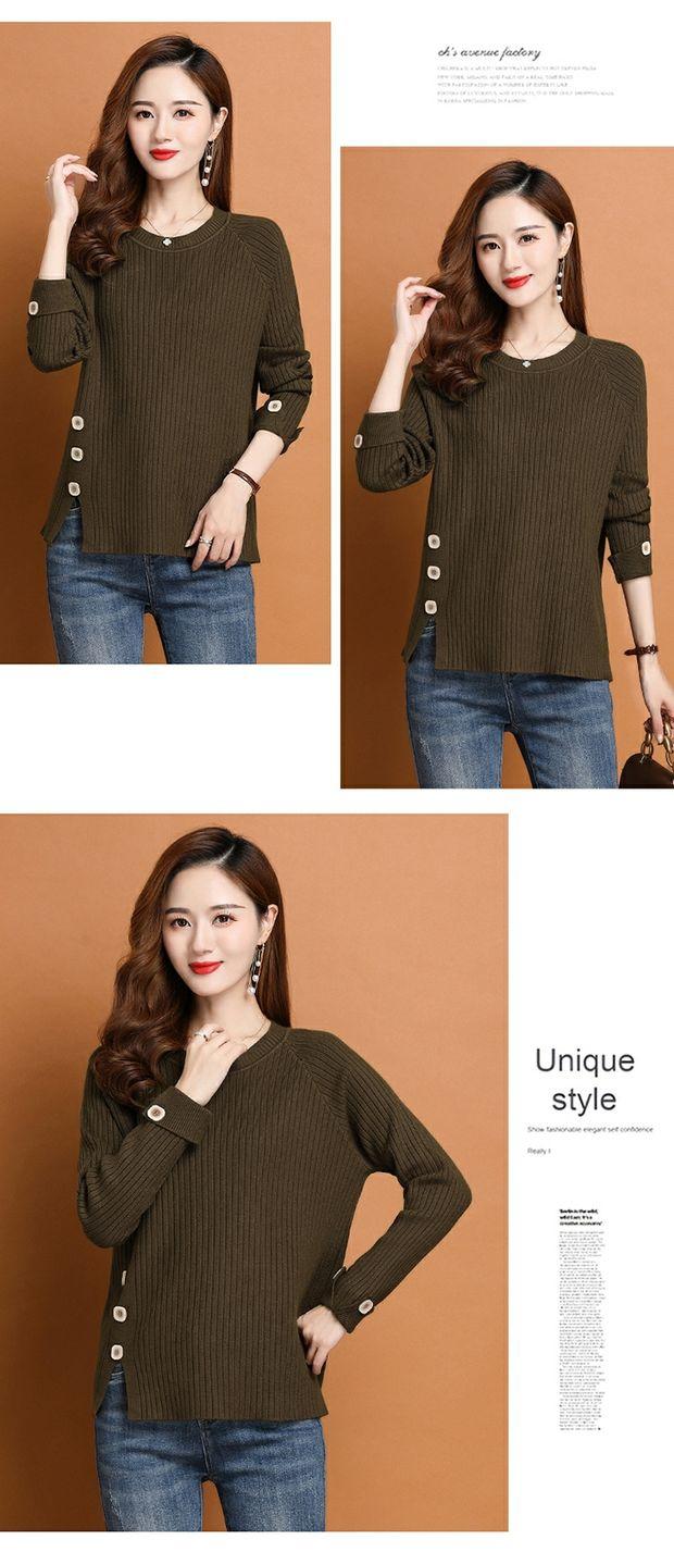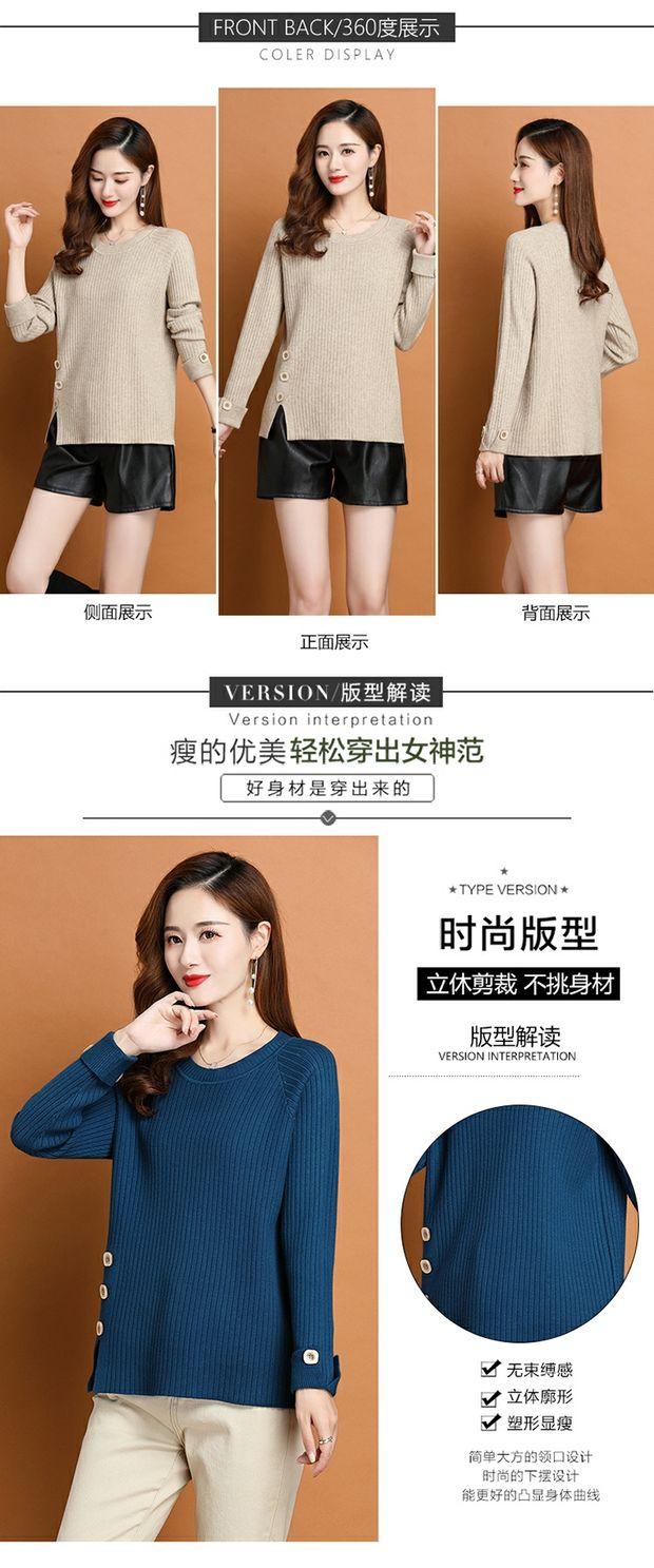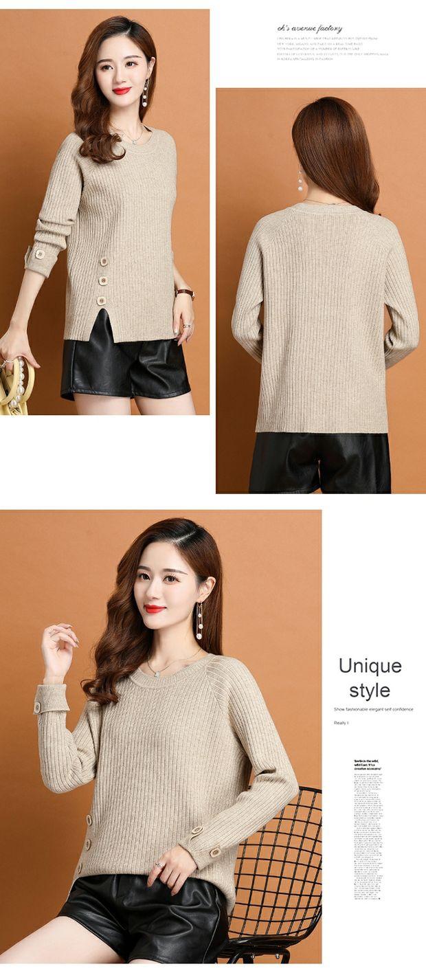 Suéter de cuello redondo para mujer, estilo coreano, otoño e invierno 2023, camiseta interior corta con abertura, suéter adelgazante suelto.