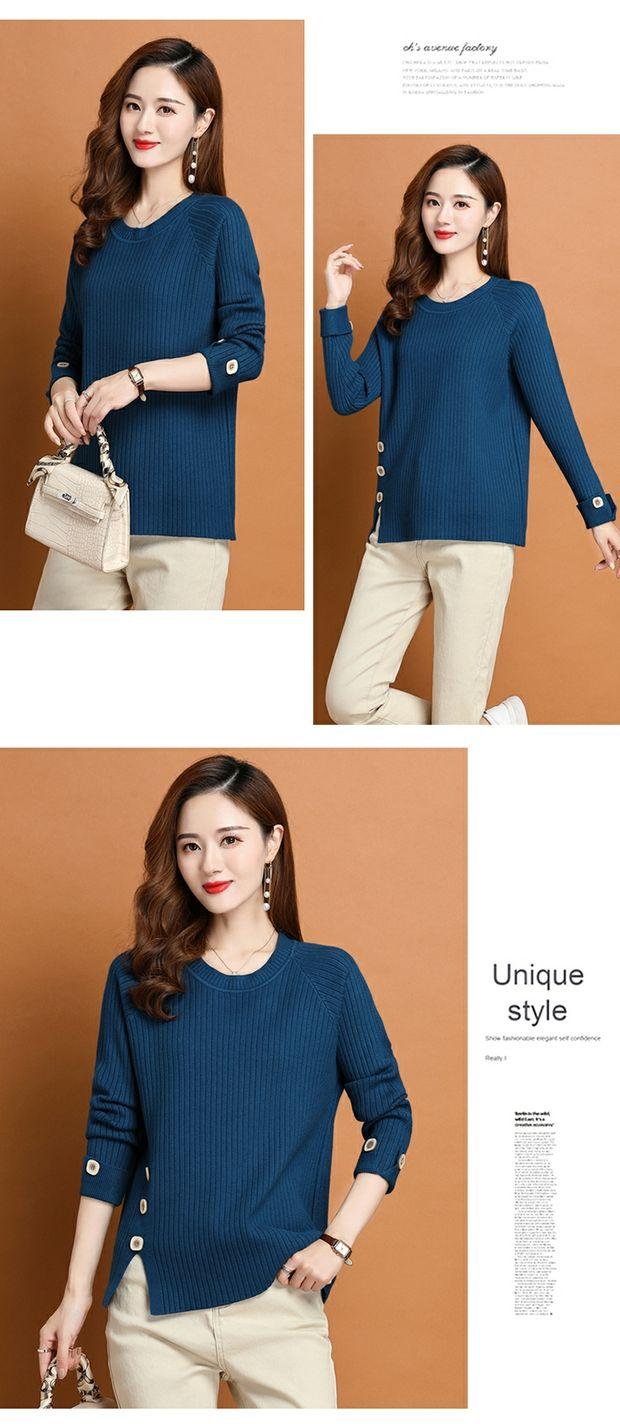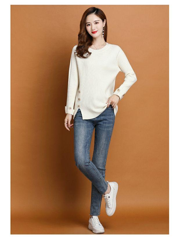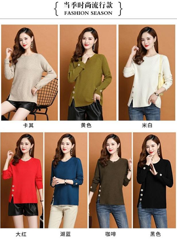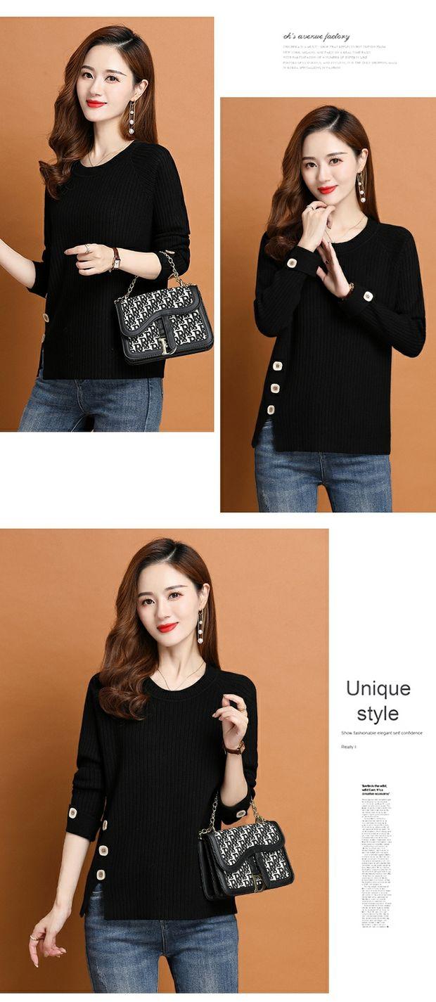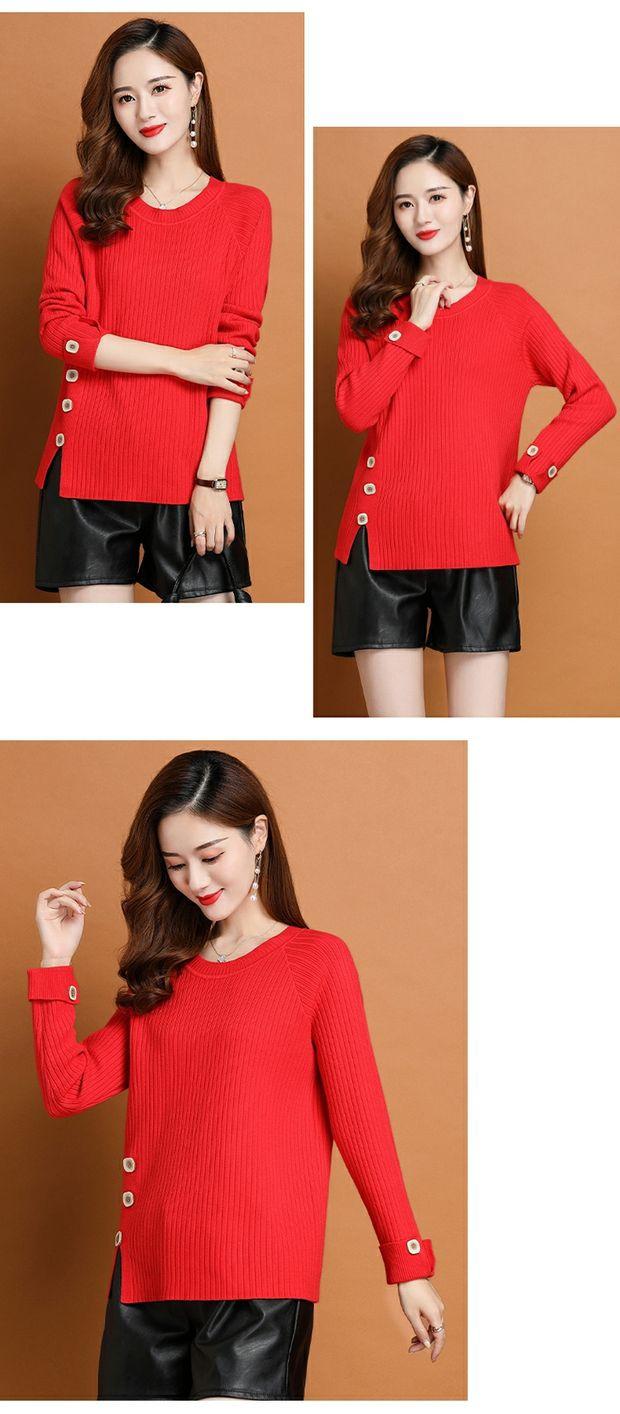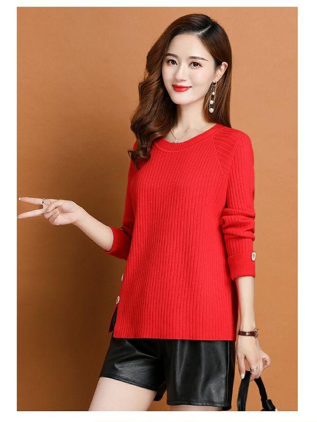 Suéter de cuello redondo para mujer, estilo coreano, otoño e invierno 2023, camiseta interior corta con abertura, suéter adelgazante suelto.