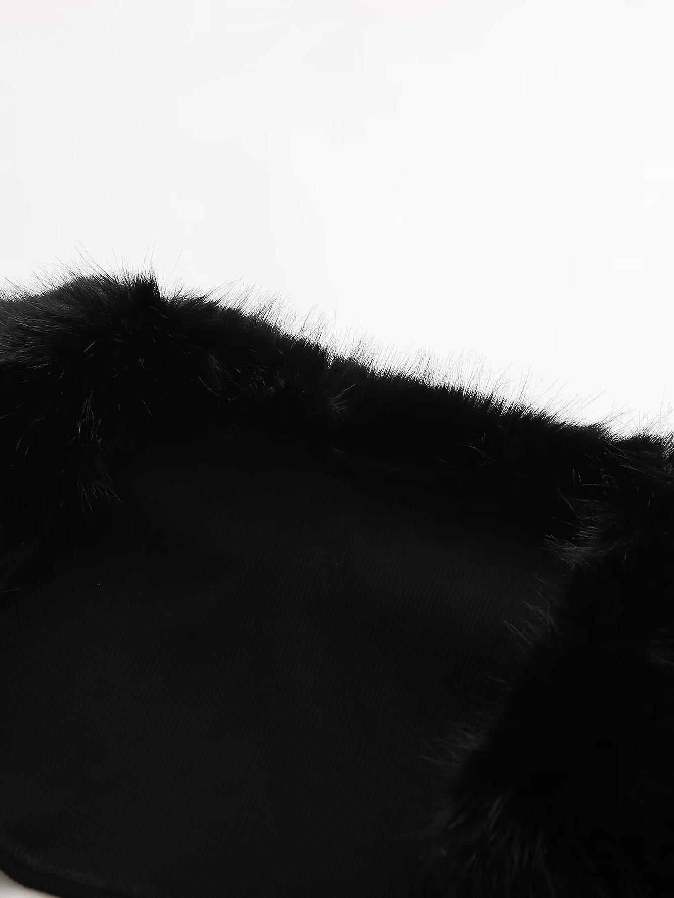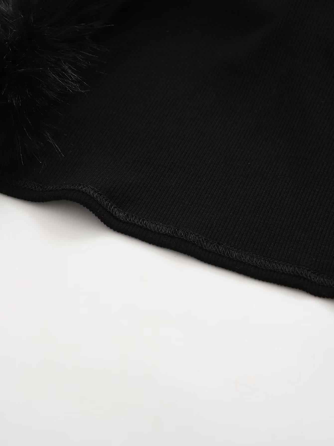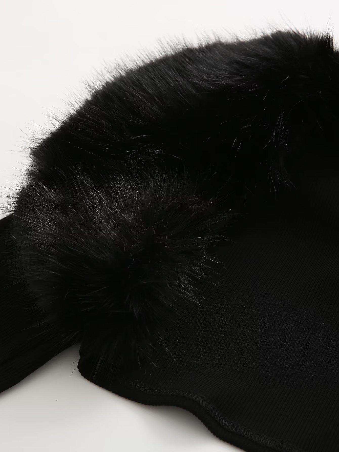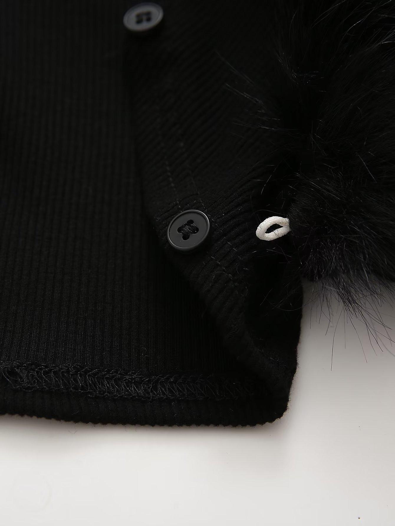 Otoño e invierno nuevo estilo europeo y americano para mujer, top corto de dos piezas con cuello de piel sintética entallado W4512