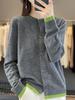 Cárdigan de Punto de Cuello Redondo con Parche de Bloques de Color de Moda, Moda Europea, Suéter Holgado Versátil de Manga Larga para Mujer