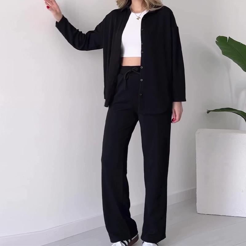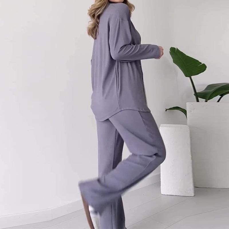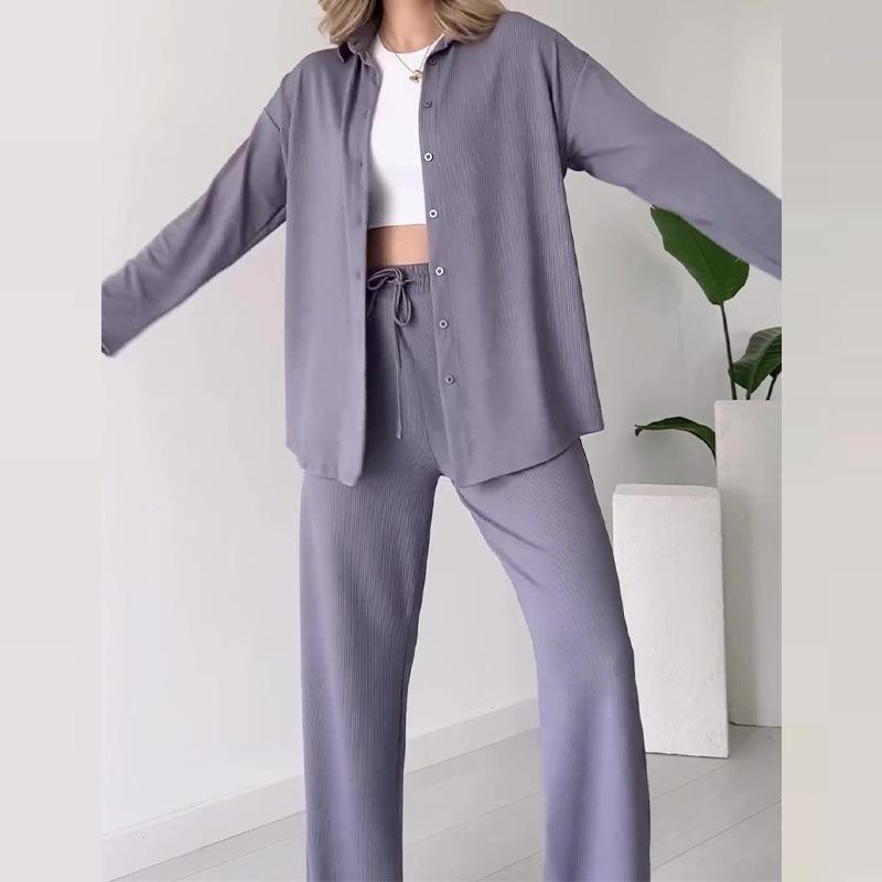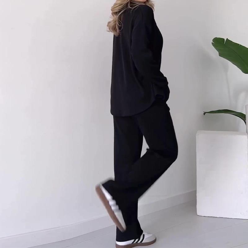 Otoño 2024 nueva moda transfronteriza de Amazon europea y americana, color sólido, estilo casual, pantalones holgados con cordón, traje de moda para mujer