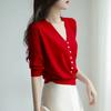 Suéter de seda helada de manga corta para mujer, novedad de verano 2023, diseño con hebilla de perla, top holgado y delgado con nicho