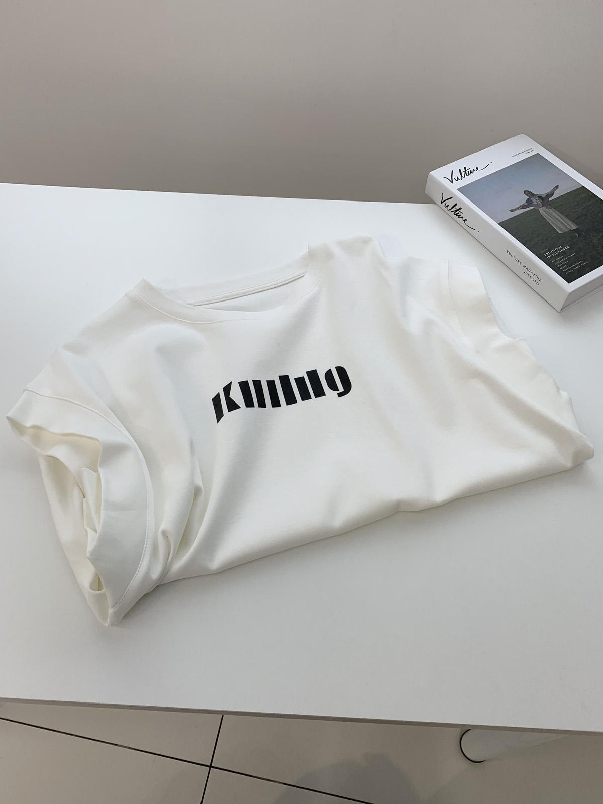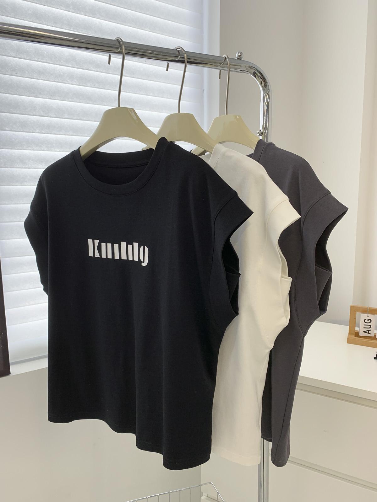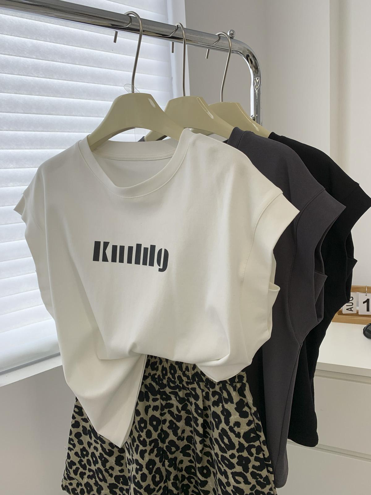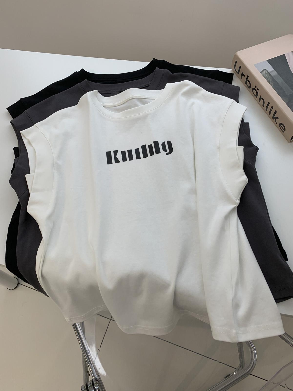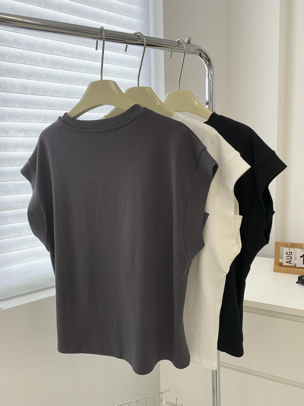 Camiseta de Cuello Redondo sin Mangas de Hombro Ancho para Mujer Verano Cubre-Exposición Slim Versátil Top de Manga Corta