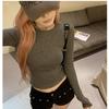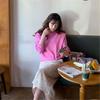 Primavera y Otoño 2025 K-Style Nuevo Manga Larga Holgado Color Puro Ins Sencillo Top Cuello Redondo Jersey Sudadera Ajustada para Mujer Trendy