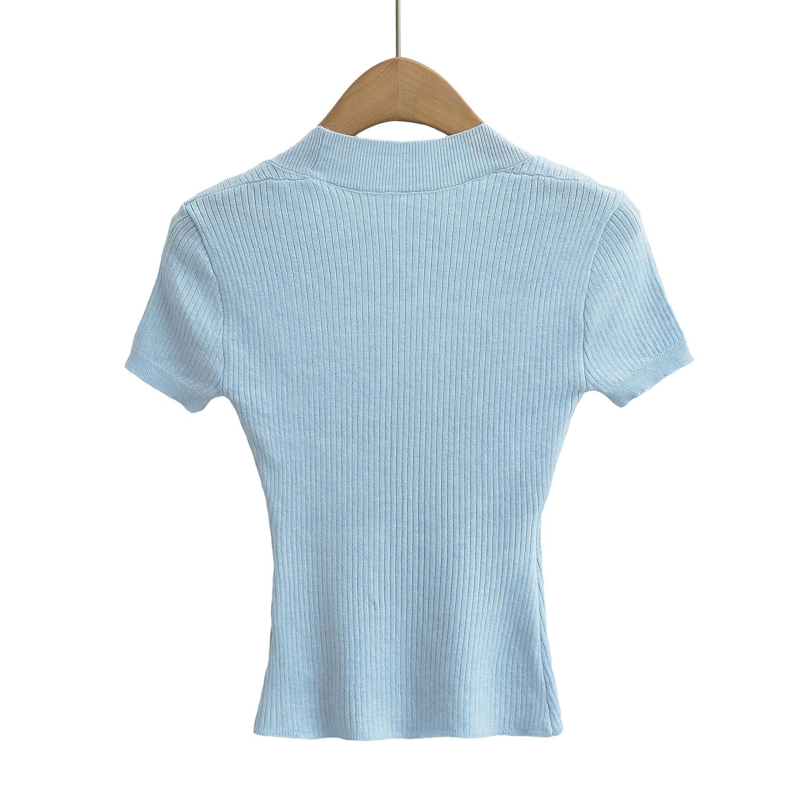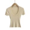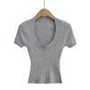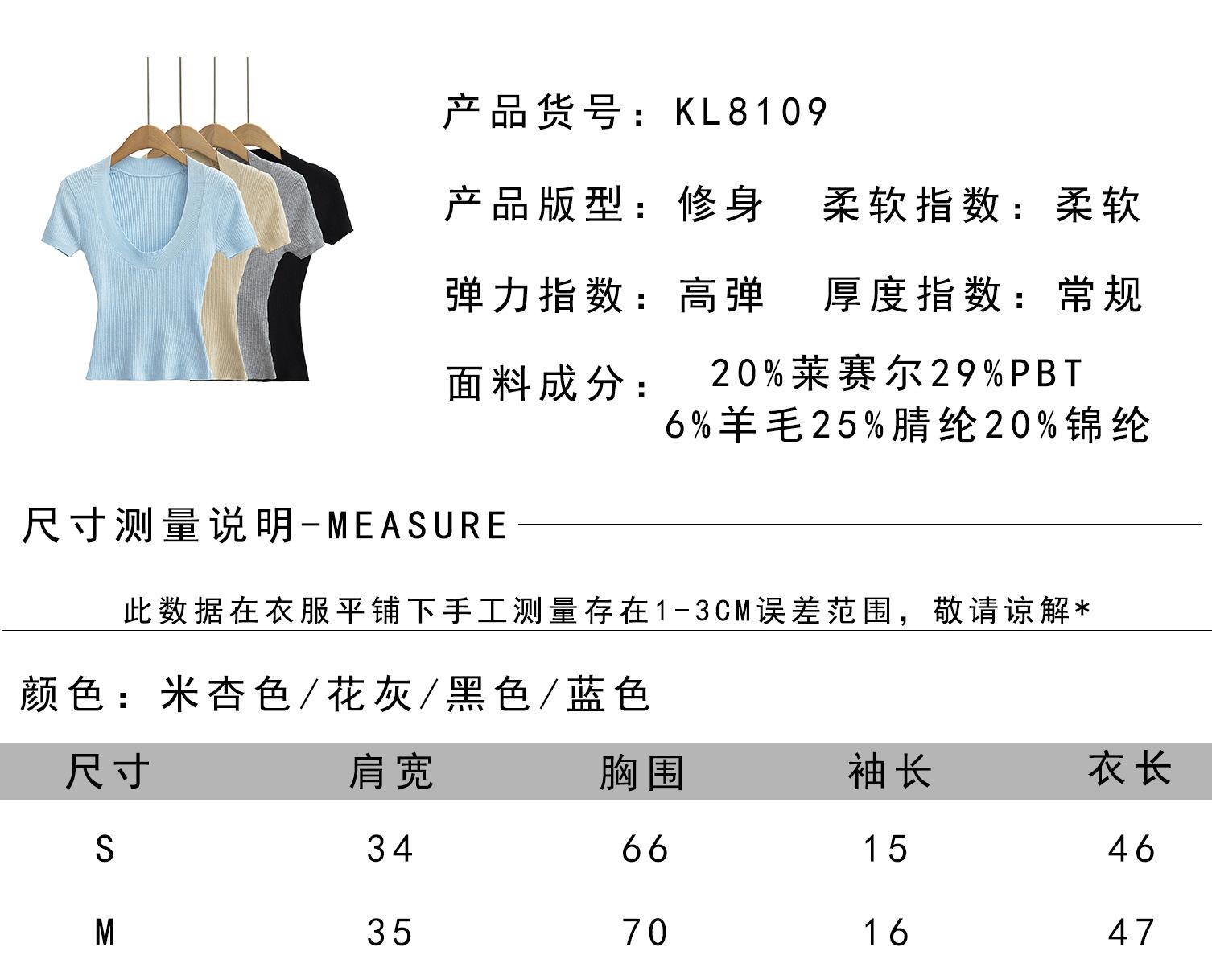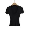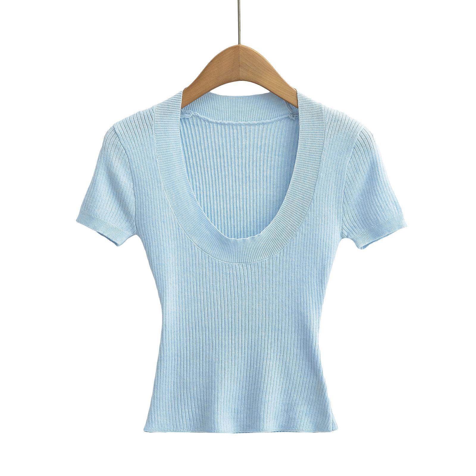 Suéter ajustado de manga corta con cuello redondo bajo y sexy para chica sexy estilo europeo y americano 8109-24