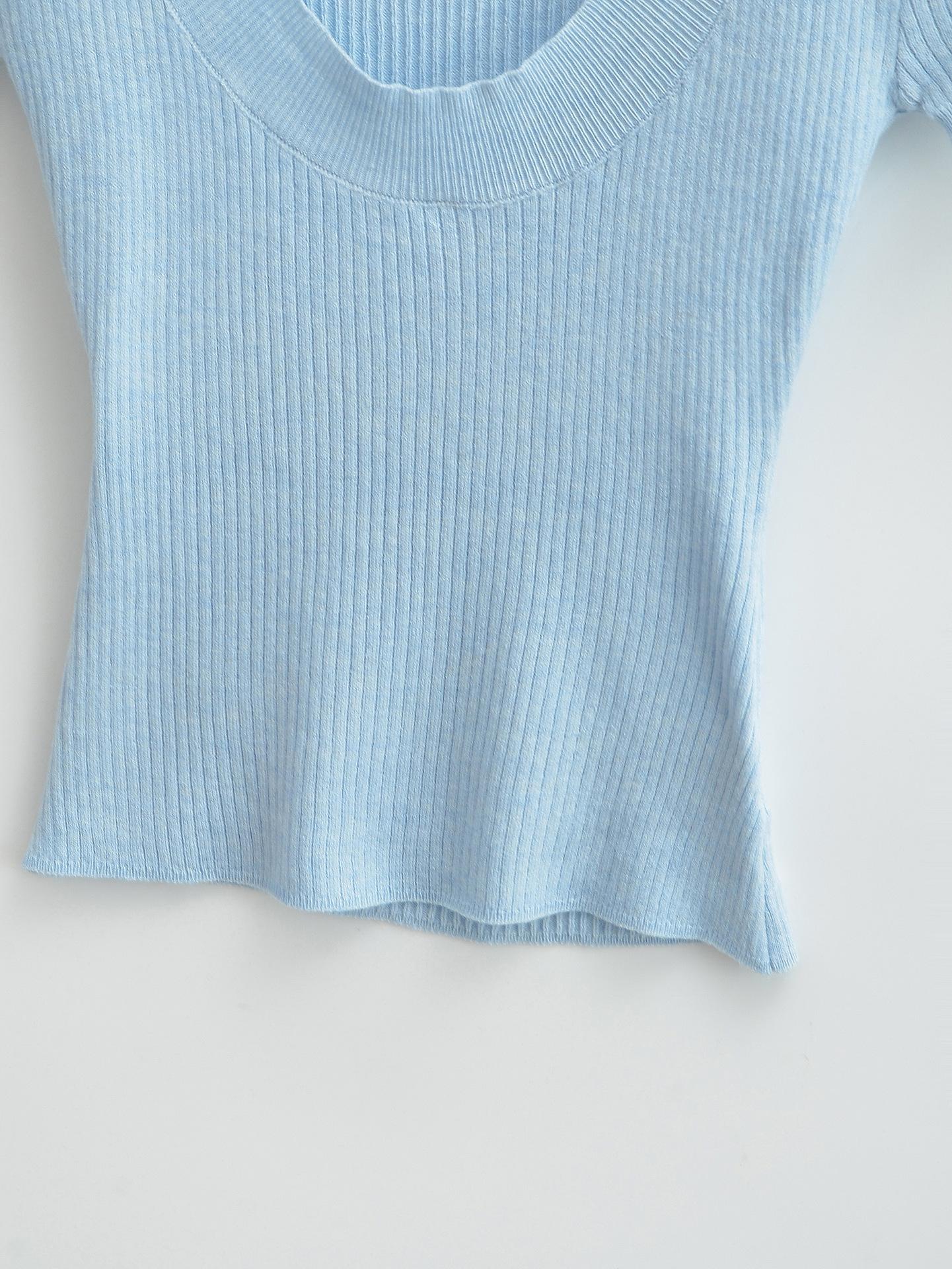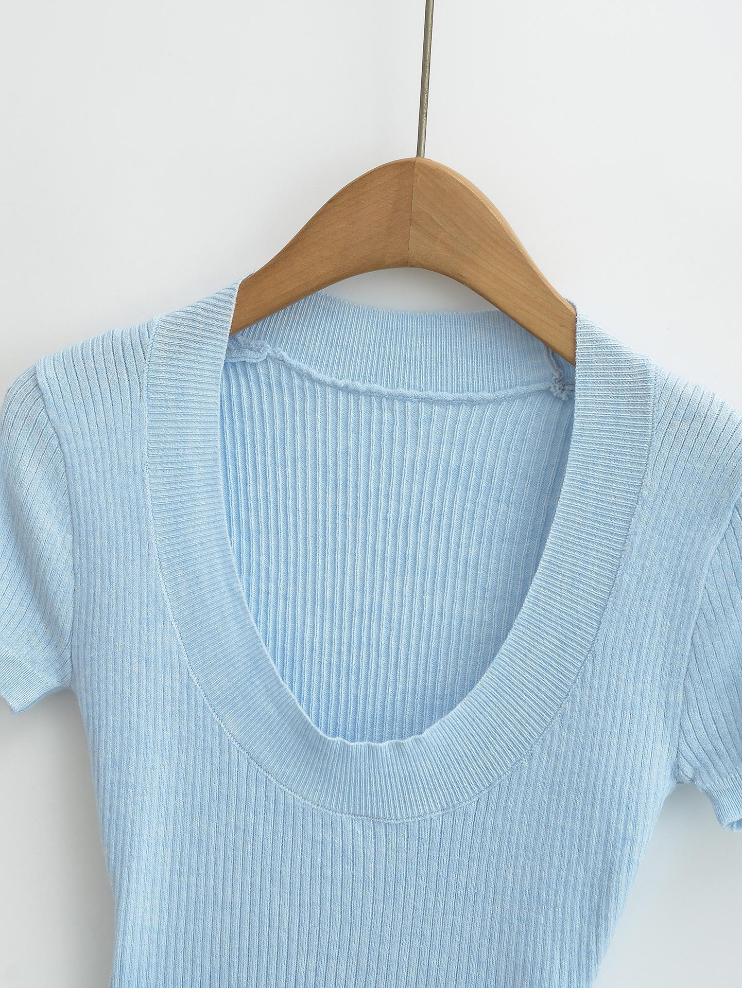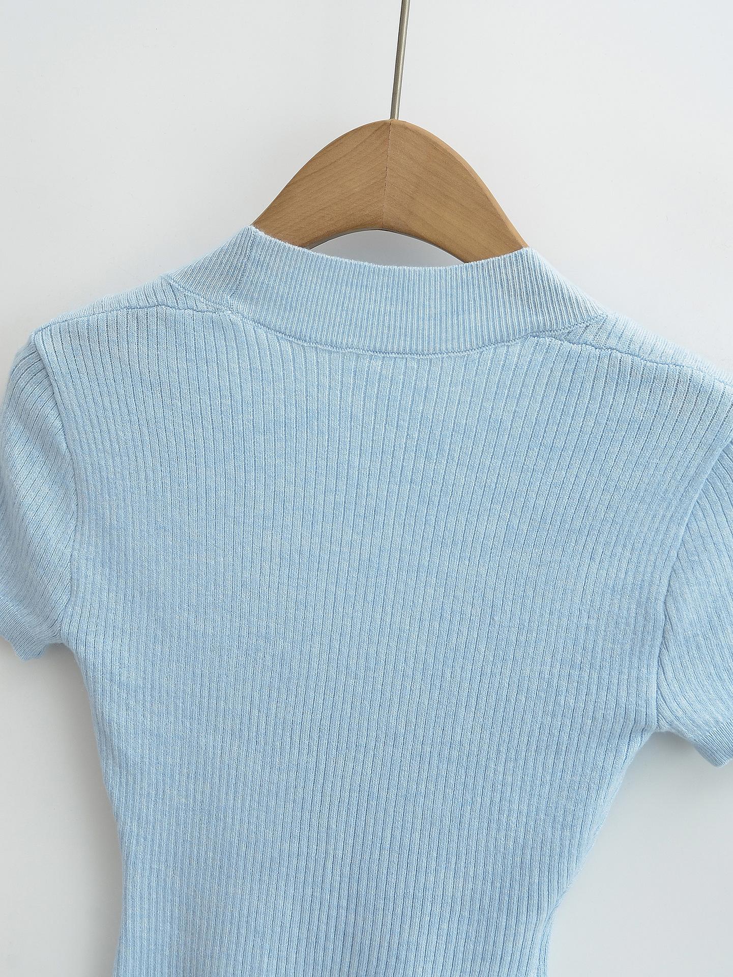 Suéter ajustado de manga corta con cuello redondo bajo y sexy para chica sexy estilo europeo y americano 8109-24