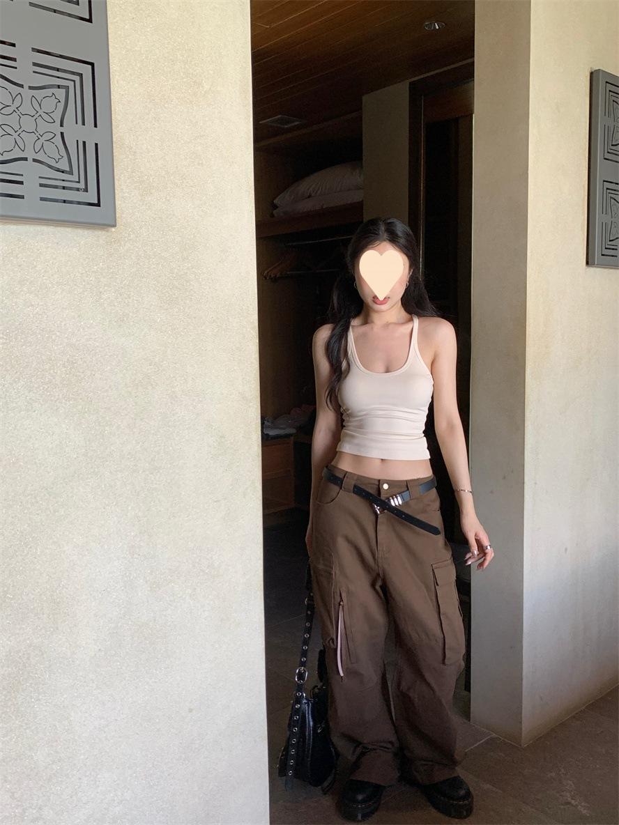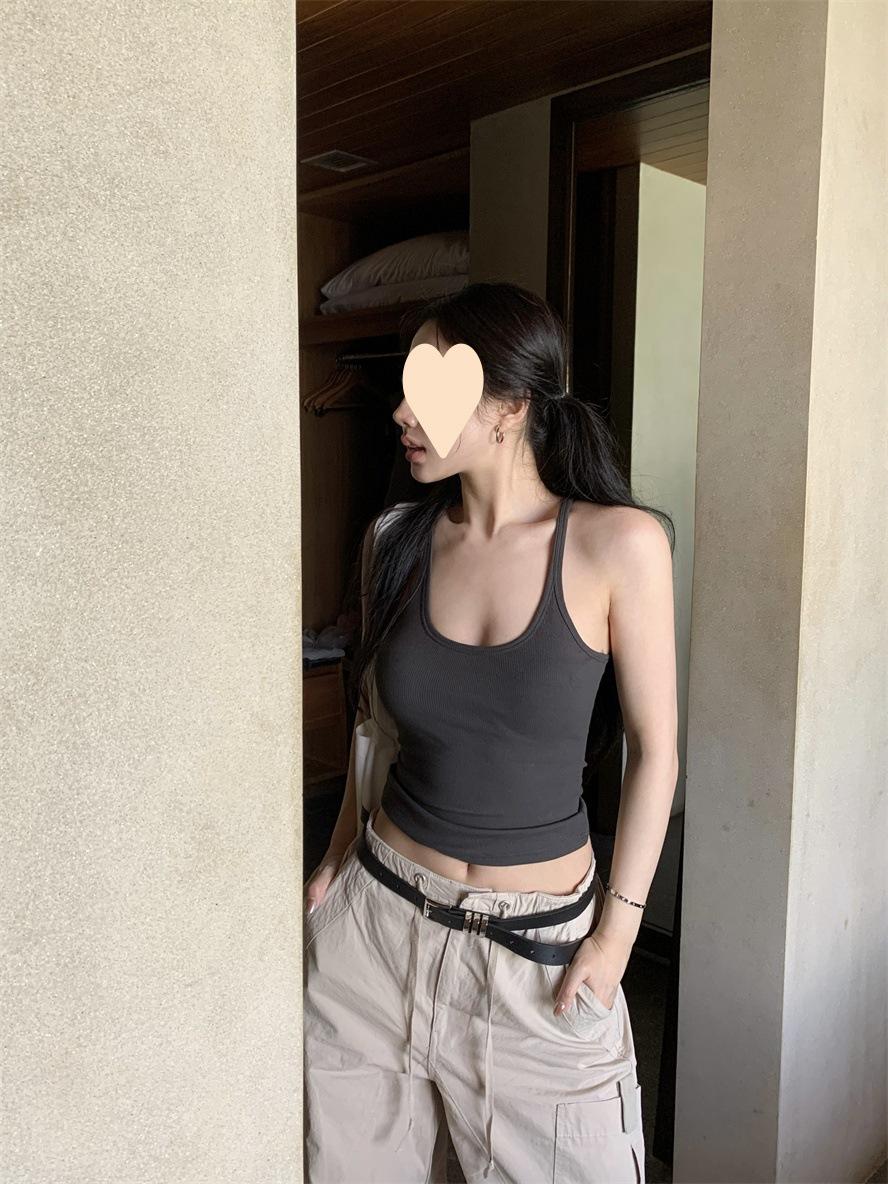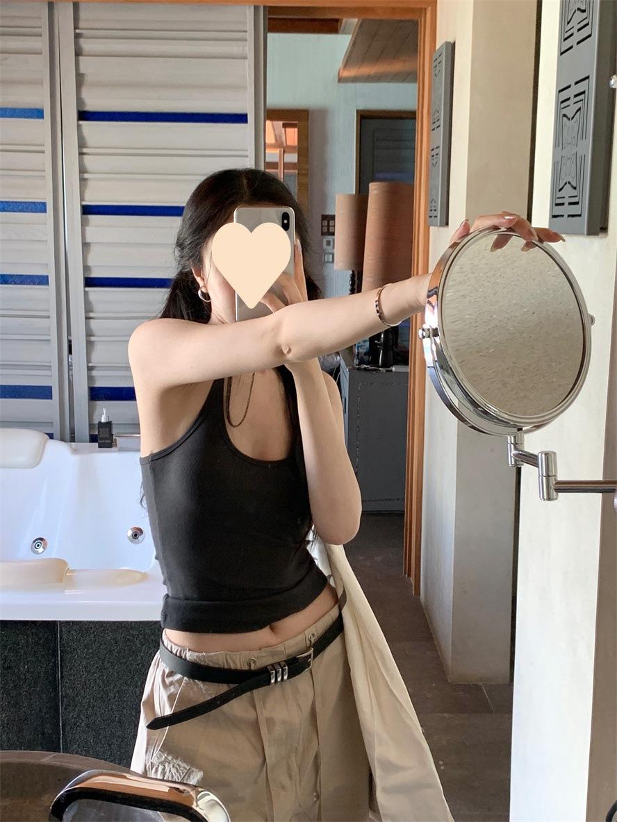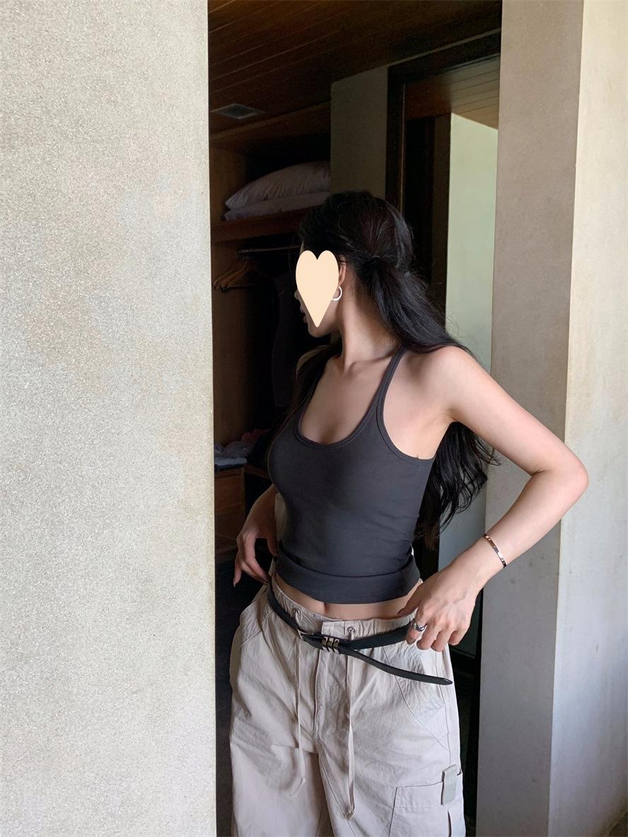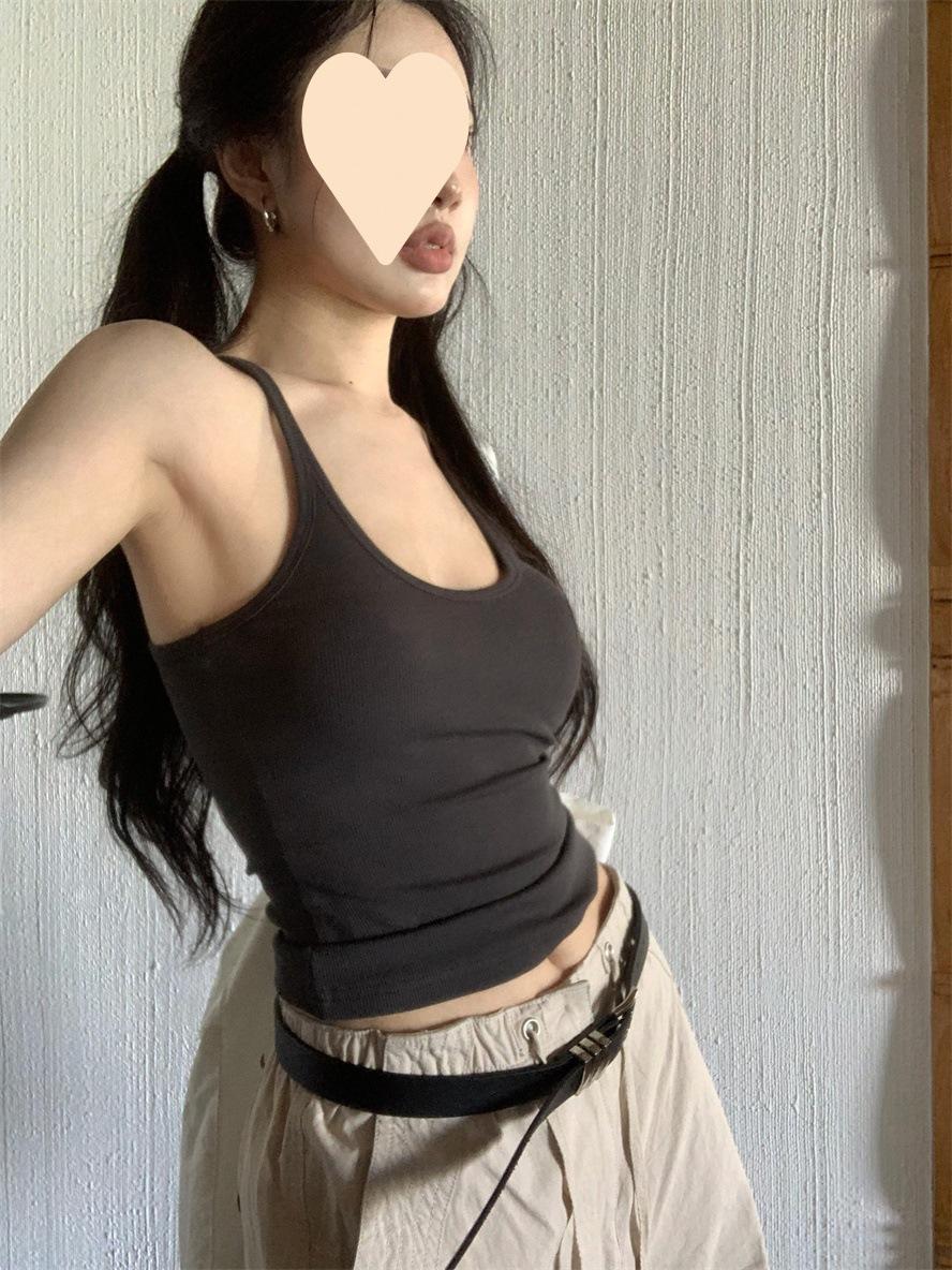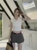 Chaleco corto ajustado con tirantes finos, interior y exterior roscados, estilo Spice Girls, para mujer, verano 2023