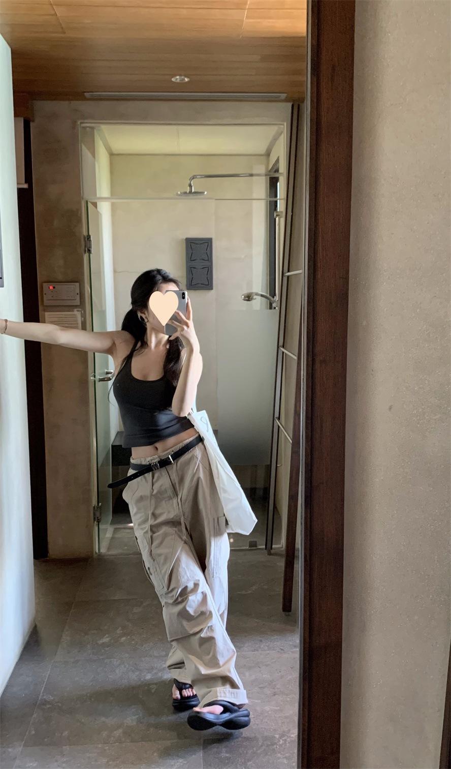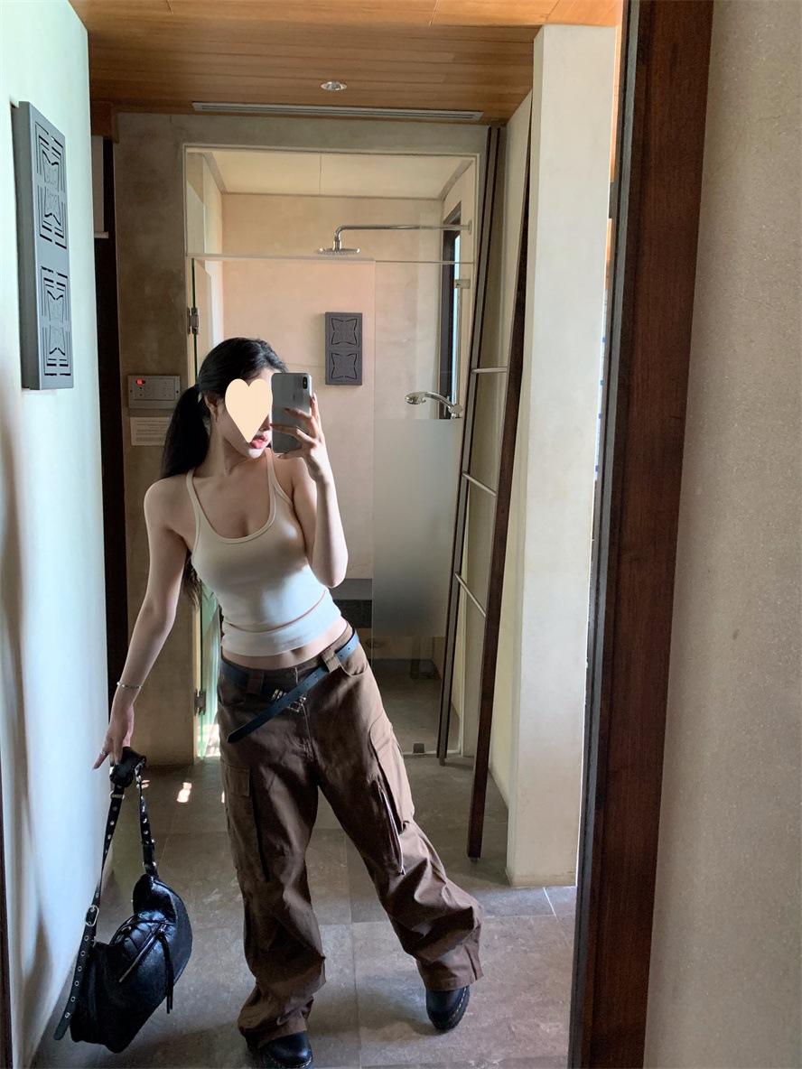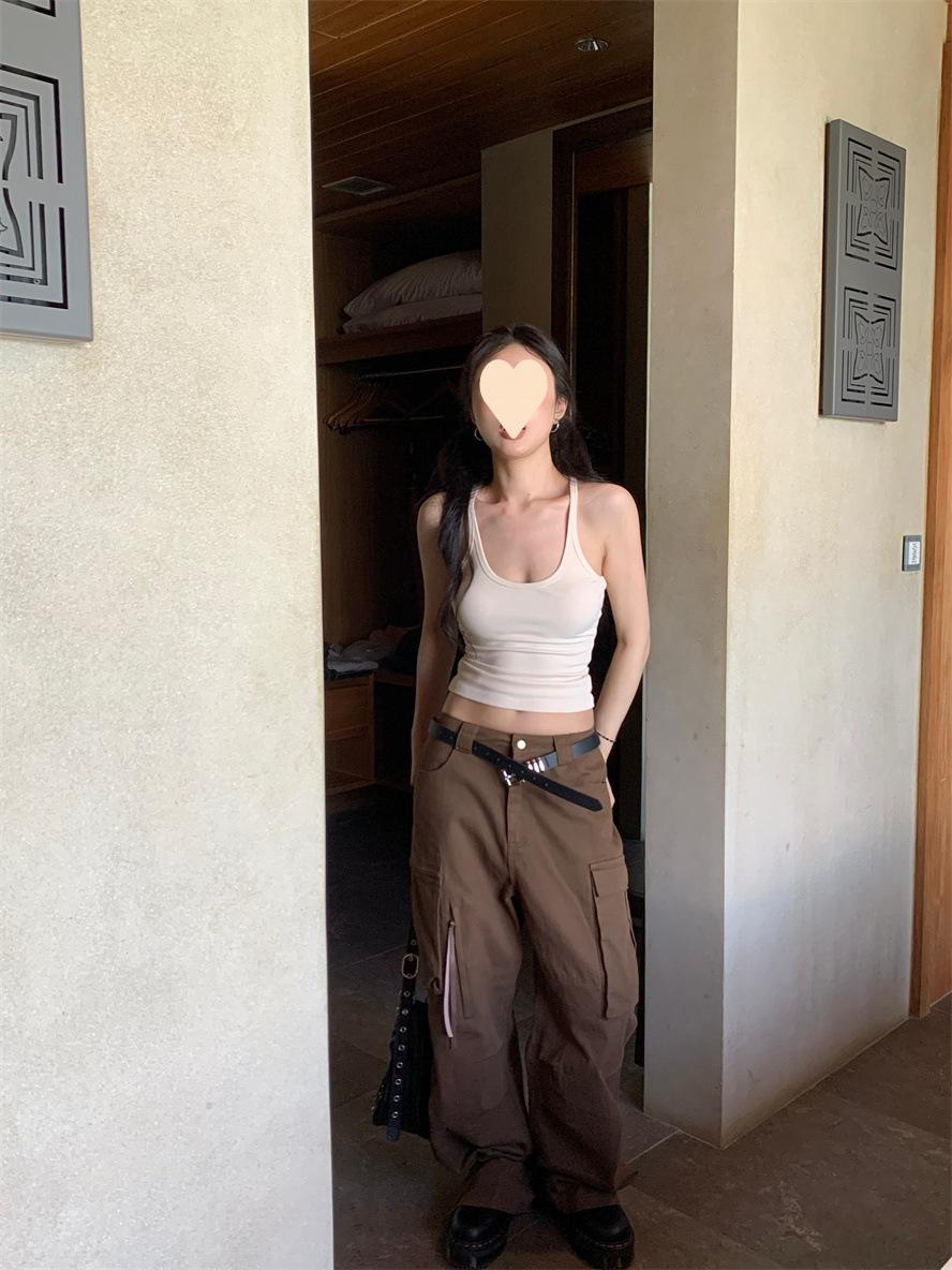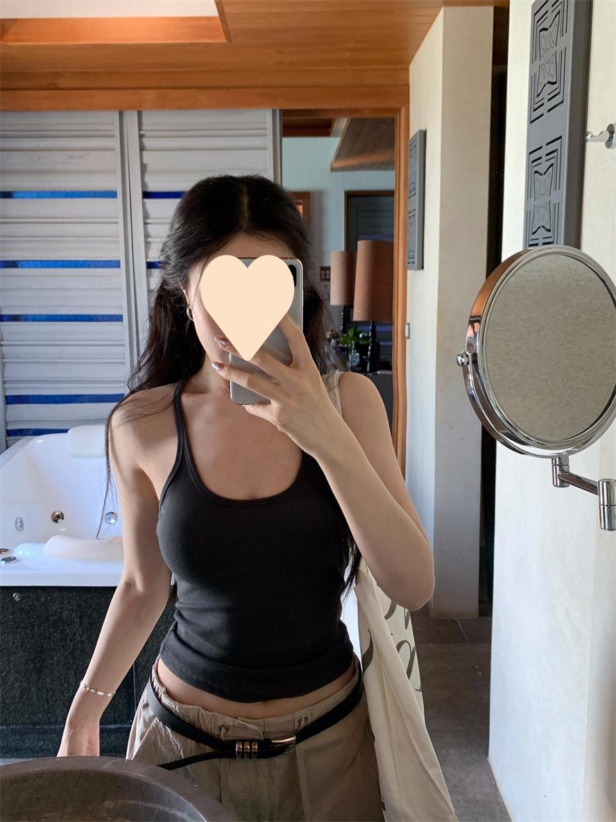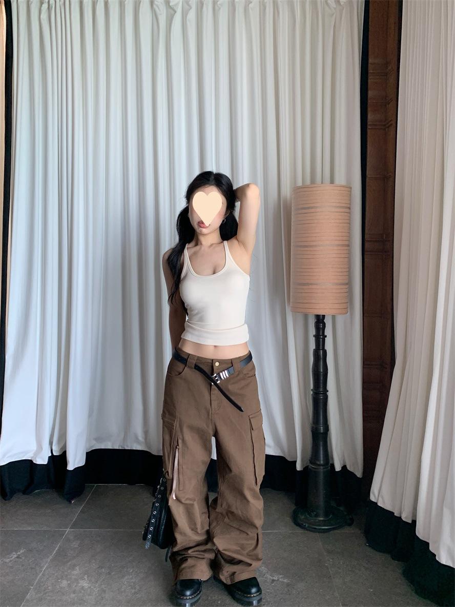 Chaleco corto ajustado con tirantes finos, interior y exterior roscados, estilo Spice Girls, para mujer, verano 2023