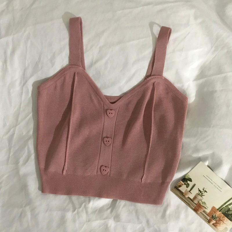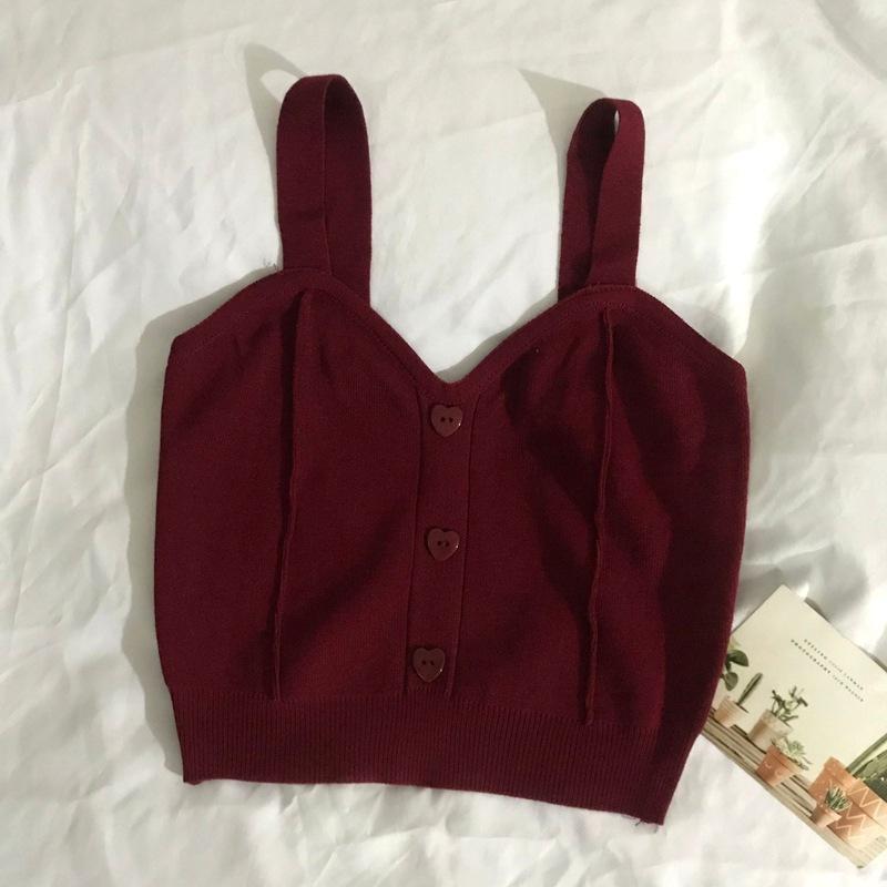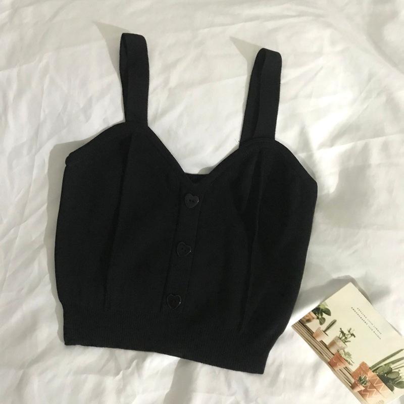 Chaleco de punto con botones de amor de estilo dulce para mujer, prenda exterior adelgazante de corte entallado de verano 2023