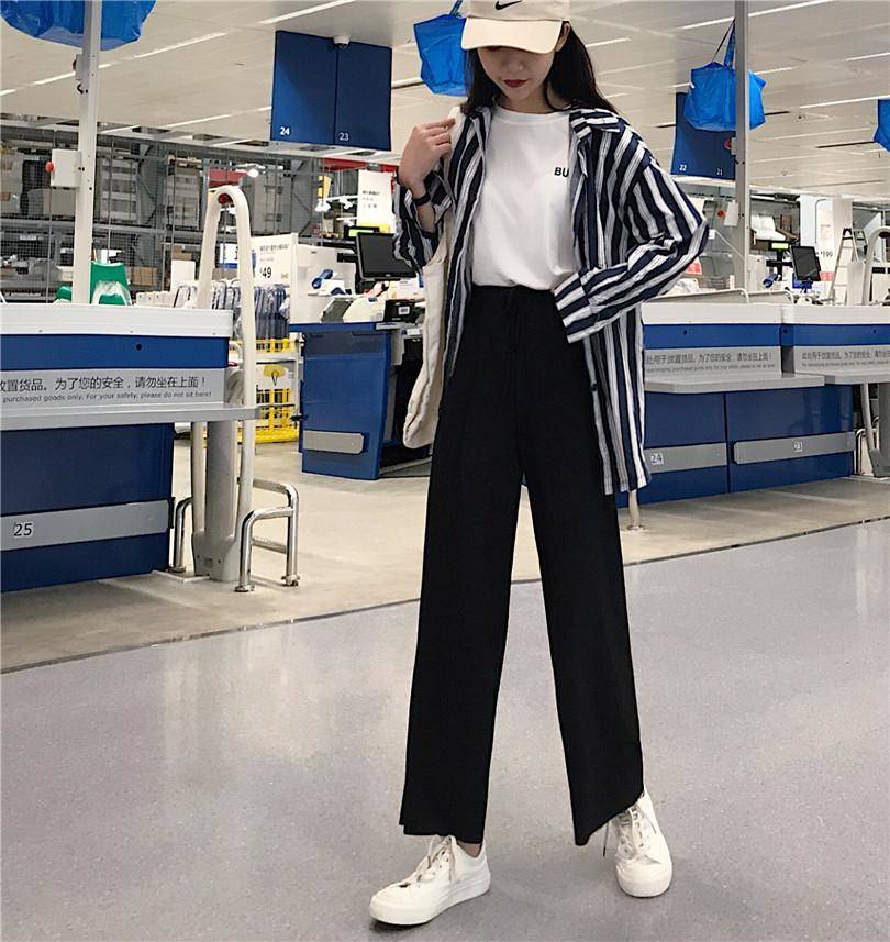 Pantalones anchos de verano para mujer, cintura alta, adelgazantes, estilo coreano, holgados, combinables, informales, deportivos, hasta los tobillos