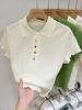 Camiseta de manga corta con cuello polo y hombros a rayas para mujer, nueva camiseta de verano 2024 para chica gordita, corte entallado