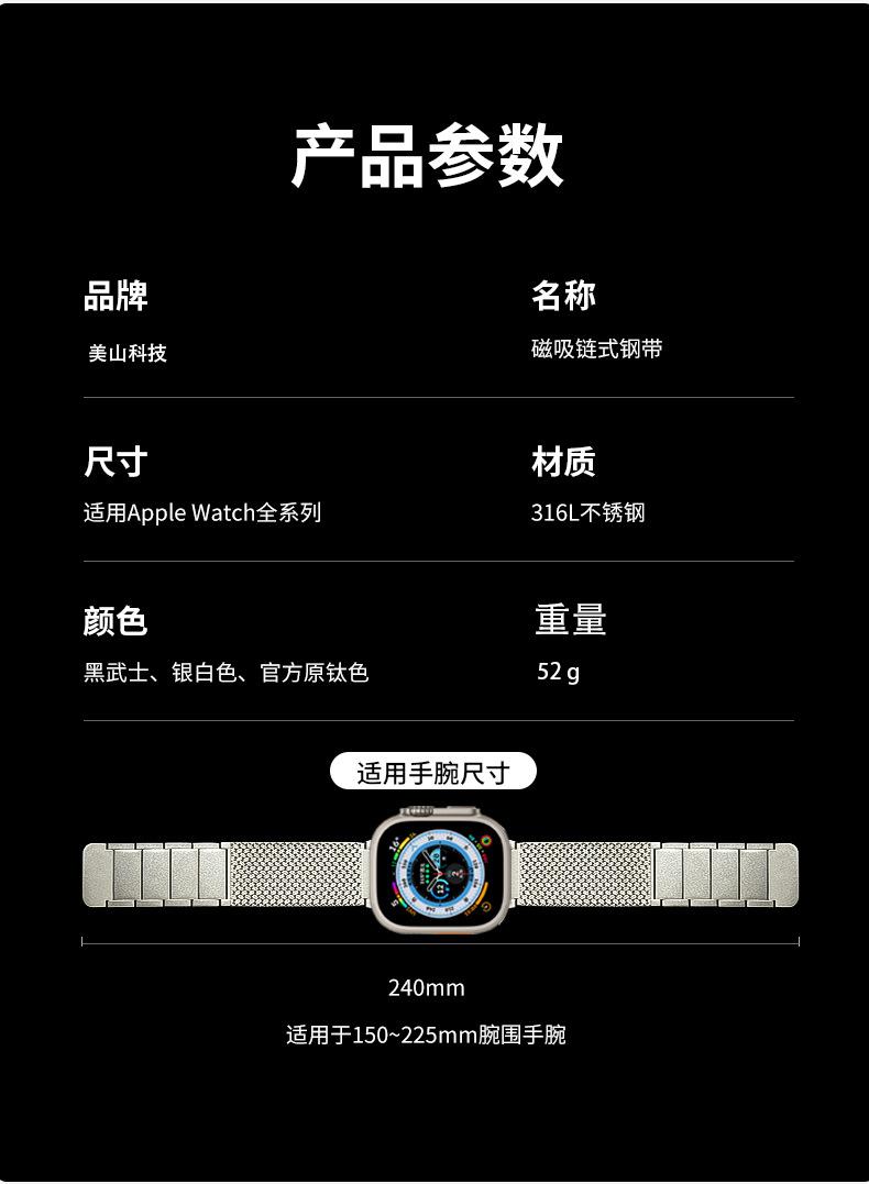 Nombre del producto:Correa de reloj magnética de acero inoxidable de dos secciones