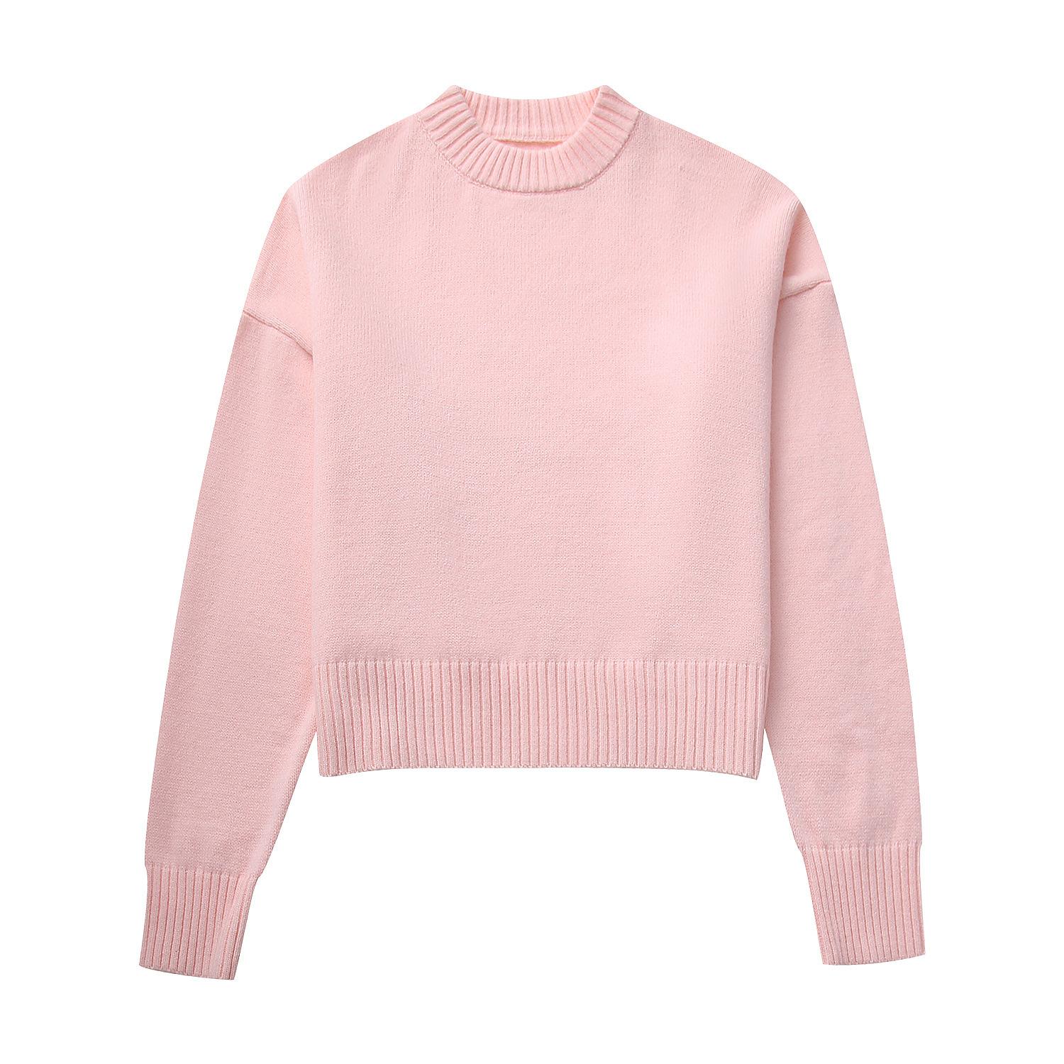 Suéter de cuello redondo dulce de color sólido nuevo de invierno 2023 con suministro de estación independiente transfronteriza de estilo europeo y americano