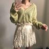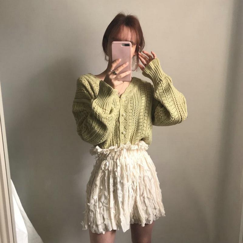 Nuevo Cárdigan de Punto Estilo Coreano Chic Retro Hueco Holgazán de Primavera y Otoño Suéter de Crochet Cárdigan de Punto con Cuello en V para Mujer